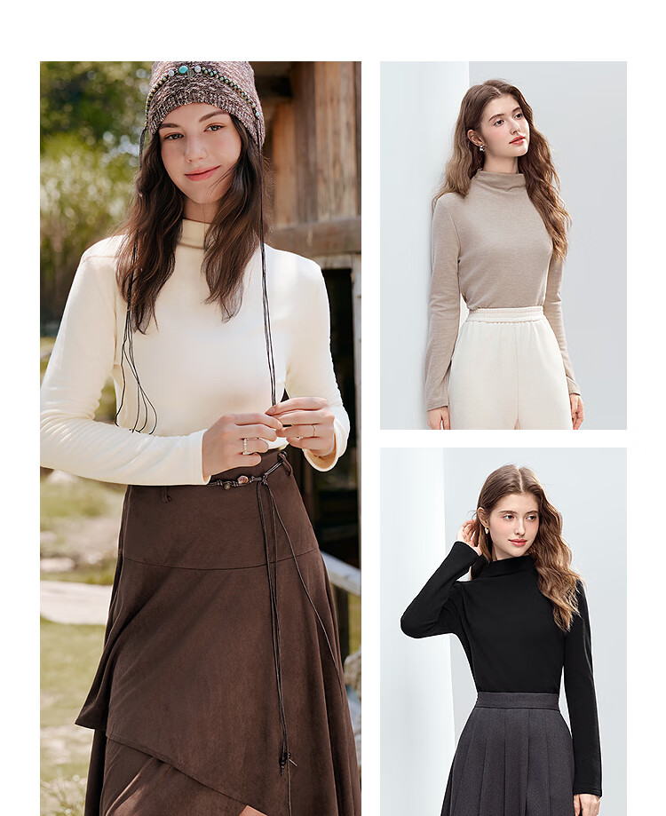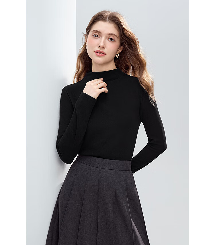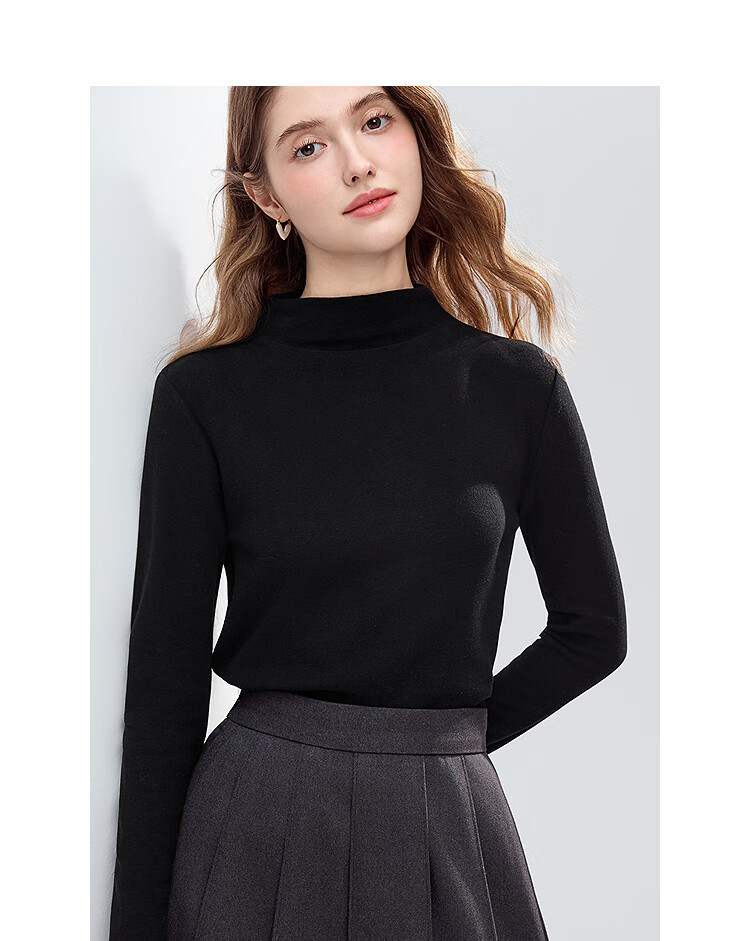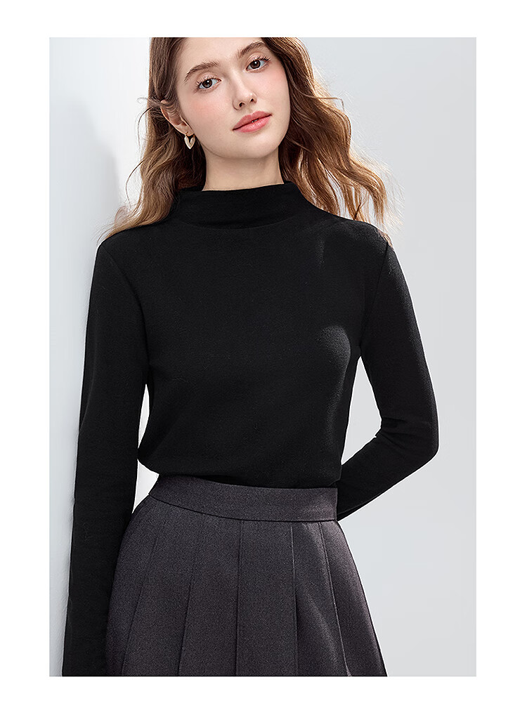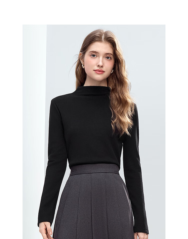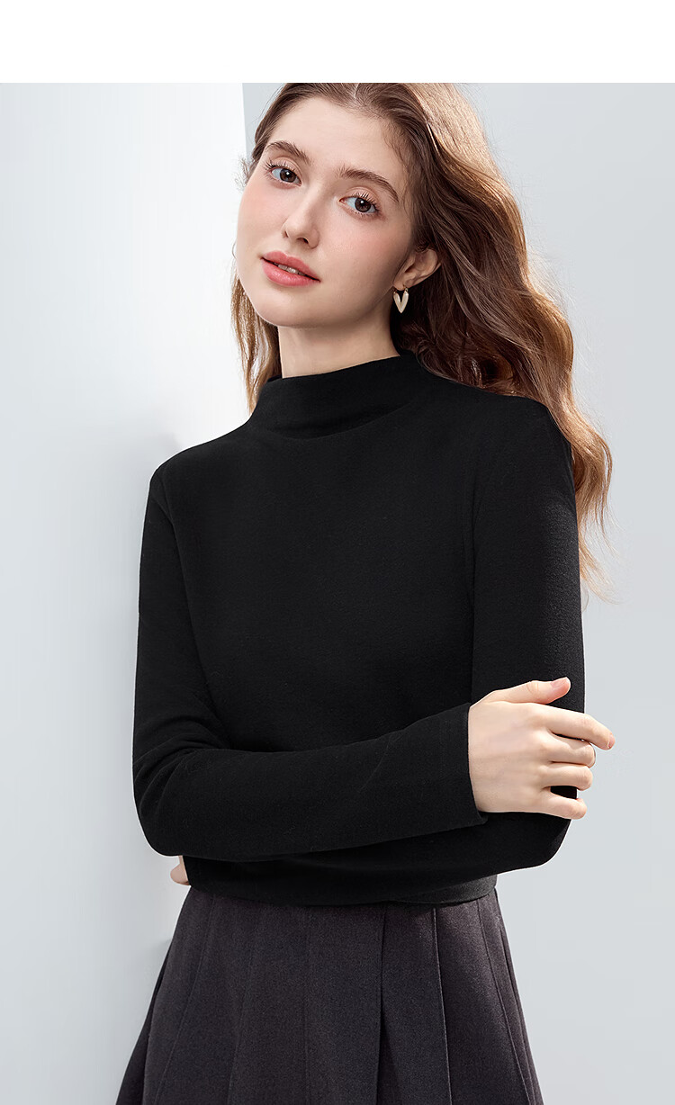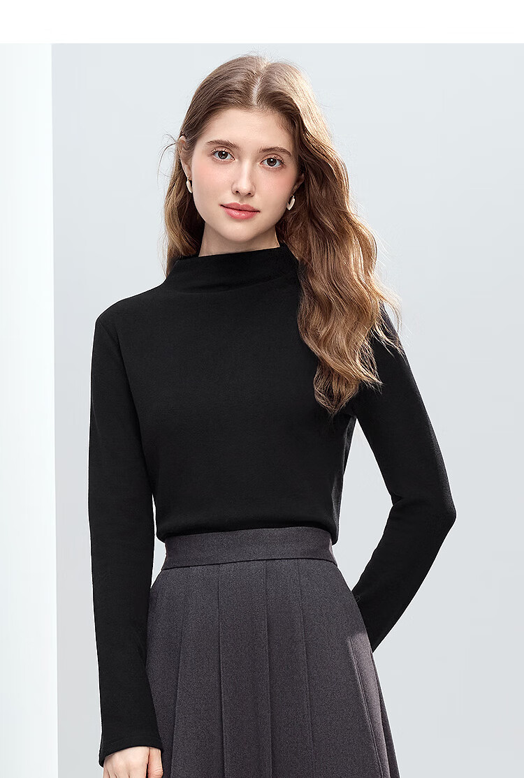Betu women's 2025 winter new T-shirt elastic comfortable long-sleeved tops bottoming shirt simple inner wear for women 2510T96 black L