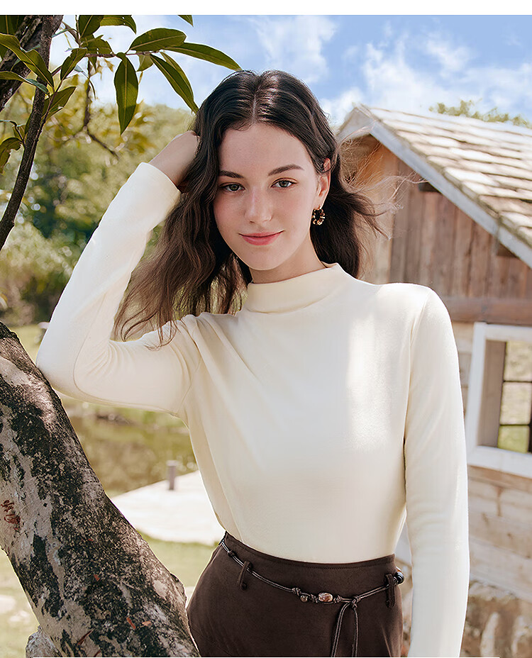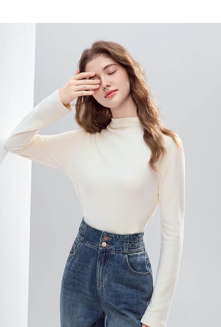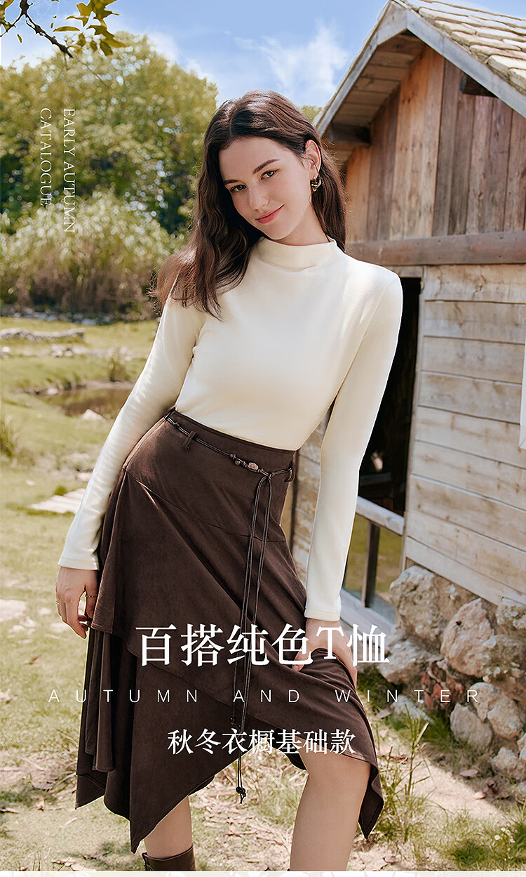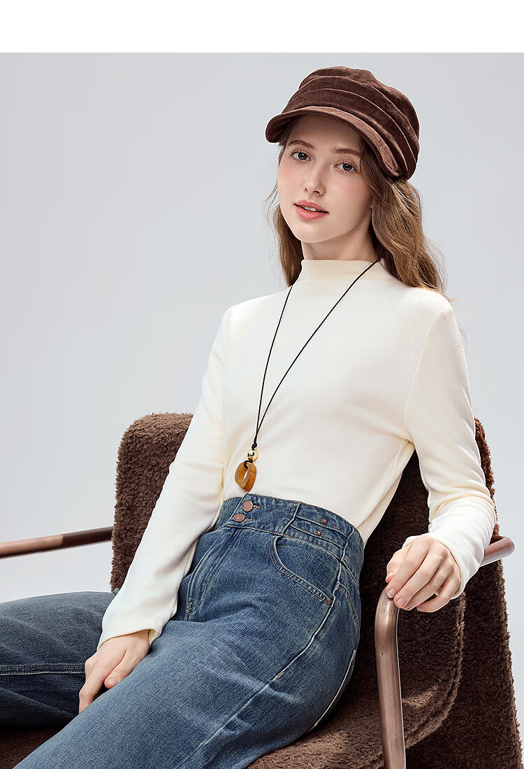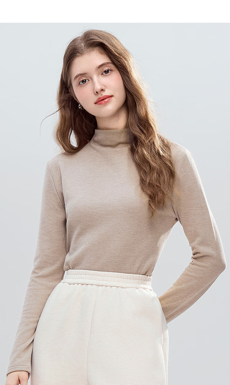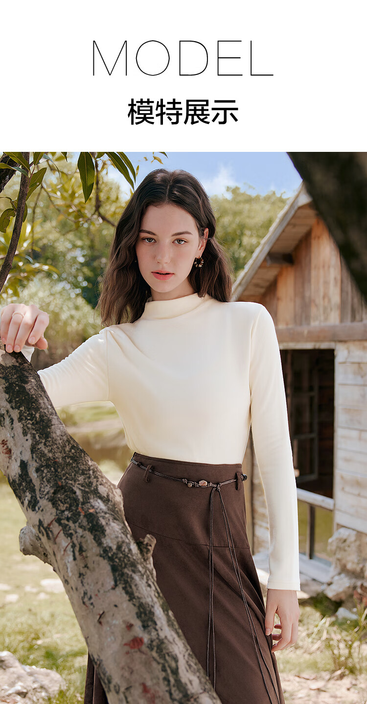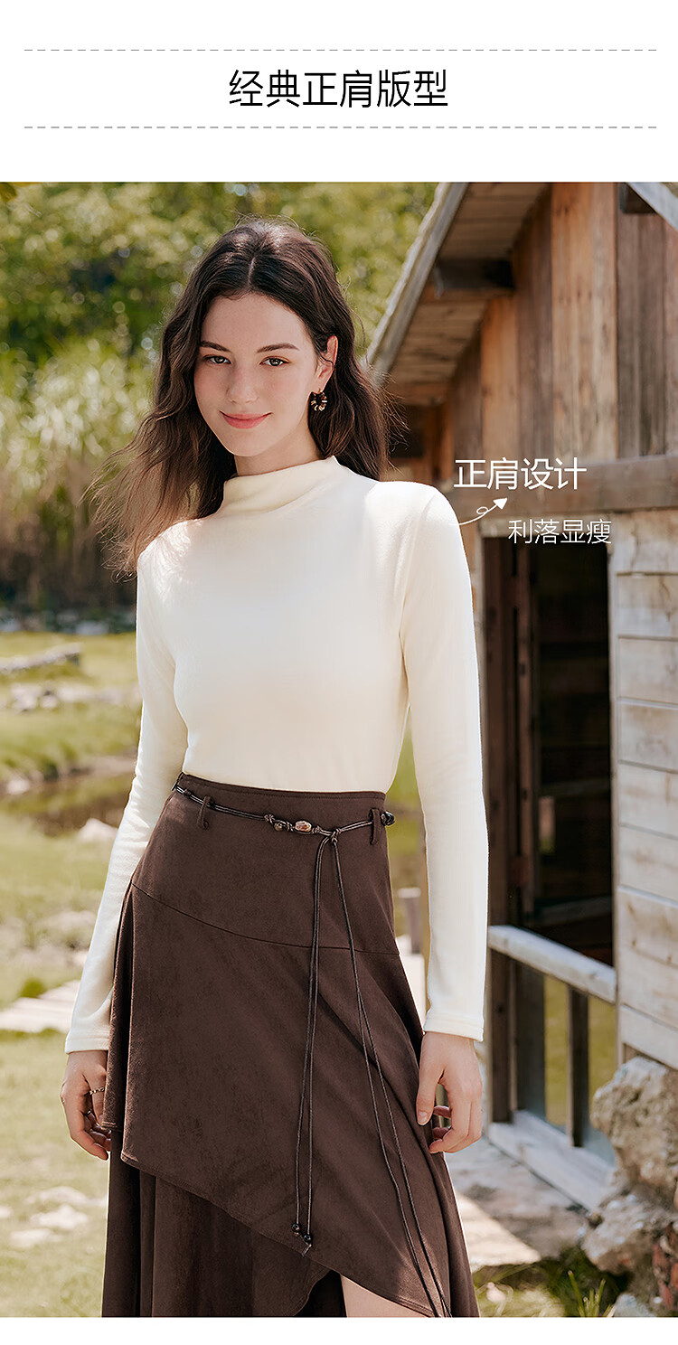 Betu women's 2025 winter new T-shirt elastic comfortable long-sleeved tops bottoming shirt simple inner wear for women 2510T96 black L