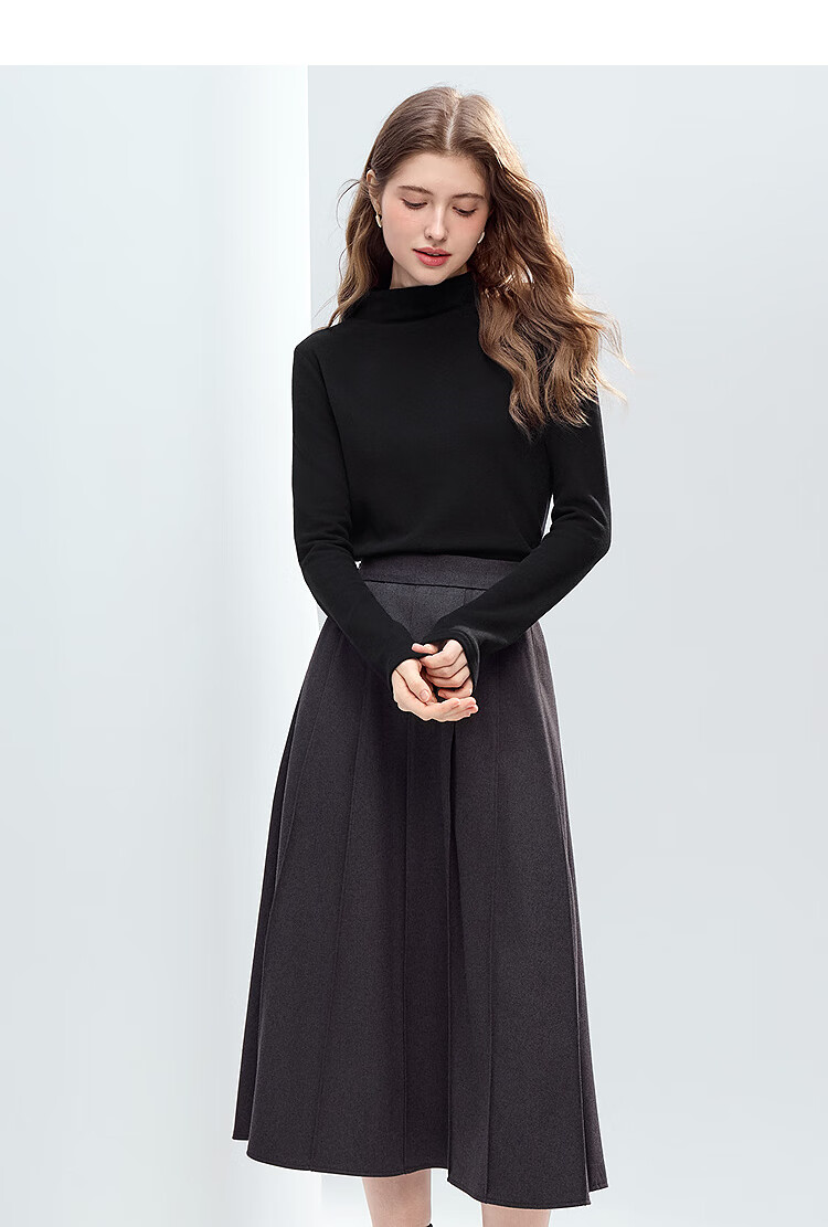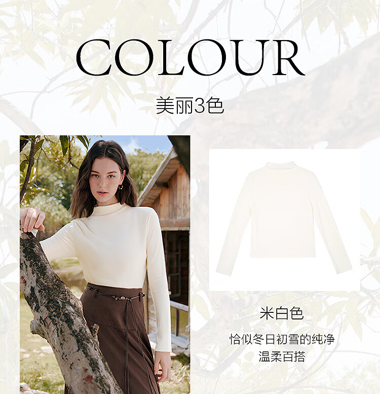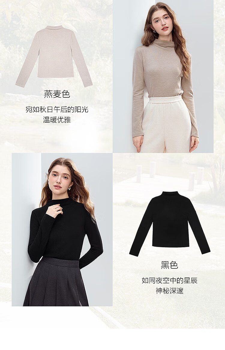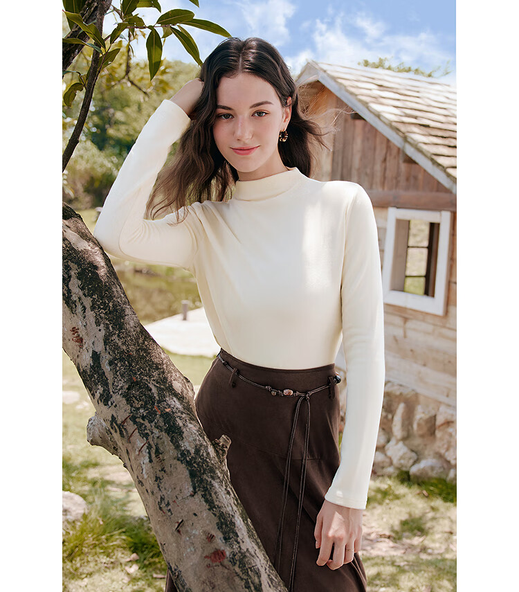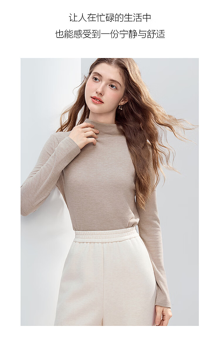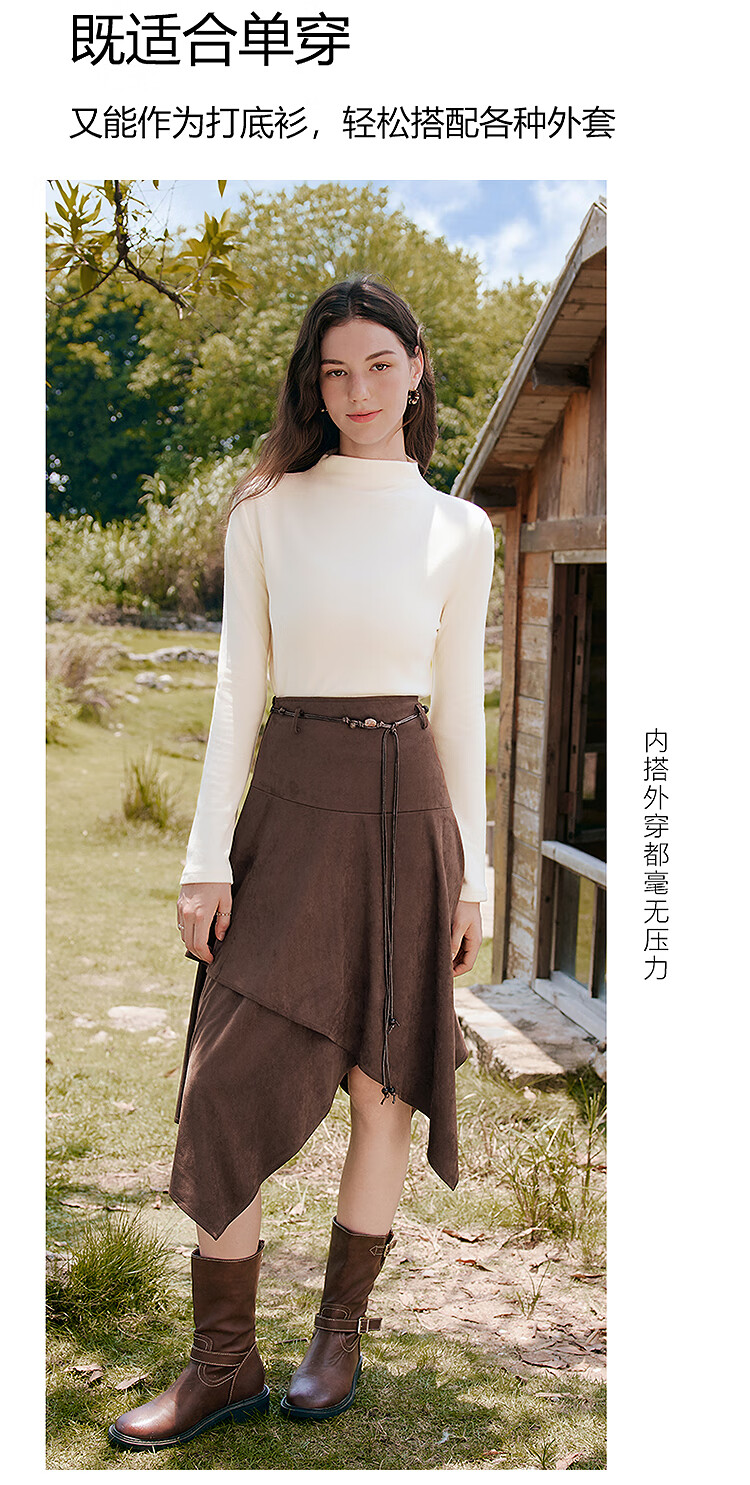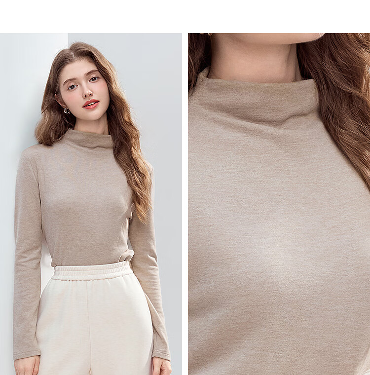 Betu women's 2025 winter new T-shirt elastic comfortable long-sleeved tops bottoming shirt simple inner wear for women 2510T96 black L