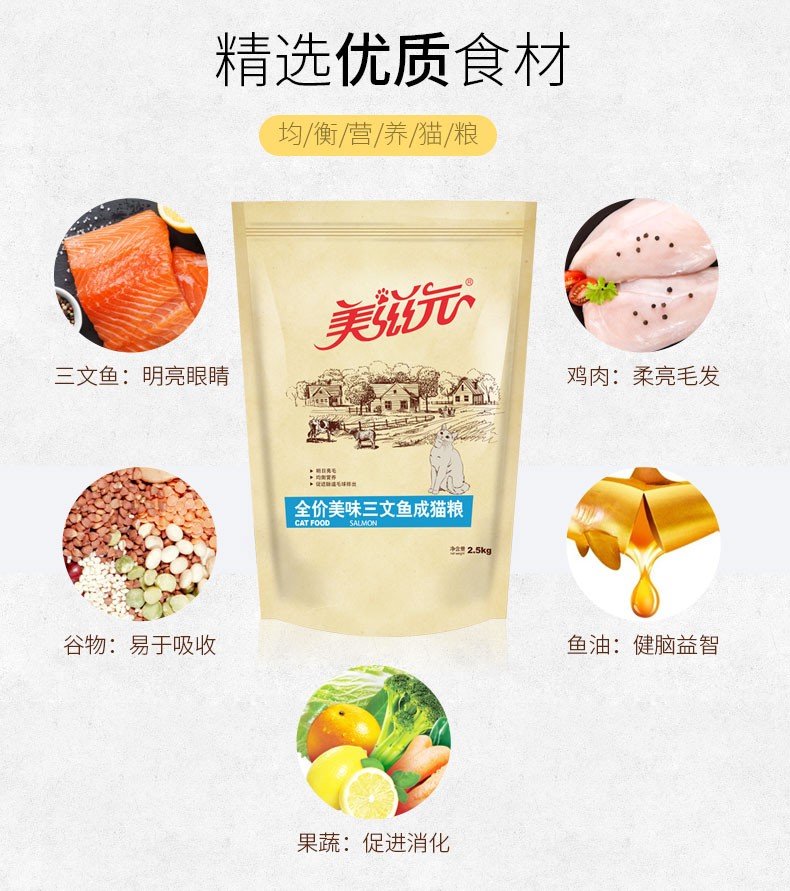 Lingzhu Meiziyuan Minute Maid Cat Food Salmon Flavor Adult Cat 25kg Fattening Hair Gills 5Jin Jin is equal to 0.5kg Kitten British Shorthair Meizi Salmon Adult Cat Food 2 Points 5kg