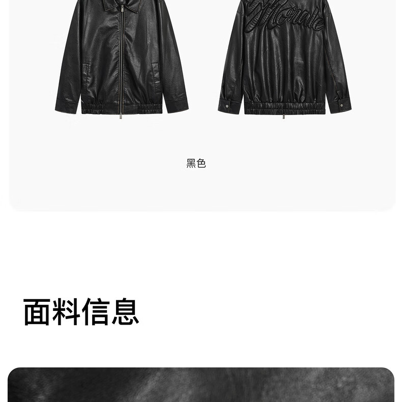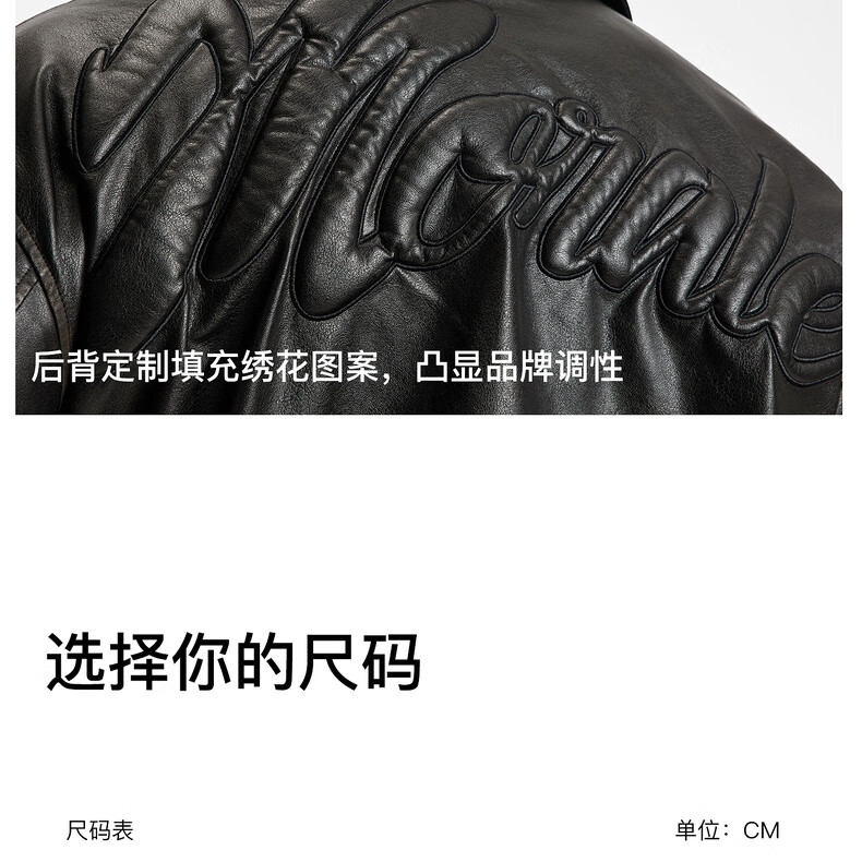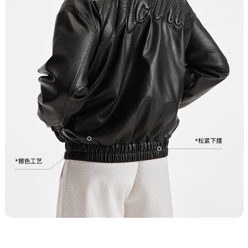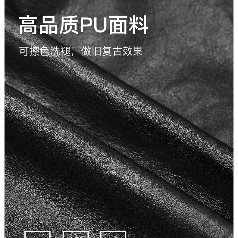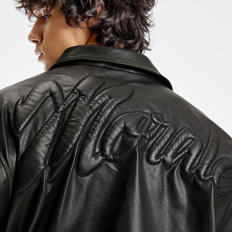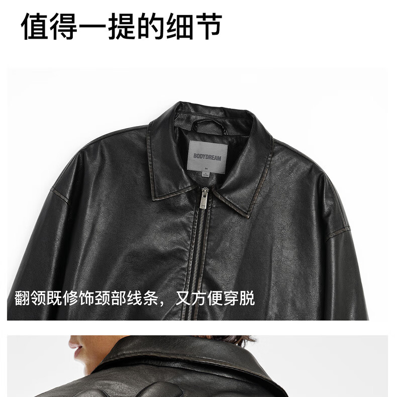 BODYDREAM Back Filled Embroidered Leather Jacket Men's Rubber Colored Distressed PU Leather Jacket Casual Loose Leather Jacket Black S 120Jin Jin equals within 0.5kg
