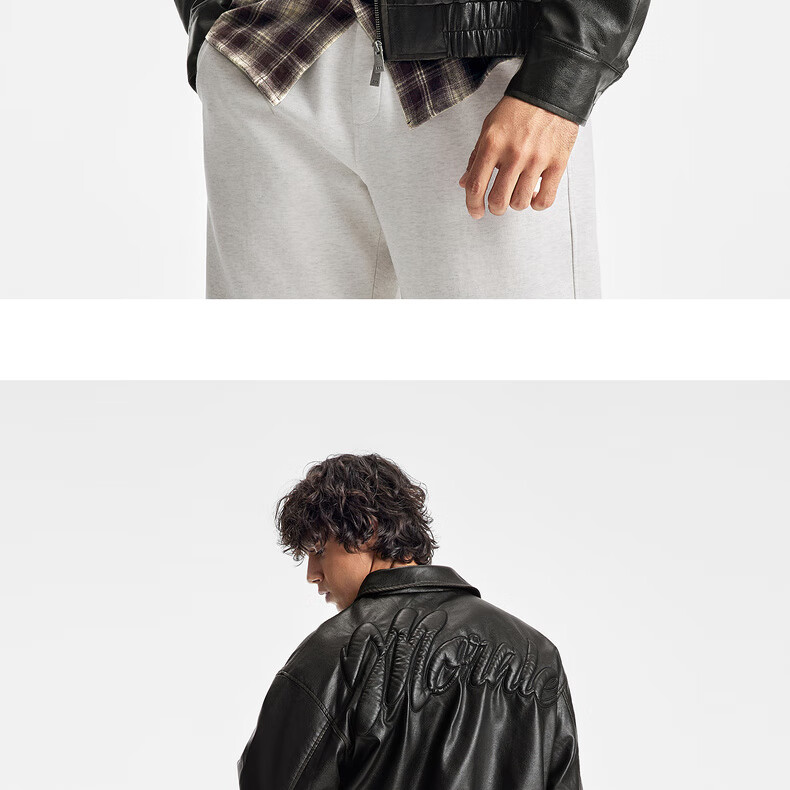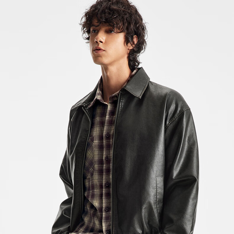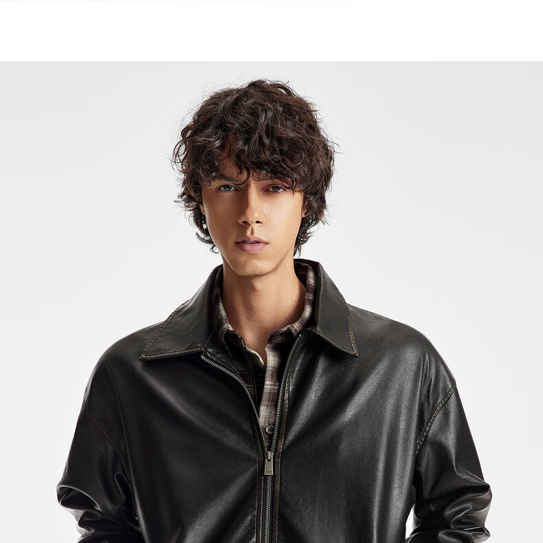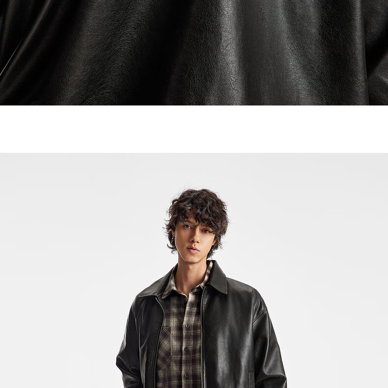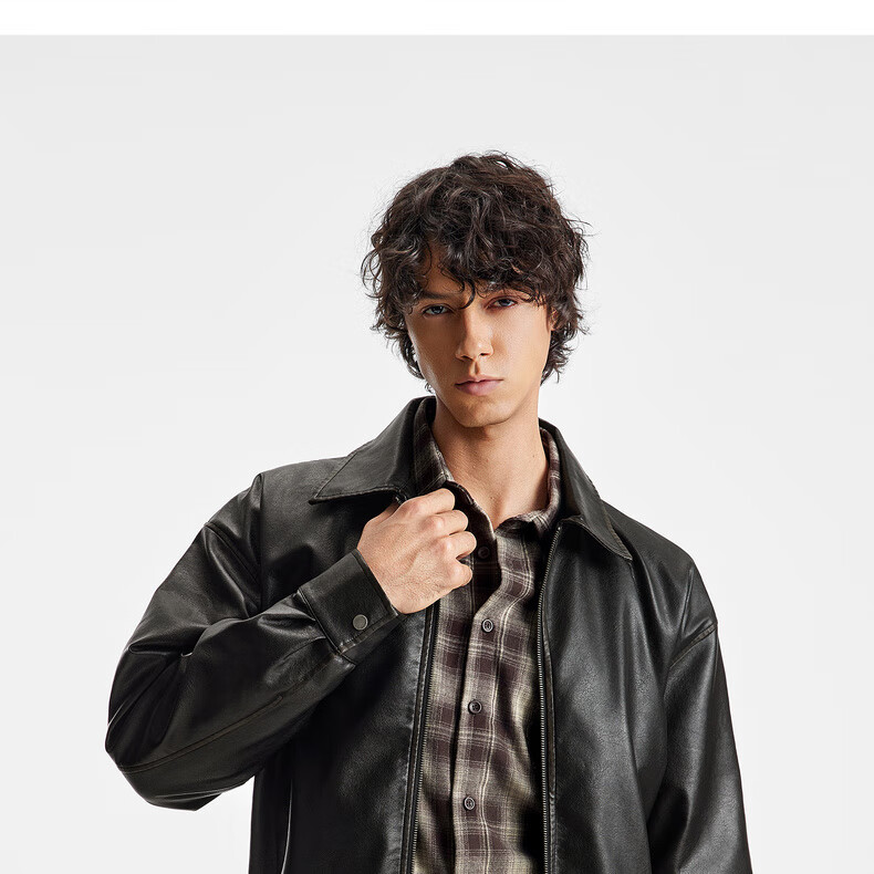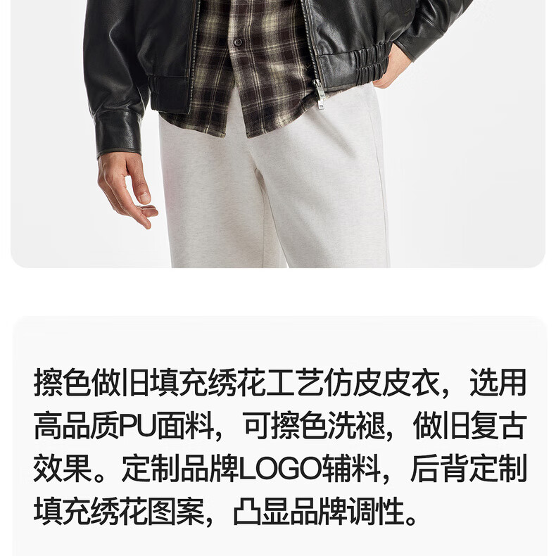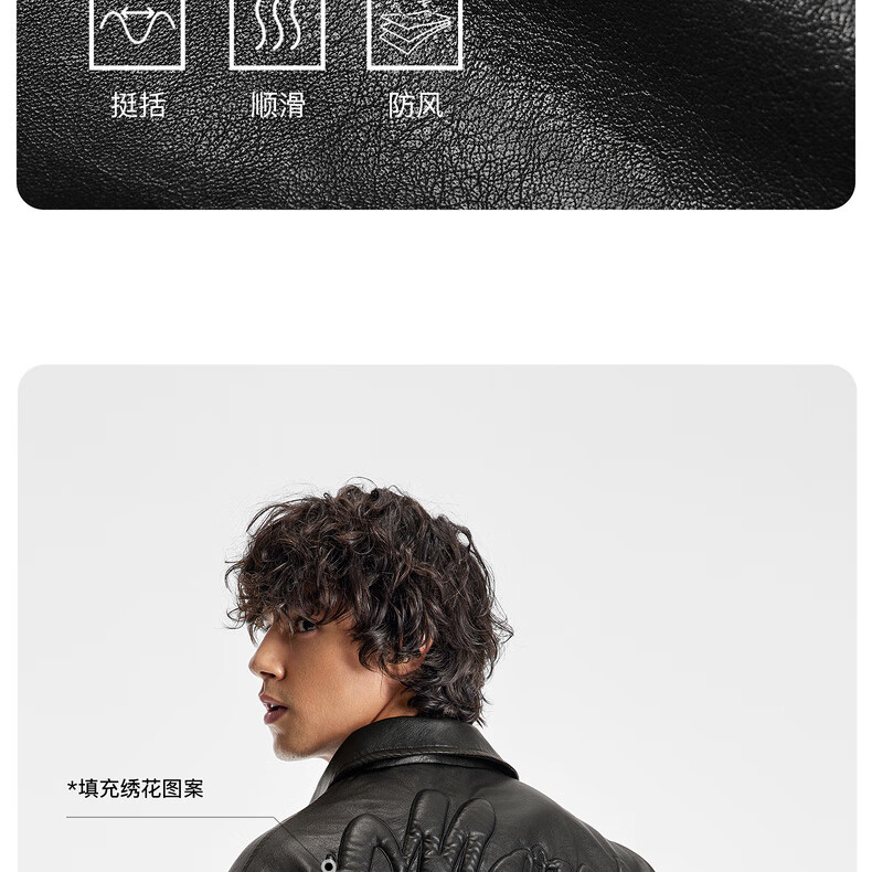 BODYDREAM Back Filled Embroidered Leather Jacket Men's Rubber Colored Distressed PU Leather Jacket Casual Loose Leather Jacket Black S 120Jin Jin equals within 0.5kg
