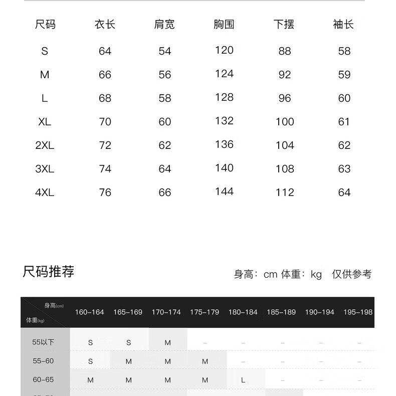 China (cm) 165 / 88-90 170 / 96-98 175 / 108-110 180 / 118-122 185 / 126-130