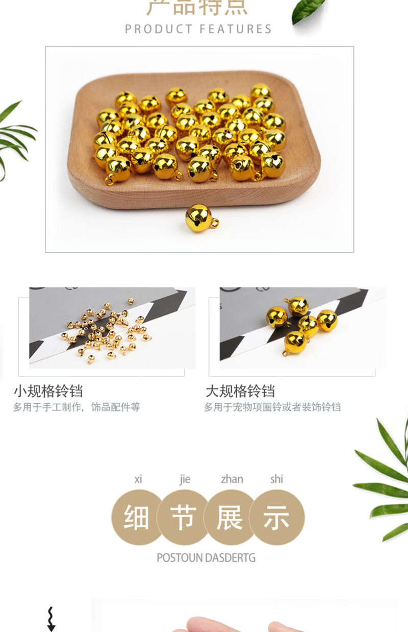 Golden copper bell handmade accessories decoration diy jewelry material small bell pet kitten puppy pendant gold 25MM 3 pieces