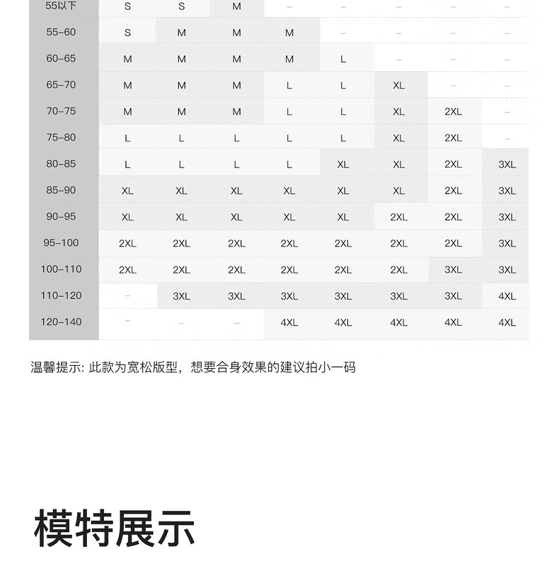 China (cm) 160-165/84-86 165-170 / 88-90 167-172 / 92-96 168-173 / 98-102 170-176 / 106-110