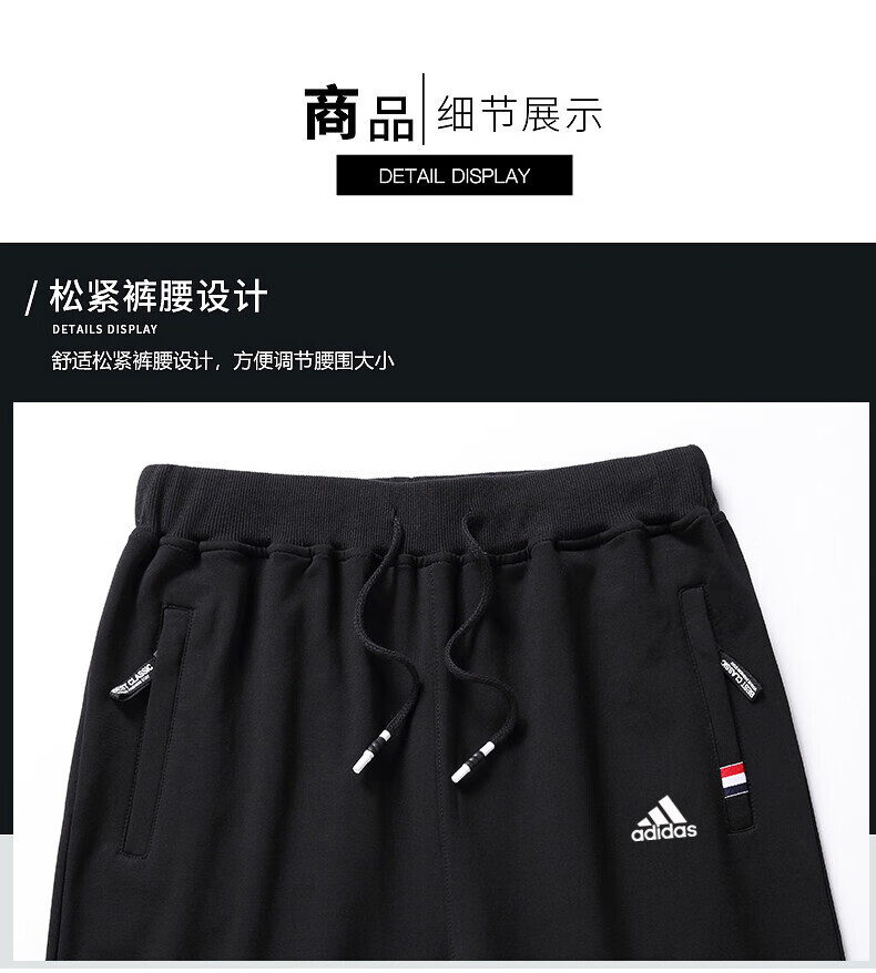 TERREX SKYCLIMB Adidas clover cotton sweatpants men's casual spring, autumn and winter pure cotton loose large size versatile sweatpants with velvet AD2009 black angled pants XL