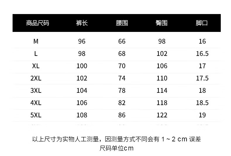Outseam (cm) 99 cm 101.5 cm 104 cm 106.5 cm 109 cm