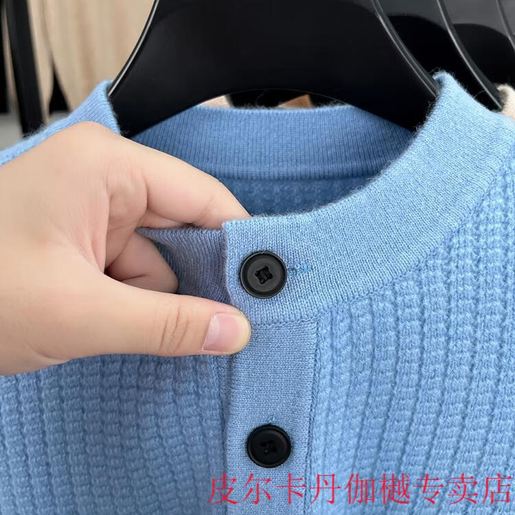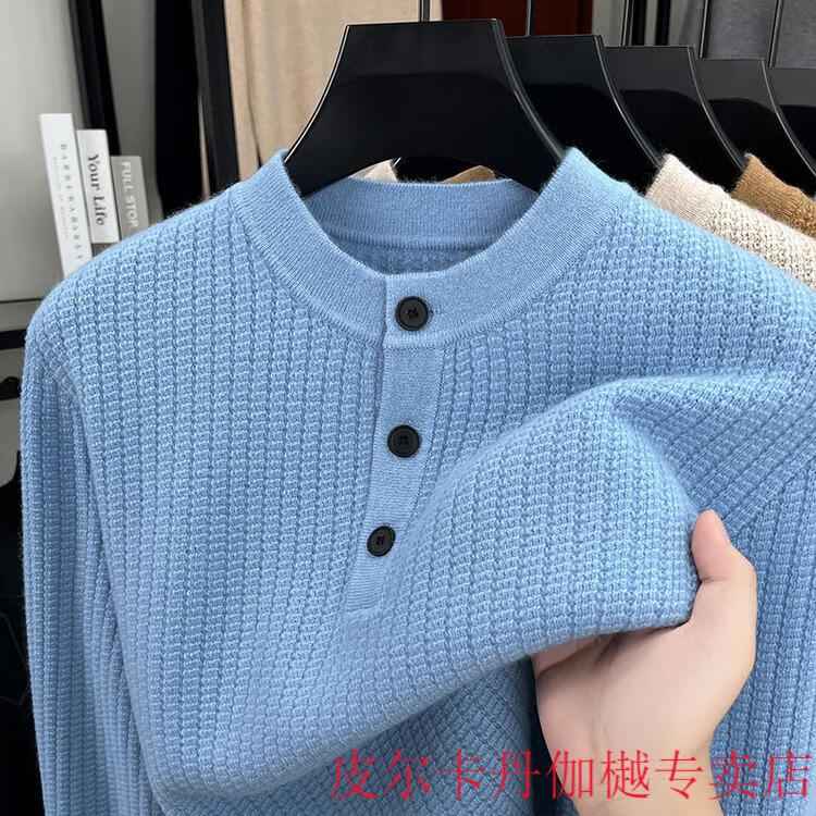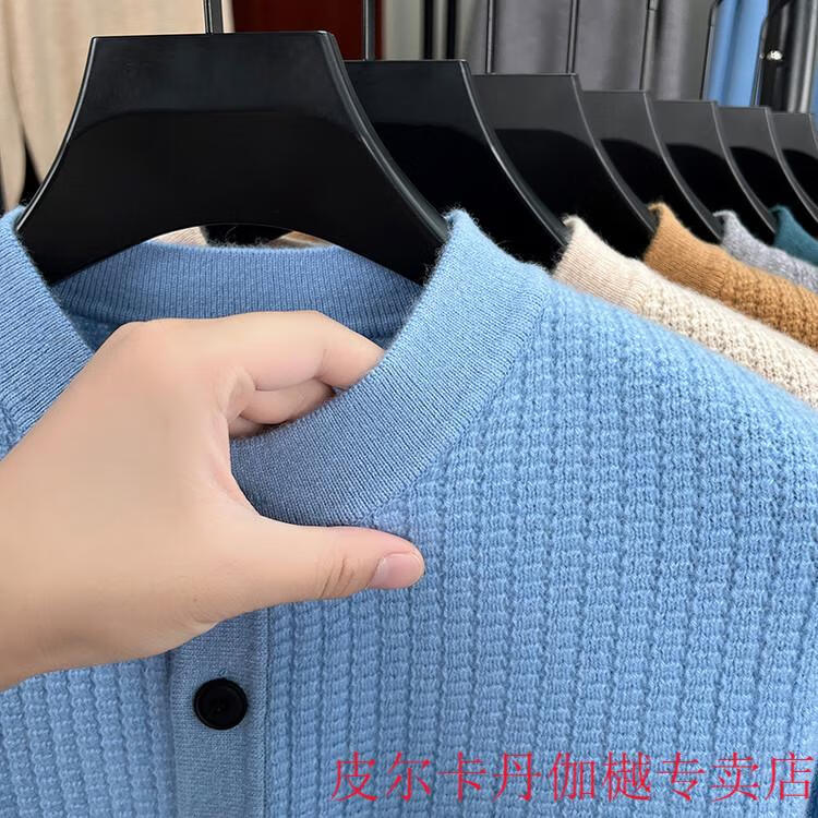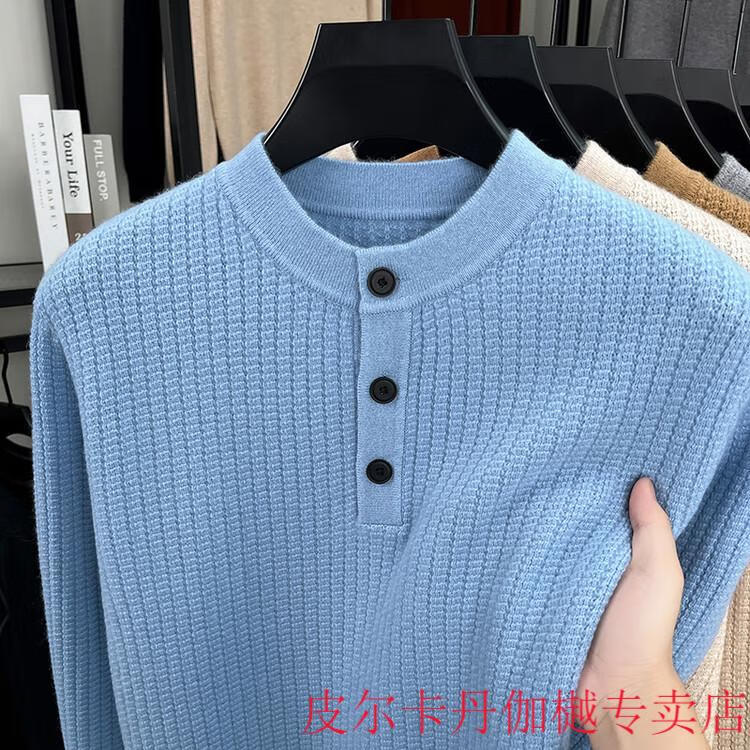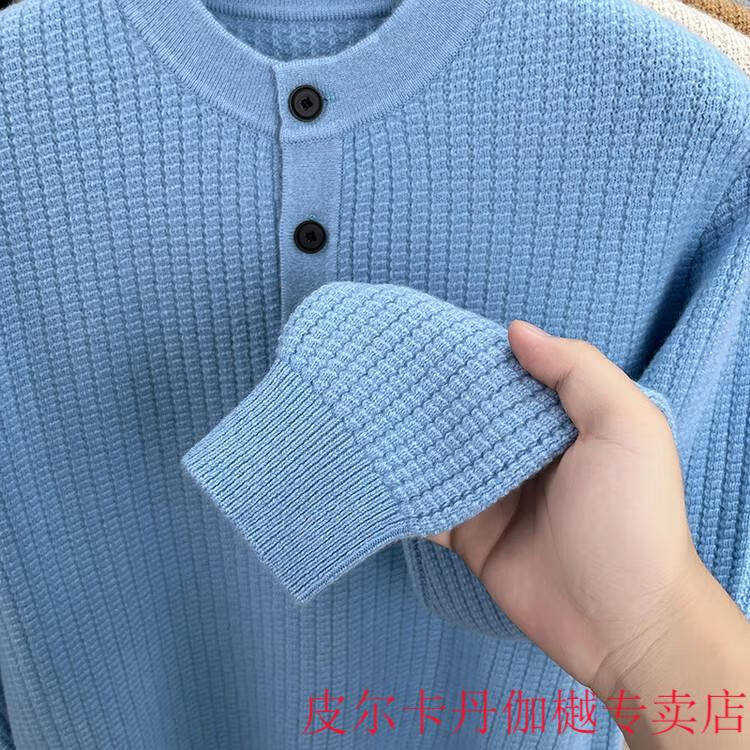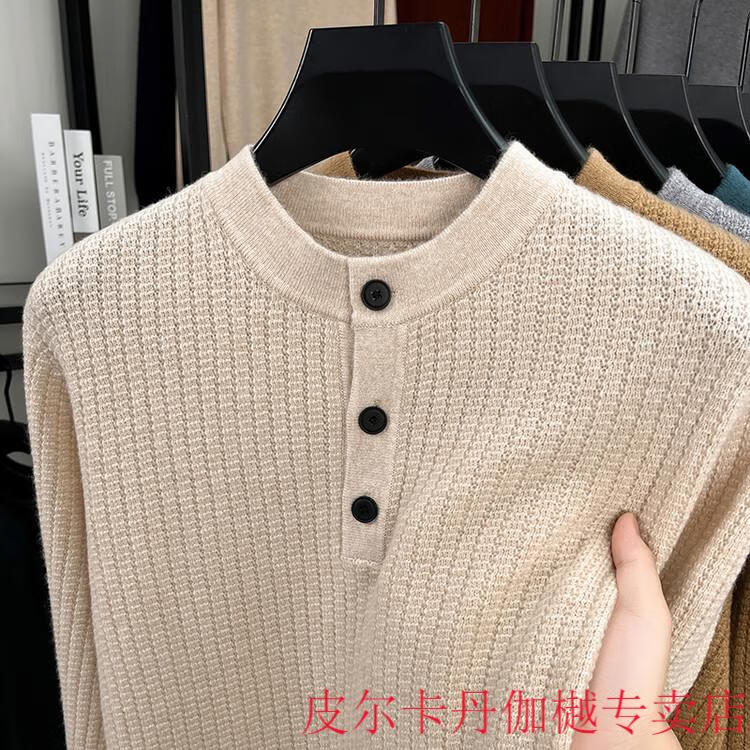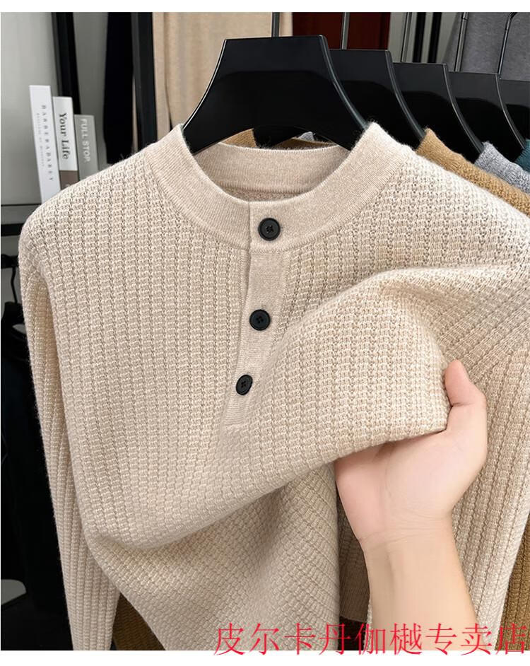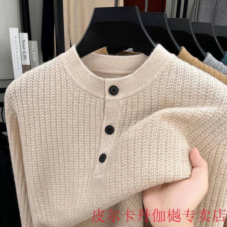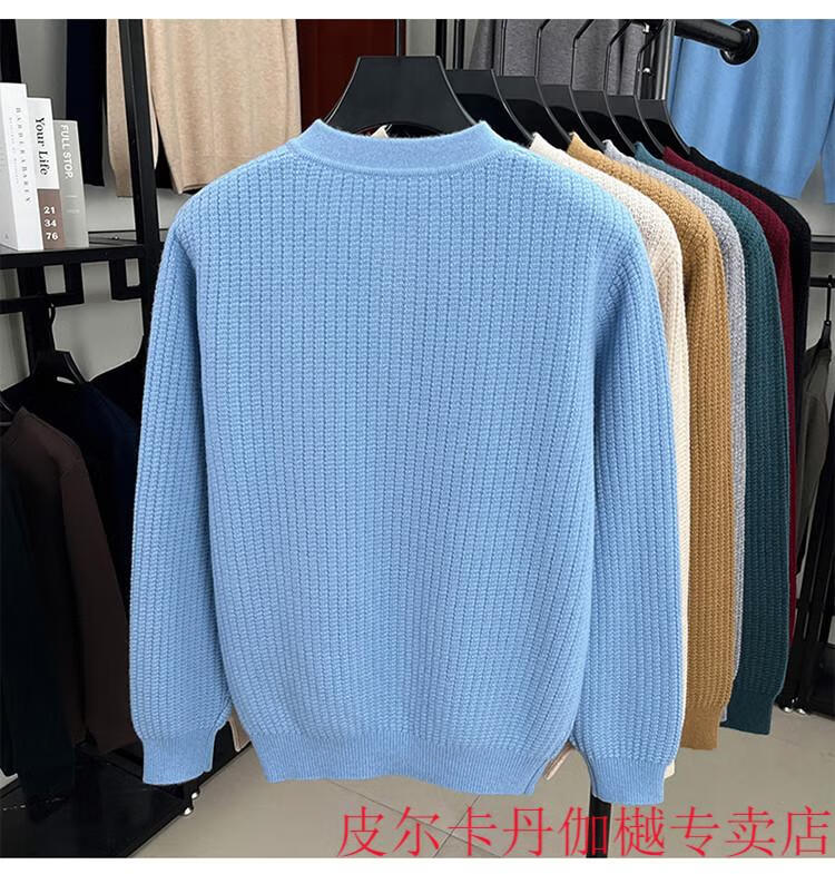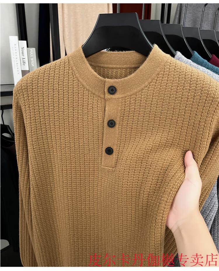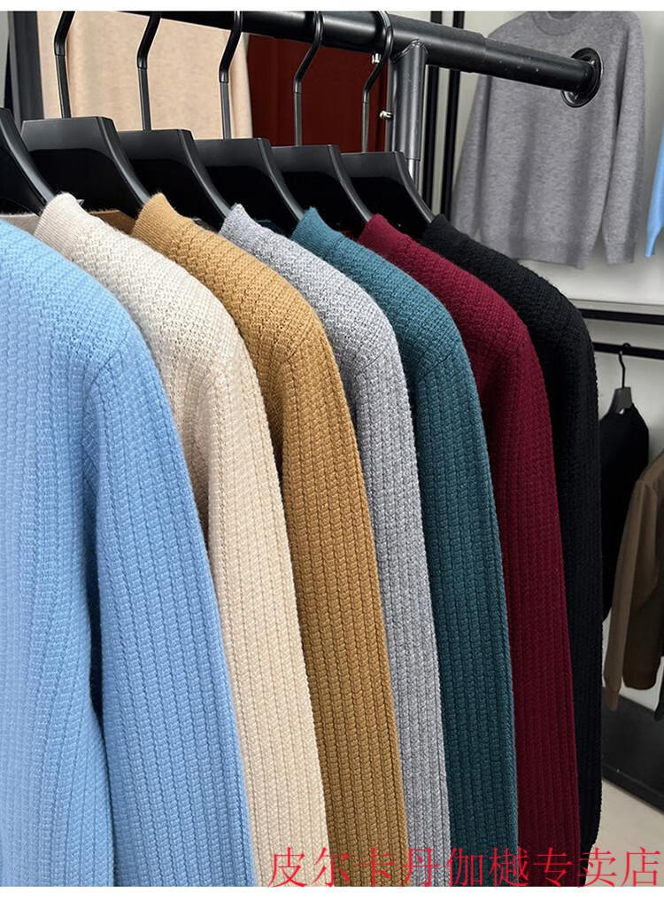 Pierre Cardin thickened sweater men's autumn and winter middle-aged casual cardigan Henry collar pullover knitted bottoming sweater warm and trendy floral dark green one size 105