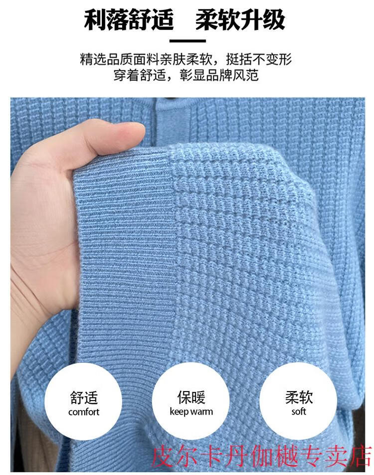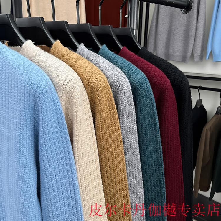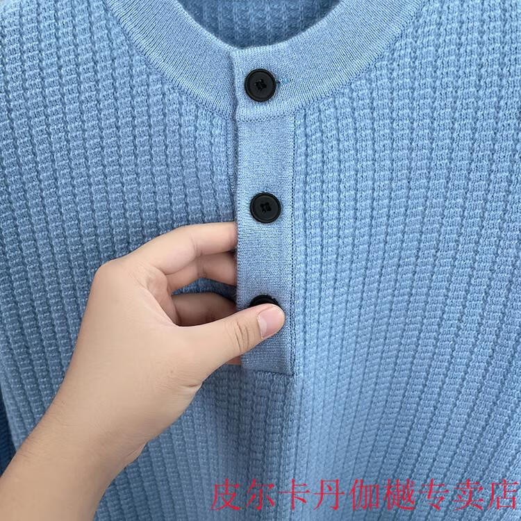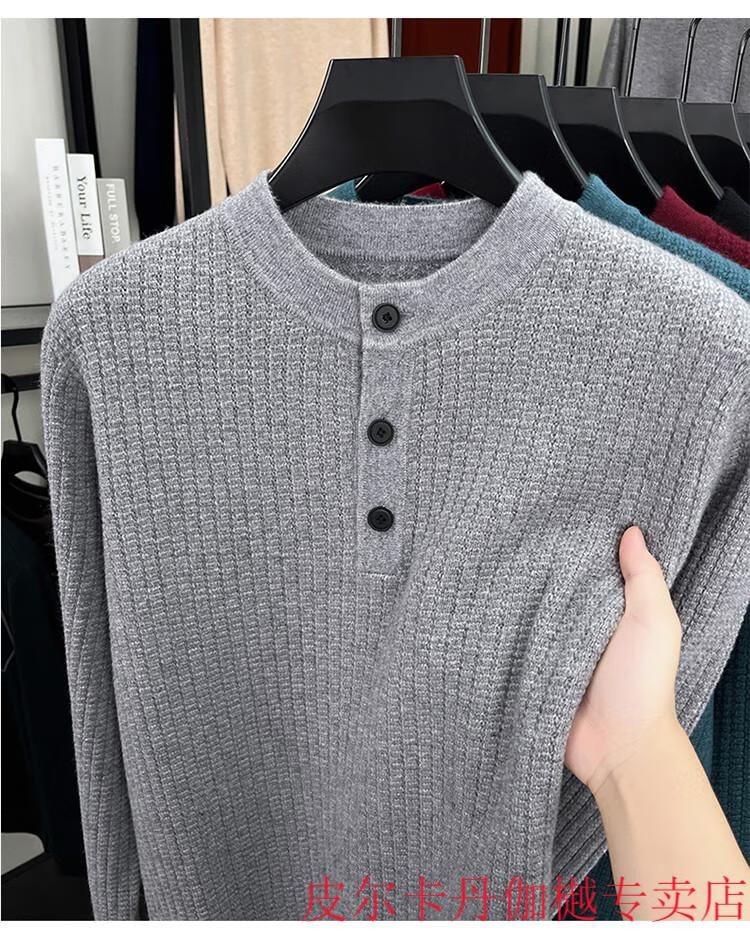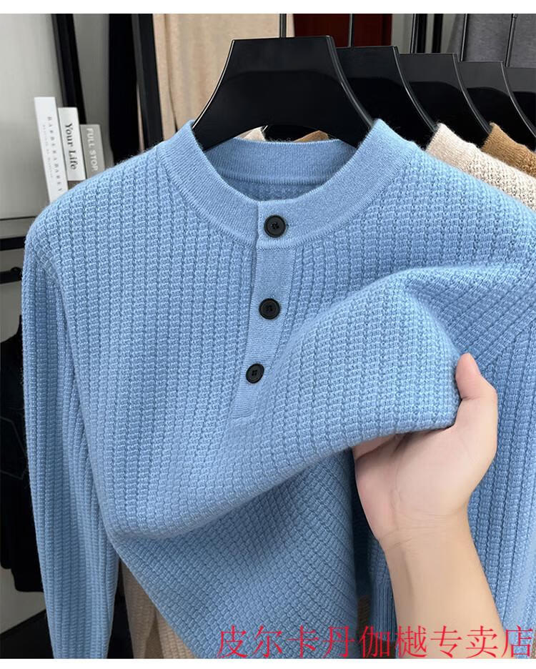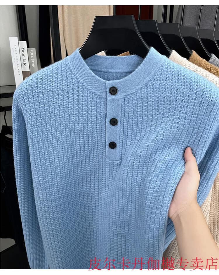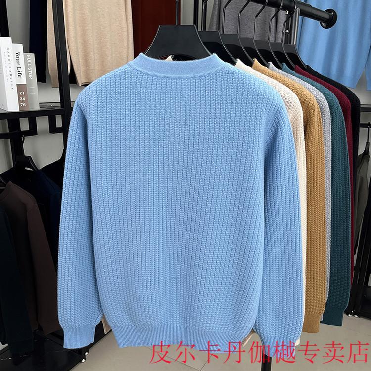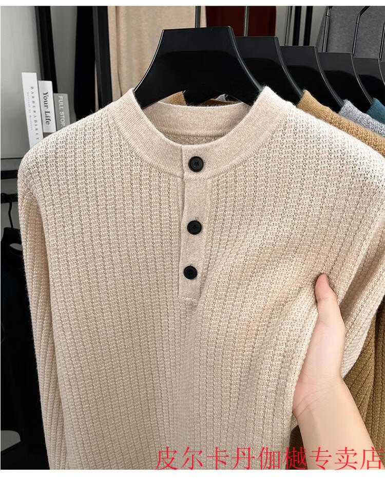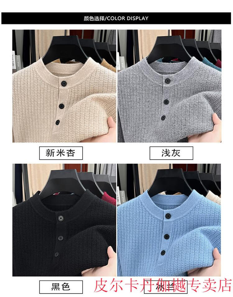Pierre Cardin thickened sweater men's autumn and winter middle-aged casual cardigan Henry collar pullover knitted bottoming sweater warm and trendy floral dark green one size 105