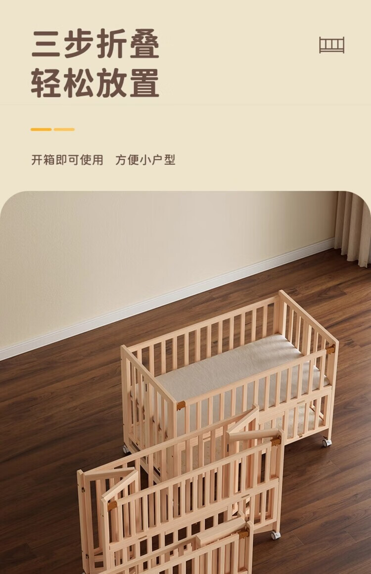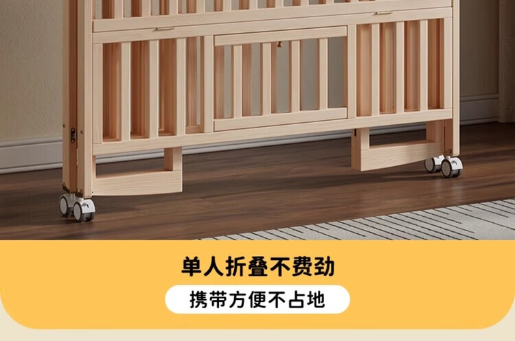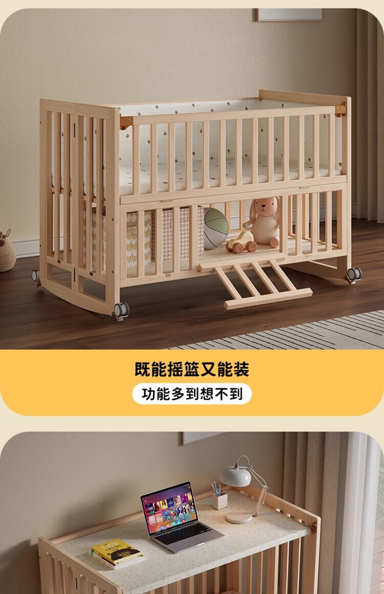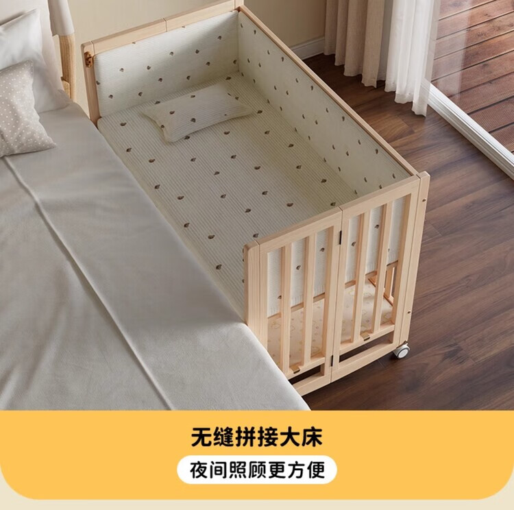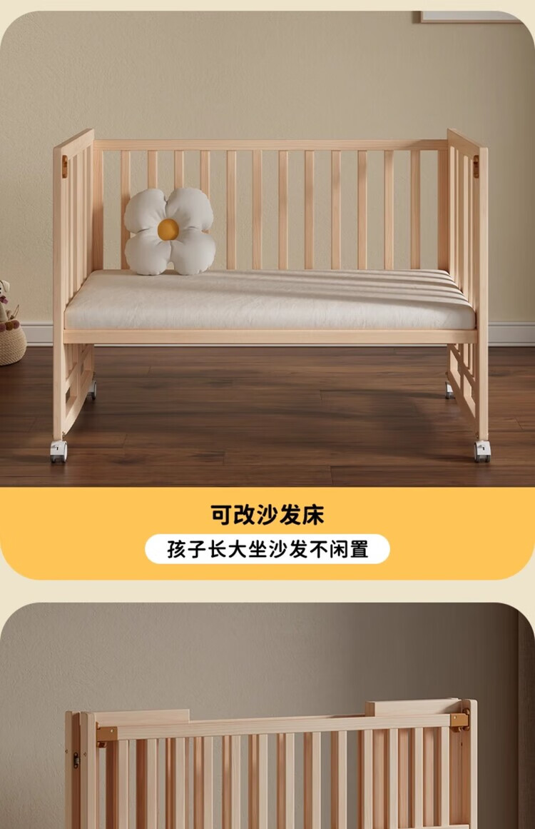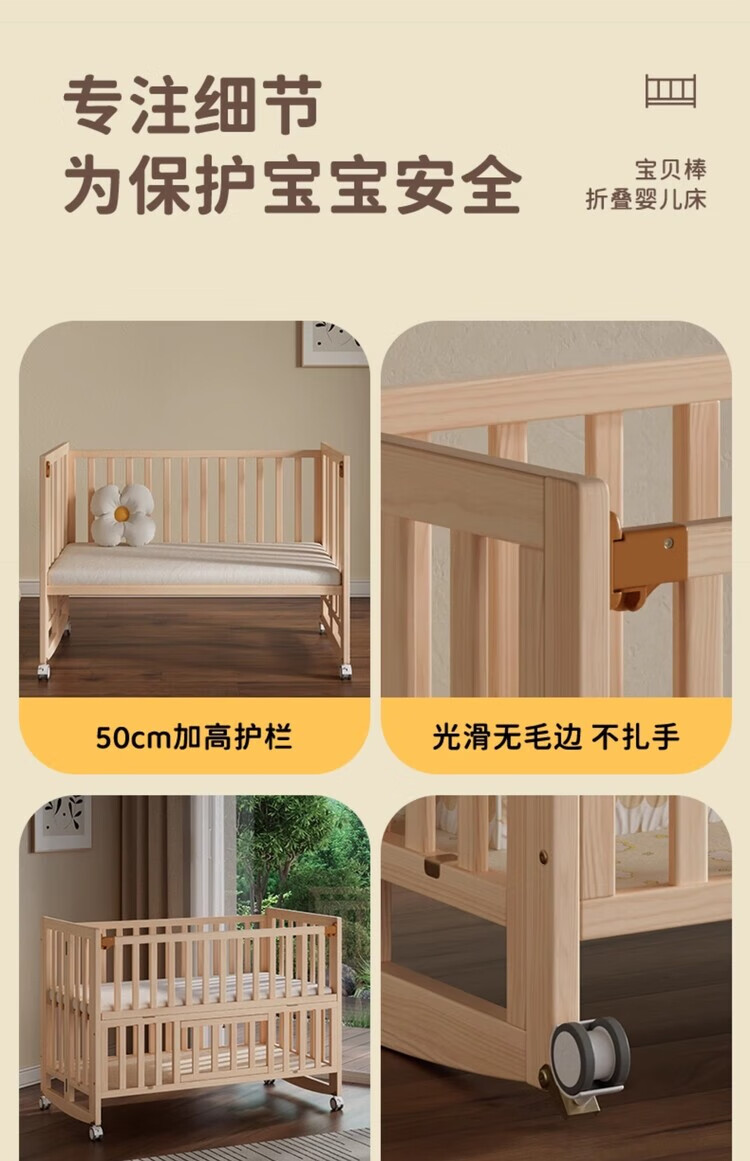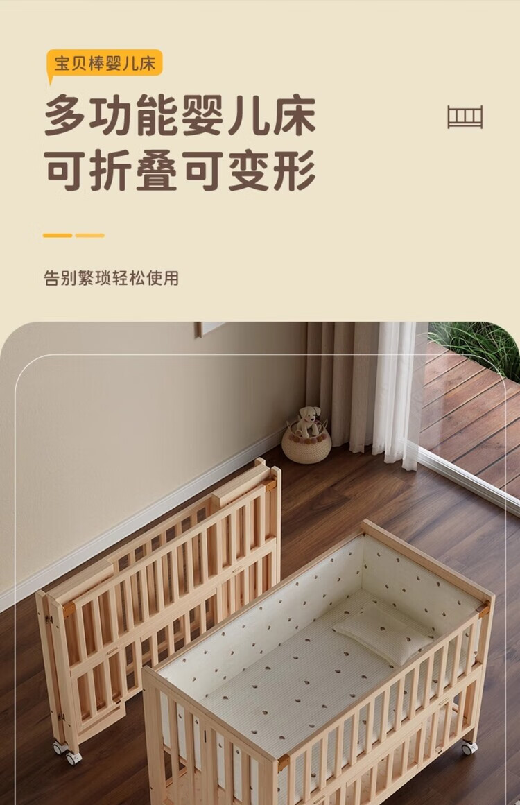 Baby stick crib, foldable baby bed, multifunctional children's bed, solid wood crib, splicing bed, unpainted, removable, bare crib, free mosquito net