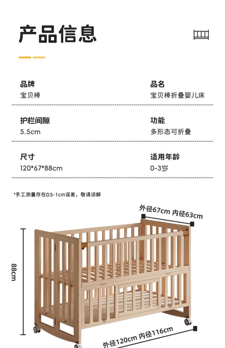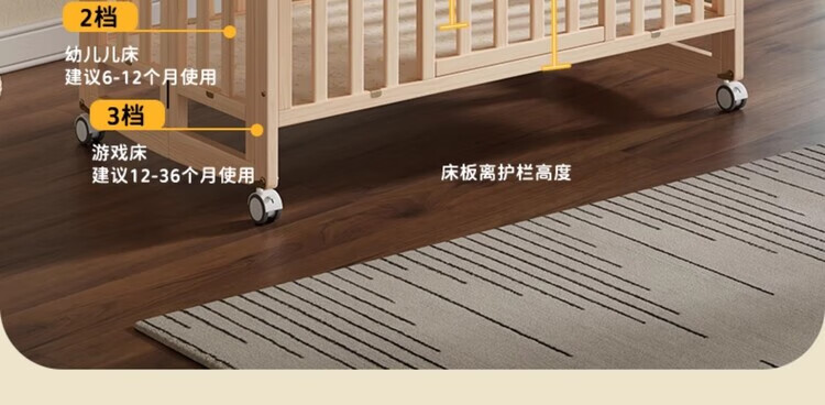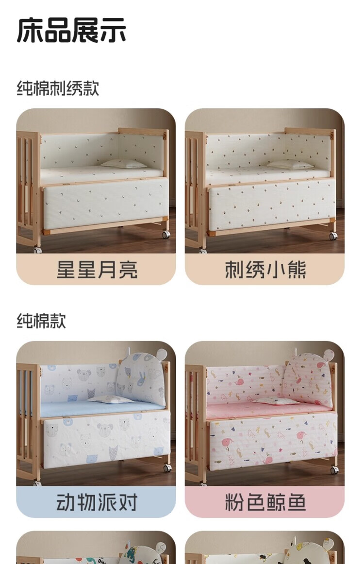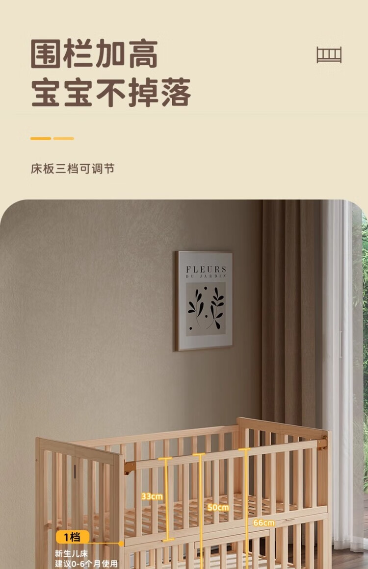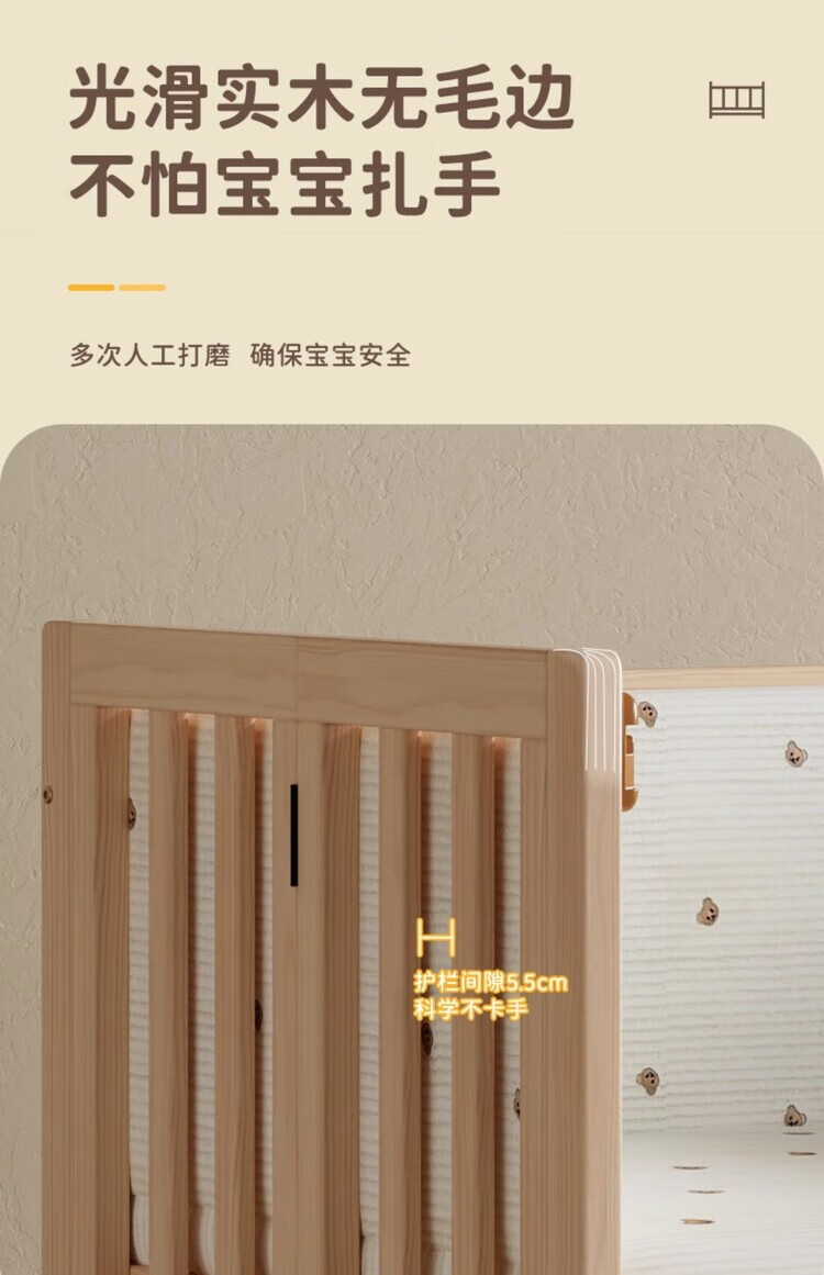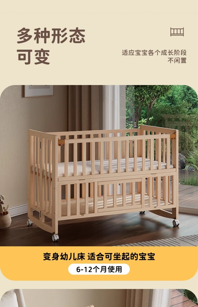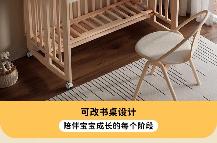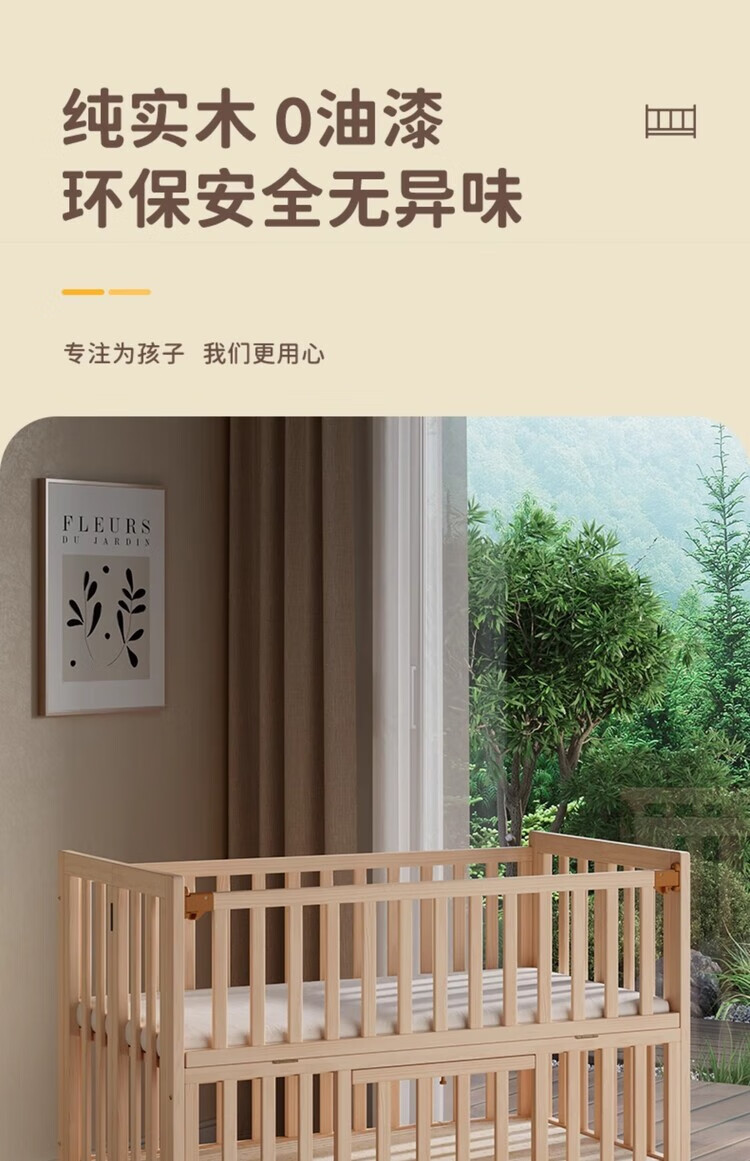 Baby stick crib, foldable baby bed, multifunctional children's bed, solid wood crib, splicing bed, unpainted, removable, bare crib, free mosquito net