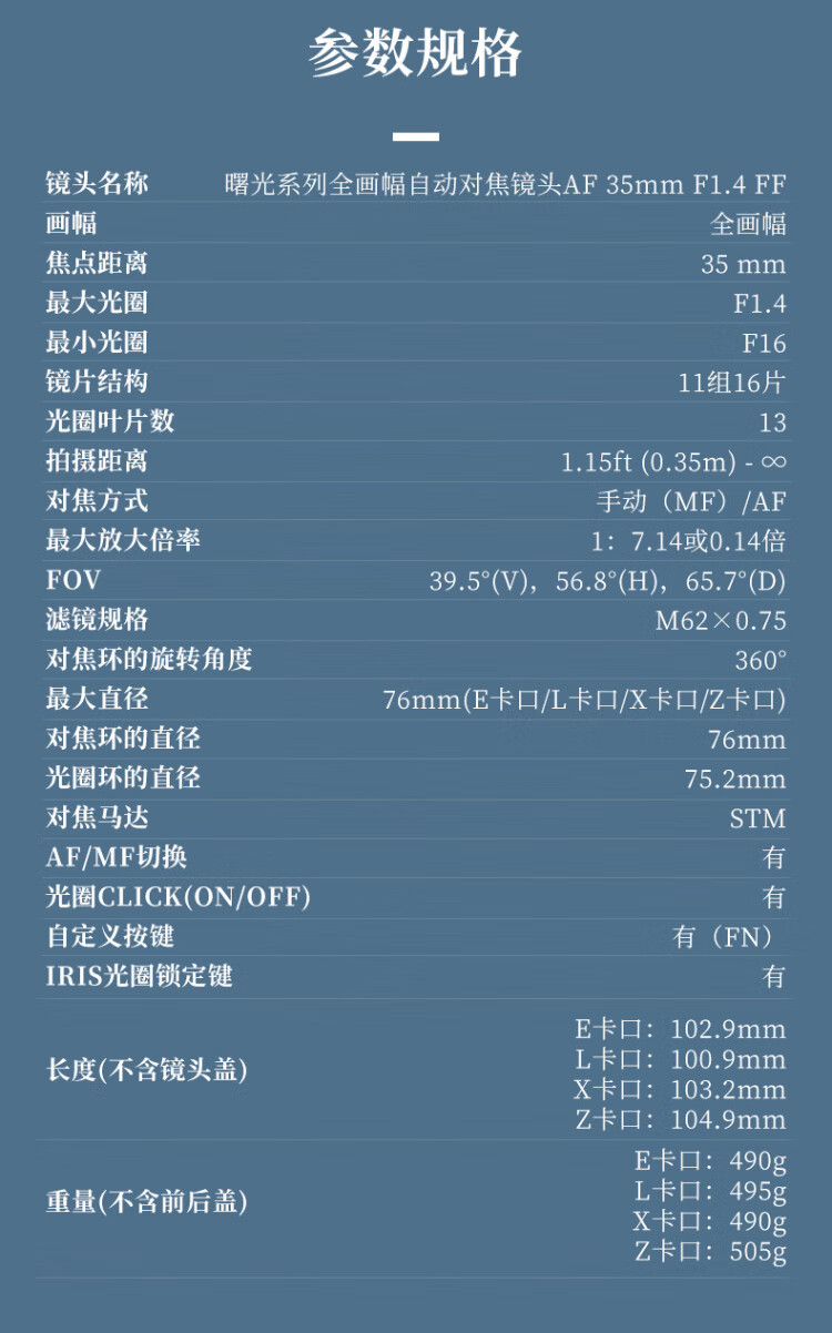 SIRUI Dawn Series 35mmF1.4 full-frame large aperture humanistic fixed focus autofocus lens E-mount