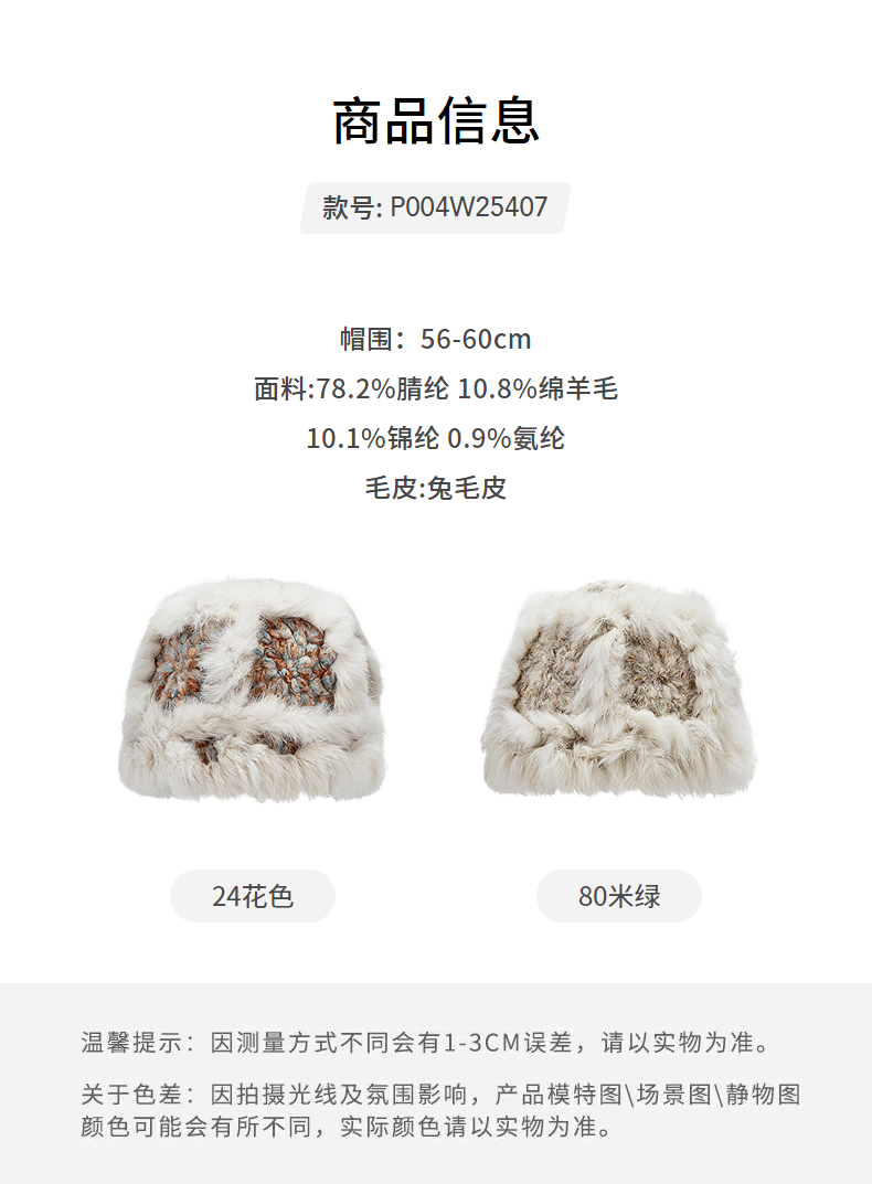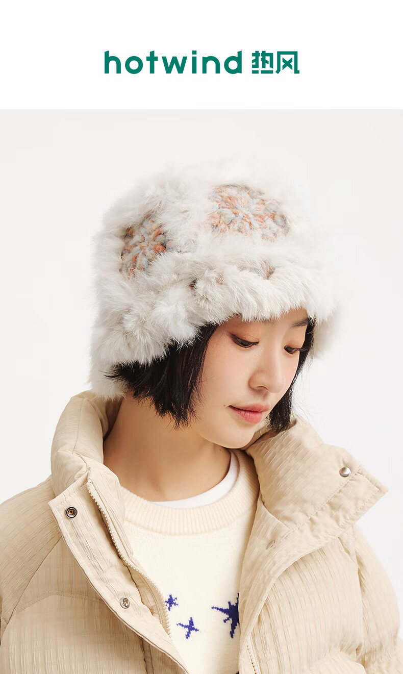 Hotwind (Hotwind) shopping mall same style women's plush hat women's winter new color stitching warm face-showing small hat 24 colors F