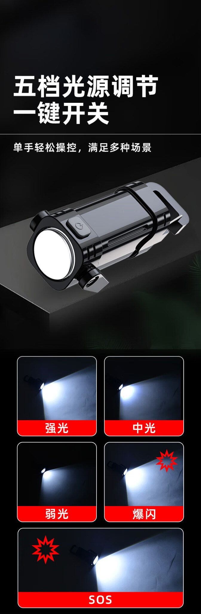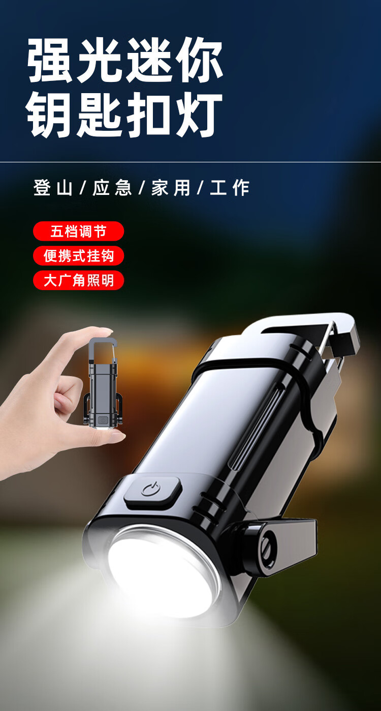 Super bright and portable outdoor flashlight small keychain light super bright night work light 2025 rechargeable mini portable multi-functional led emergency light top configuration - light and portable + five-speed adjustment + strong light explosion