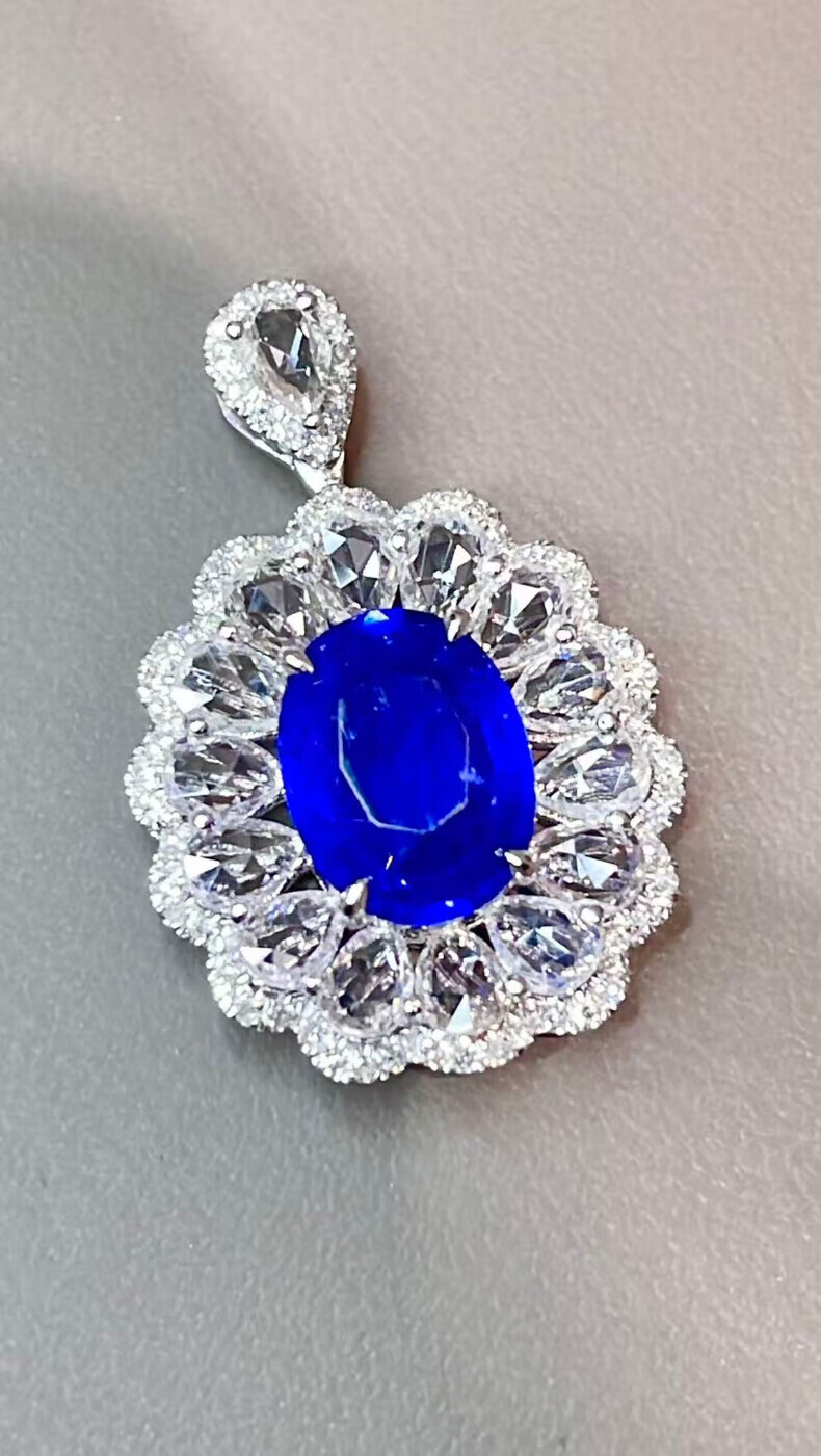 HEEKAIYI Sapphire Necklace for Women Royal Blue 18k Gold Diamond Pendant Chinese Valentine's Day Birthday Gift for Wife and Girlfriend Selected 1.92 Carat/Royal Blue