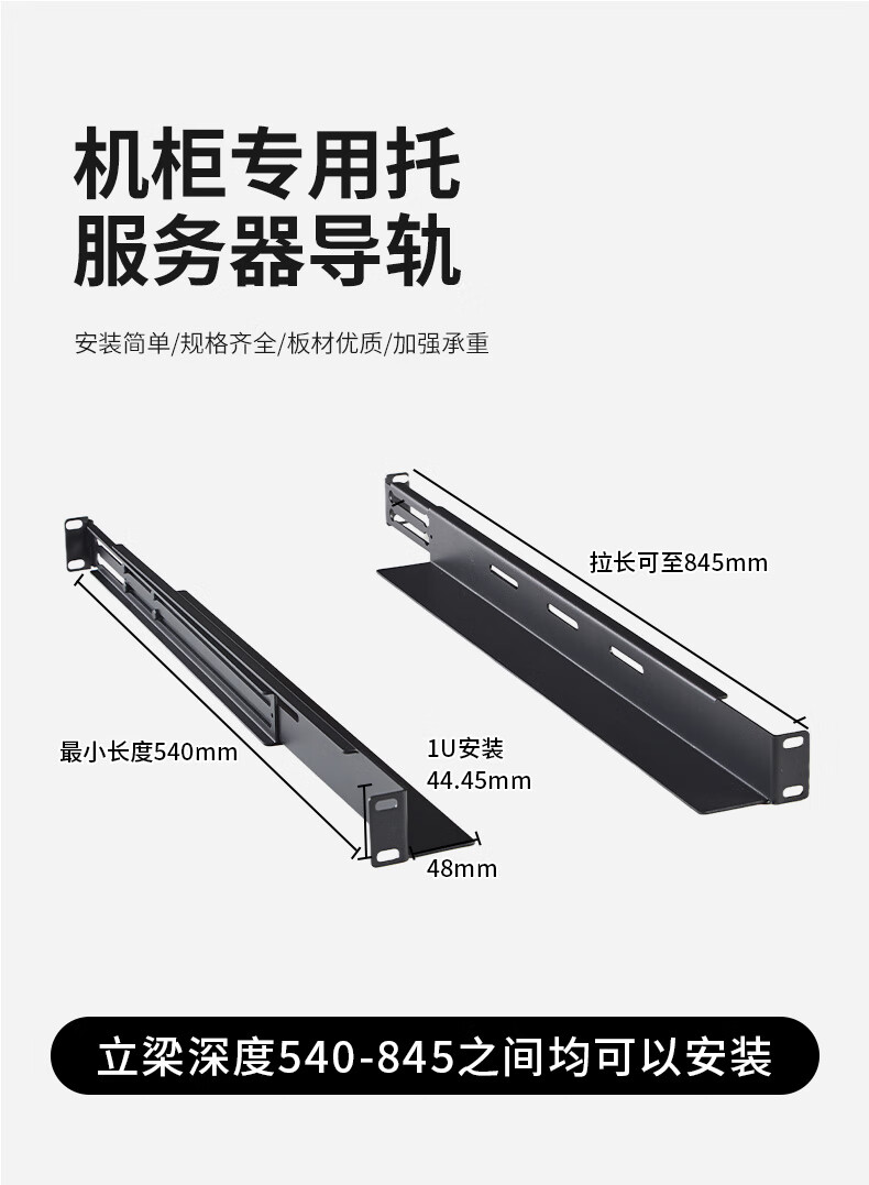 Yatuo heavy-duty rack L-shaped retractable server rail 1U2u bracket triangle iron partition standard cabinet bracket L-shaped rail cabinet accessories bracket black rack-mounted bracket 540 adjustable 545-845mm 1x1x1cm