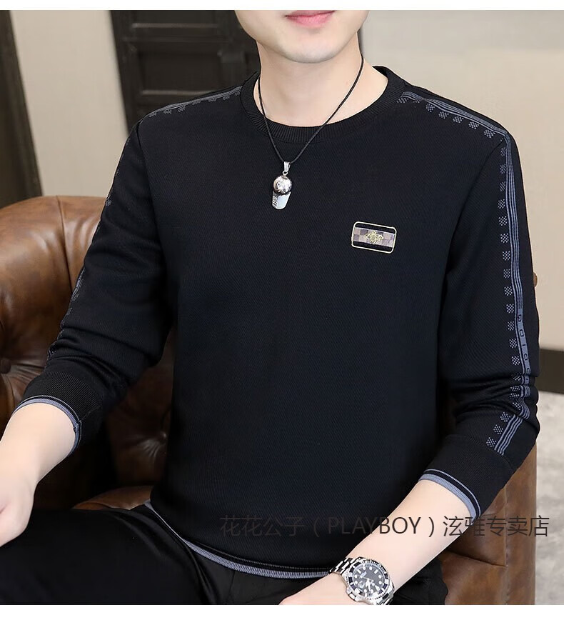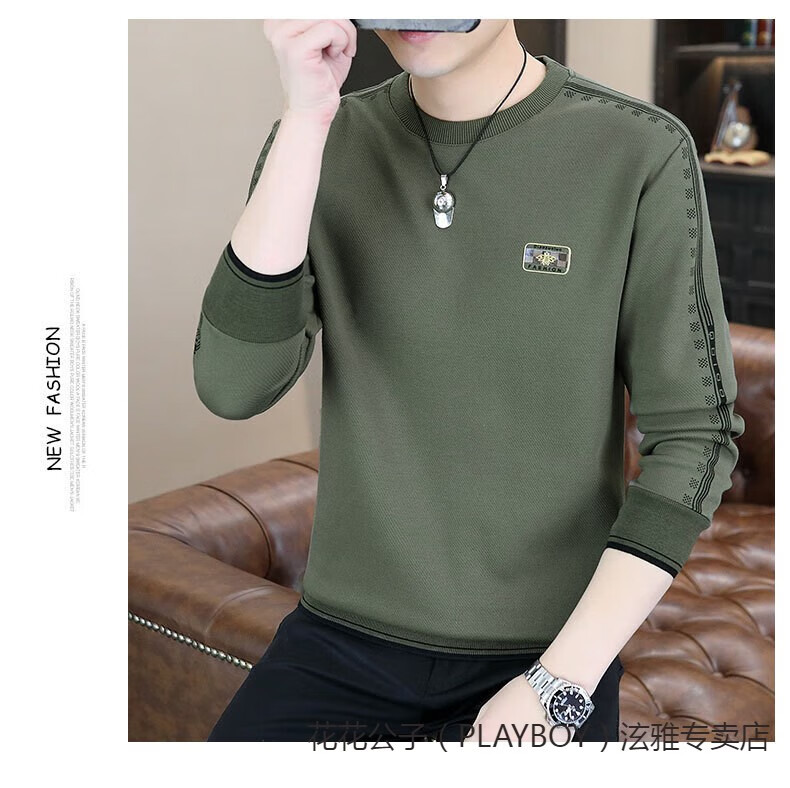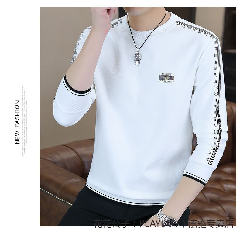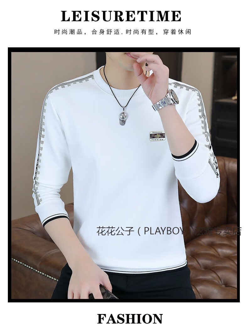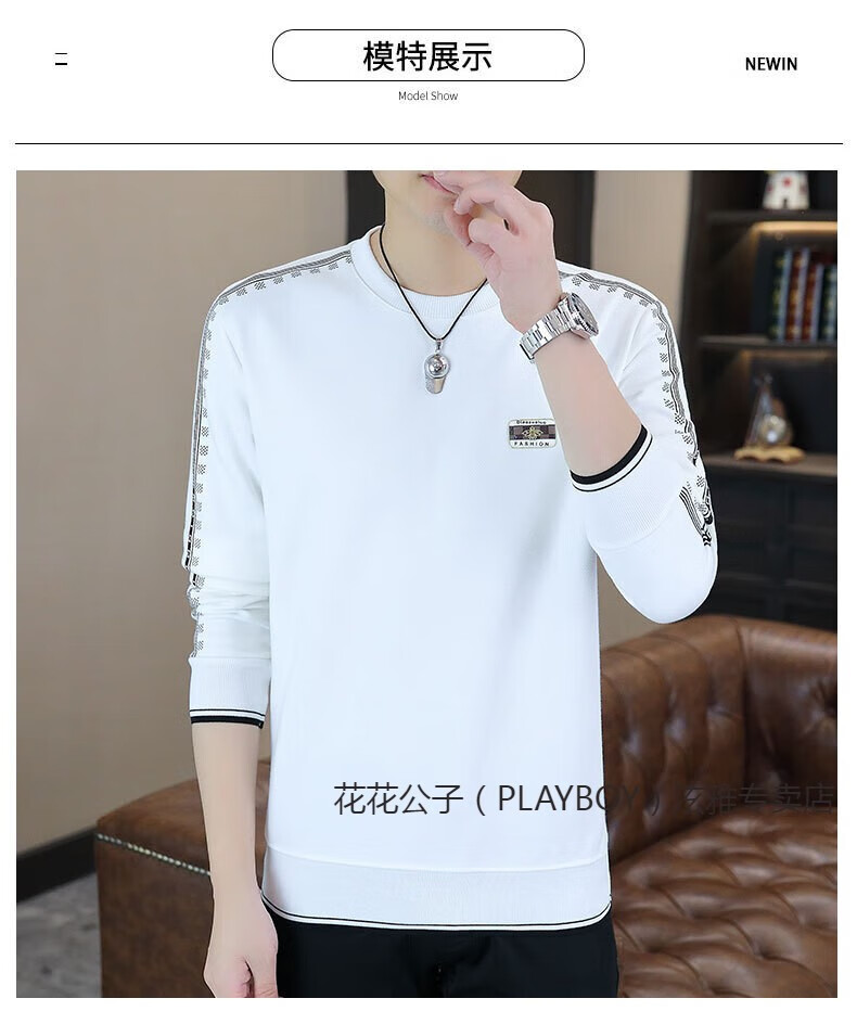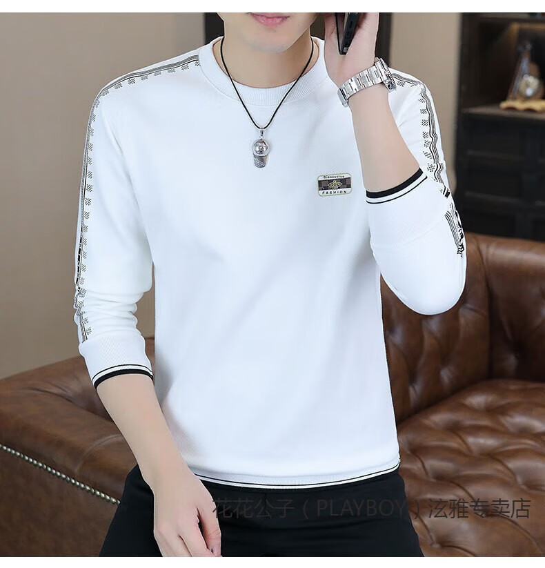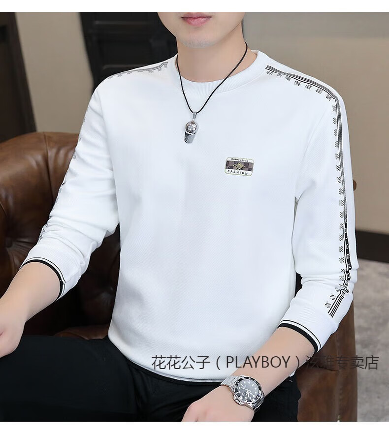 Playboy (PLAYBOY) Classic European Station 2025 Autumn and Winter New Men's Round Neck Velvet Sweatshirt Trendy Brand Fashion Pullover Bottoming Shirt White L
