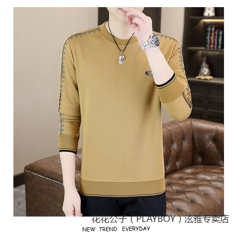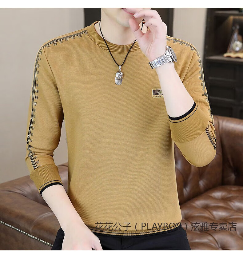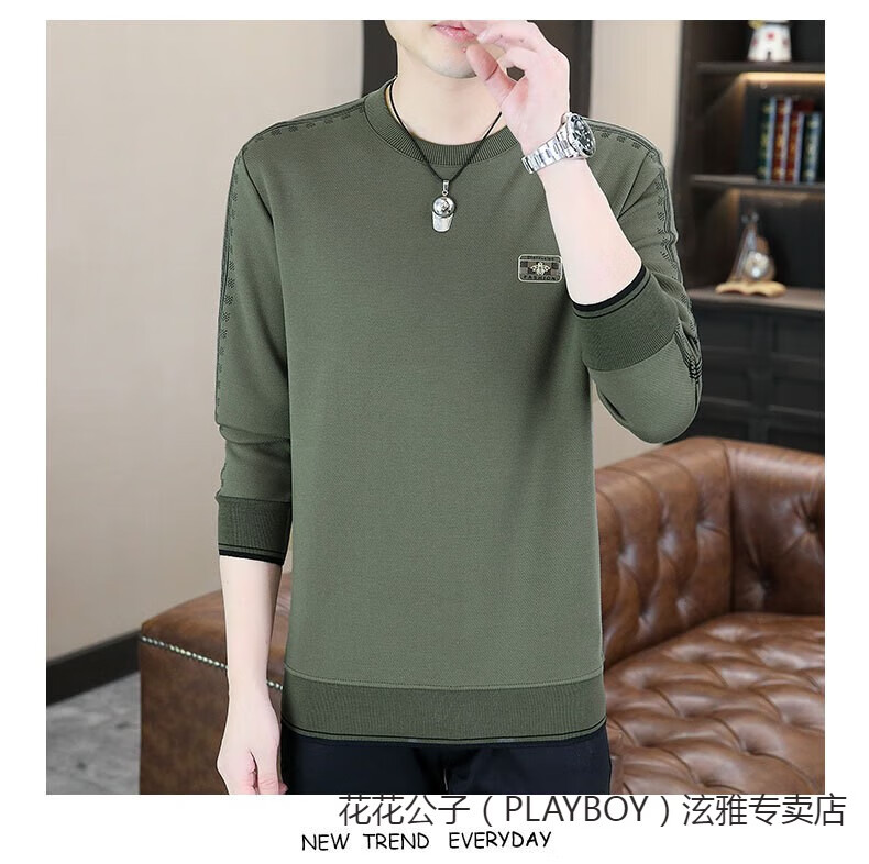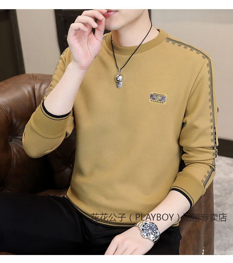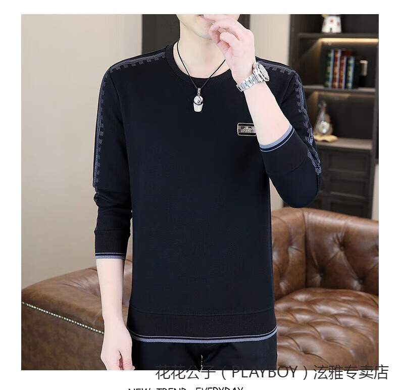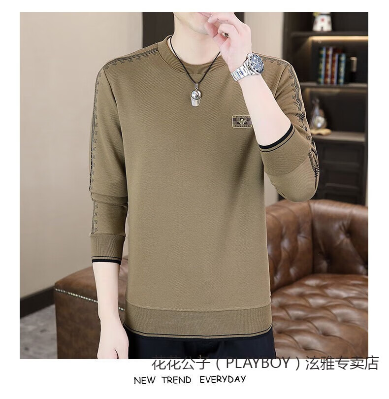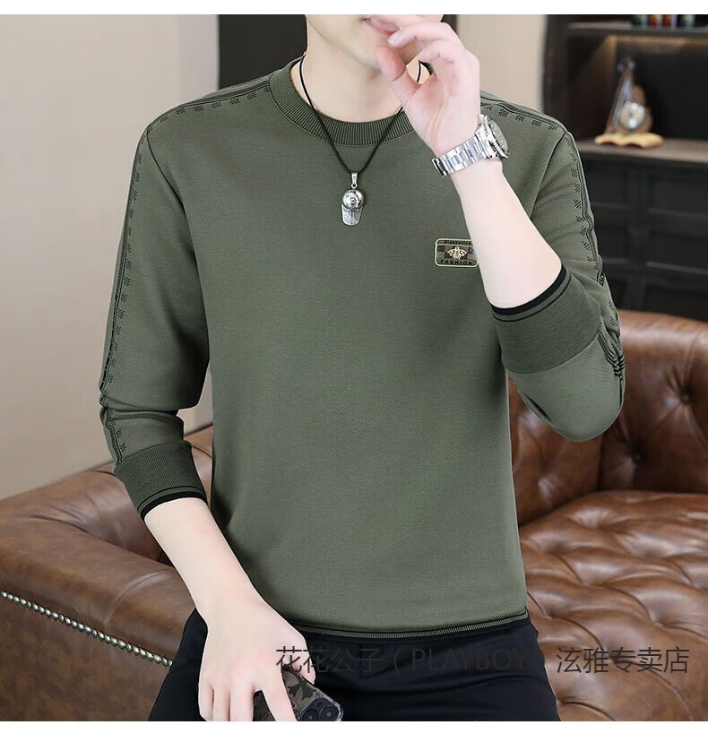 Playboy (PLAYBOY) Classic European Station 2025 Autumn and Winter New Men's Round Neck Velvet Sweatshirt Trendy Brand Fashion Pullover Bottoming Shirt White L