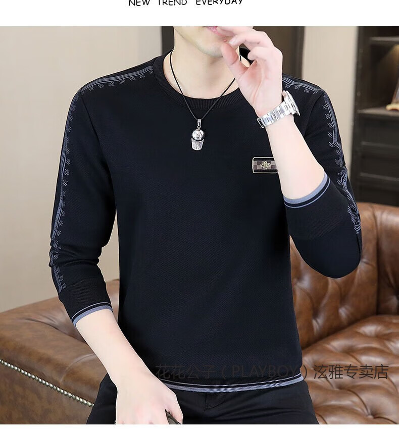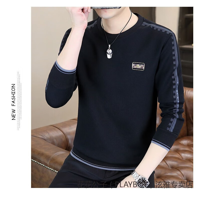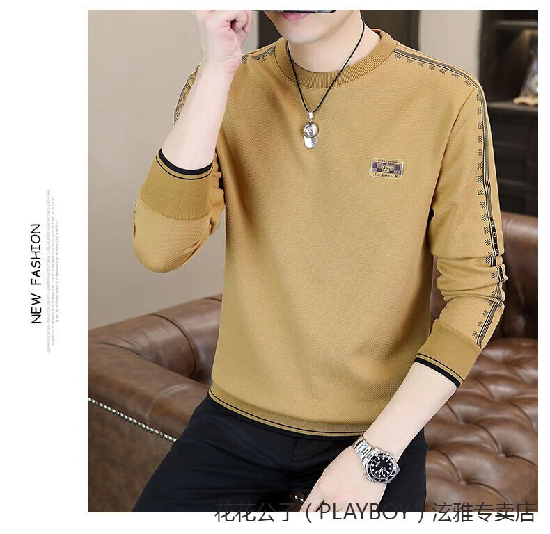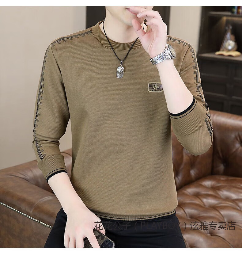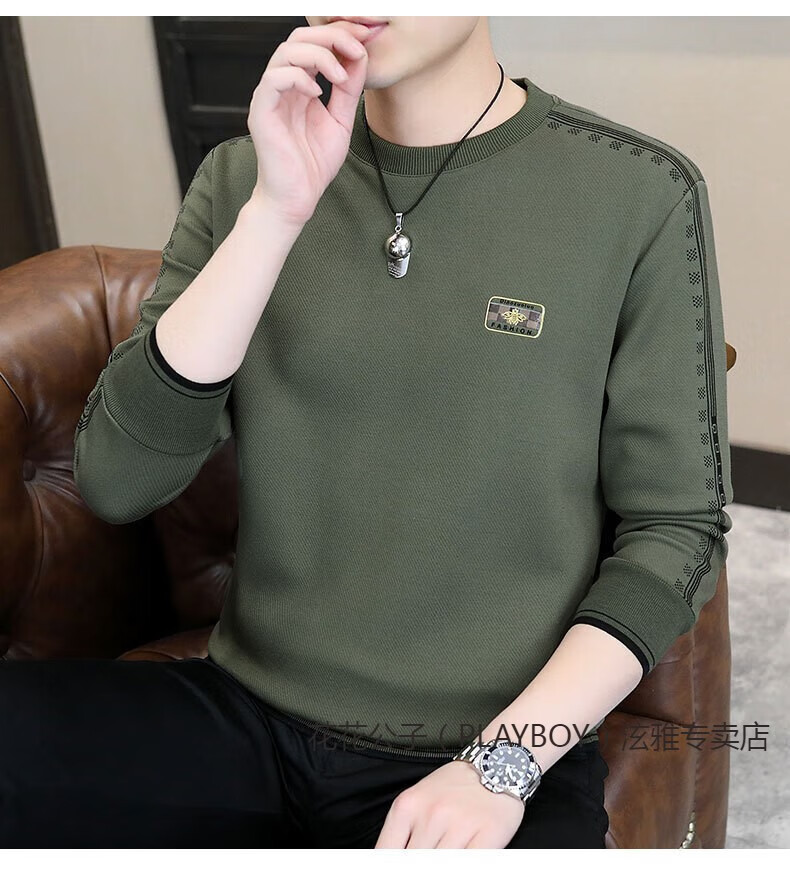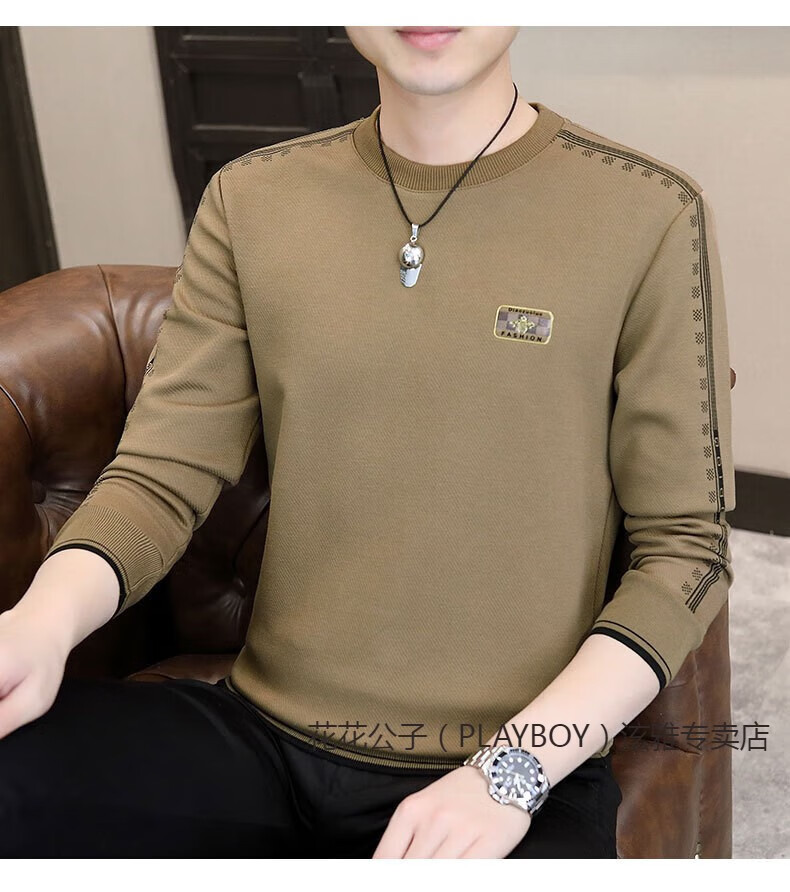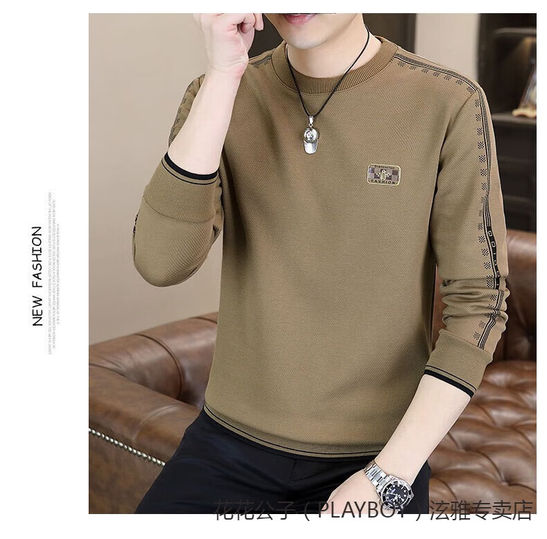 Playboy (PLAYBOY) Classic European Station 2025 Autumn and Winter New Men's Round Neck Velvet Sweatshirt Trendy Brand Fashion Pullover Bottoming Shirt White L
