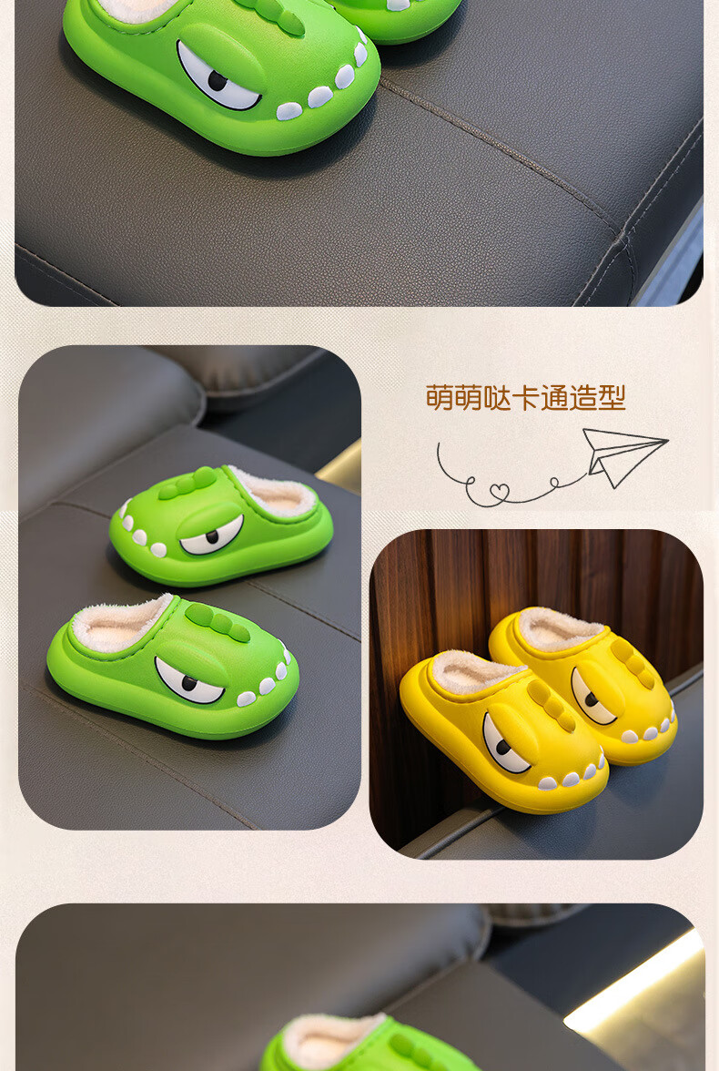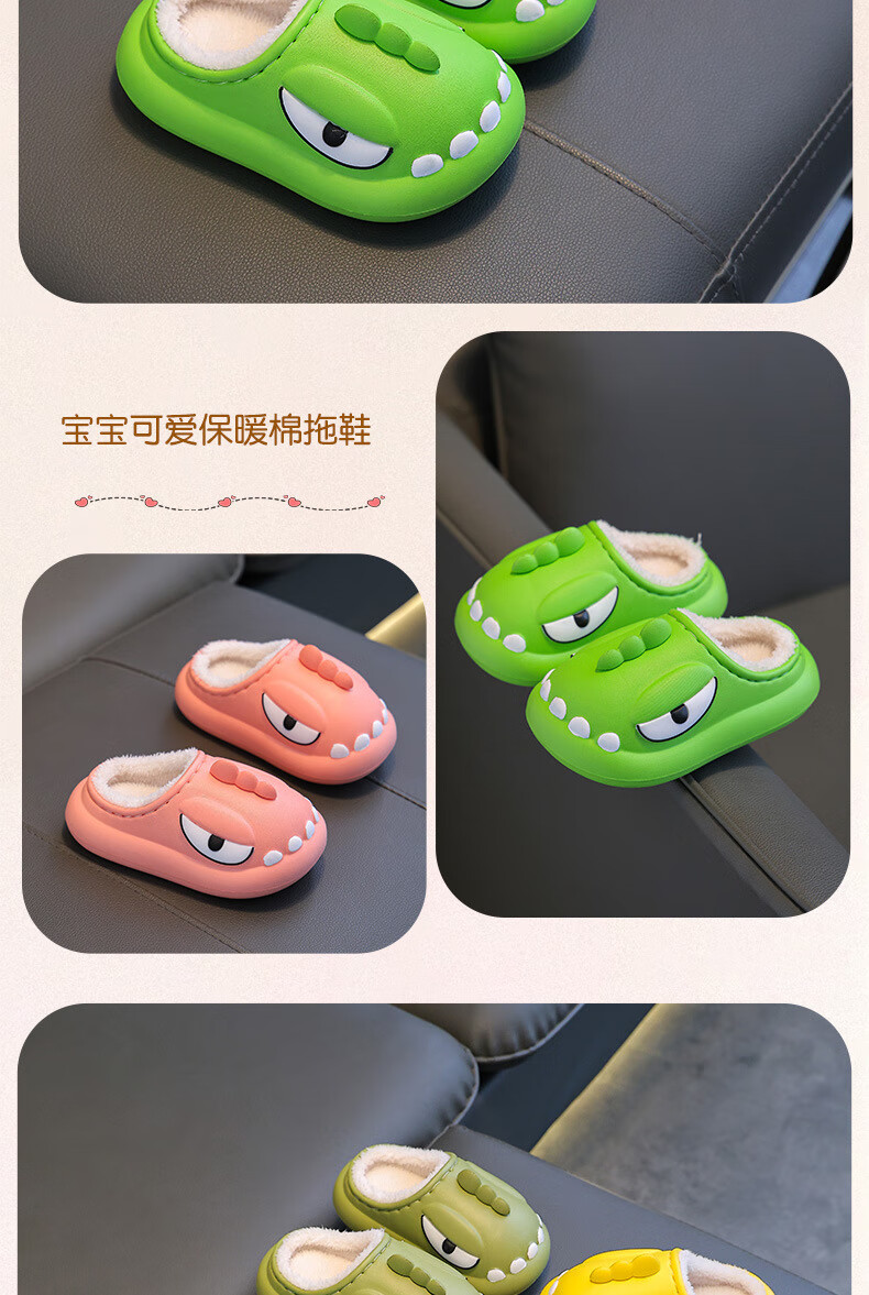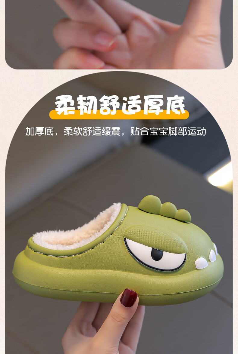 Yunshun Children's Cotton Slippers Winter Boys' EVA Treading Feeling Girl's Bag Heel Waterproof Anti-Slip Plus Velvet Warm Baby Cotton Slippers Green 29 190 Codes (Inner Length 18CM Suitable for 29-30 Codes)