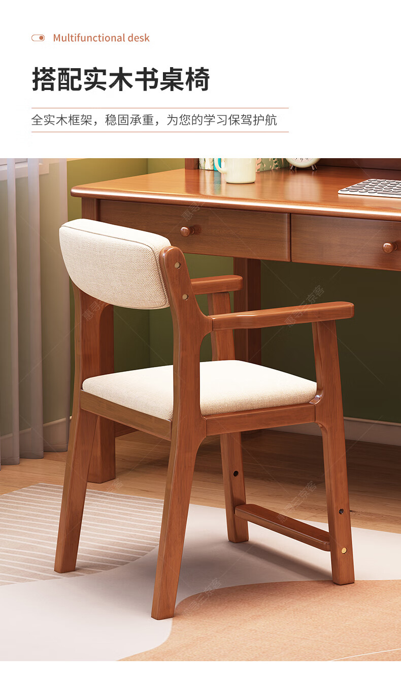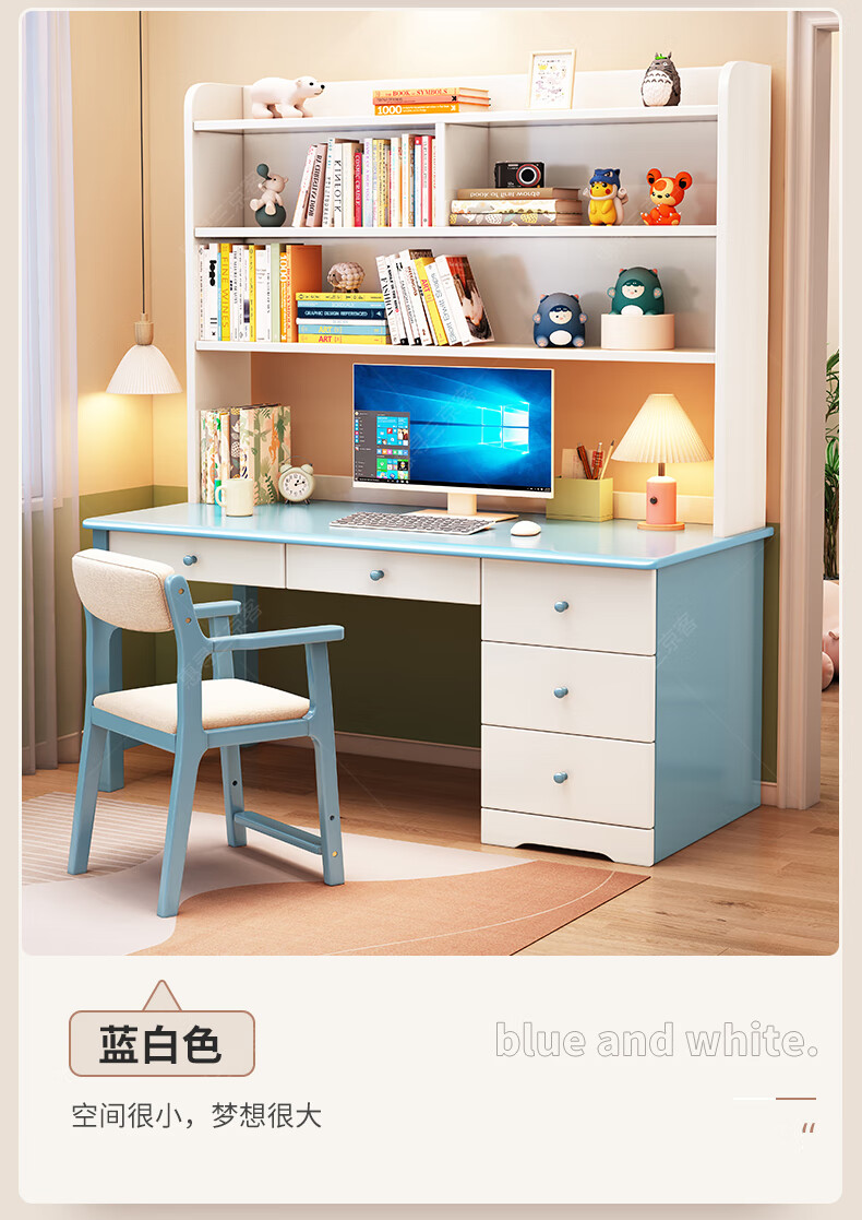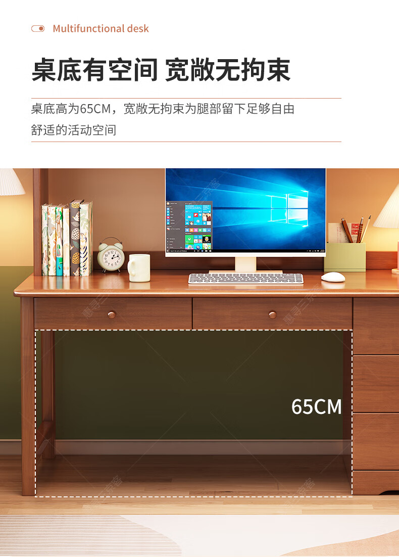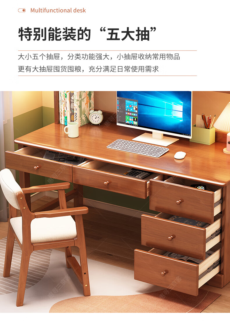 Huixun solid wood desk bookcase bookshelf combination computer desk bedroom home student writing desk multi-functional children's study table walnut color #desk + bookshelf 100cm*60cm*75cm total height 185cm