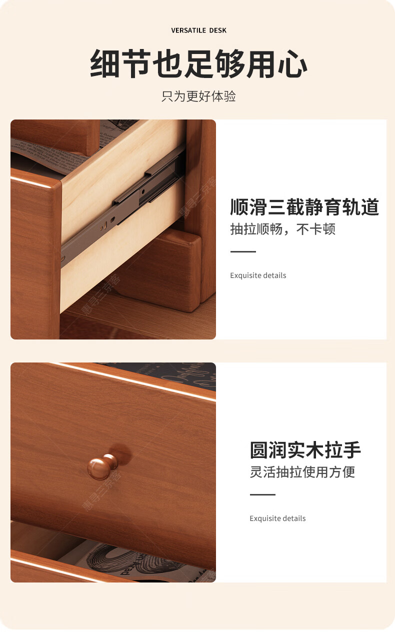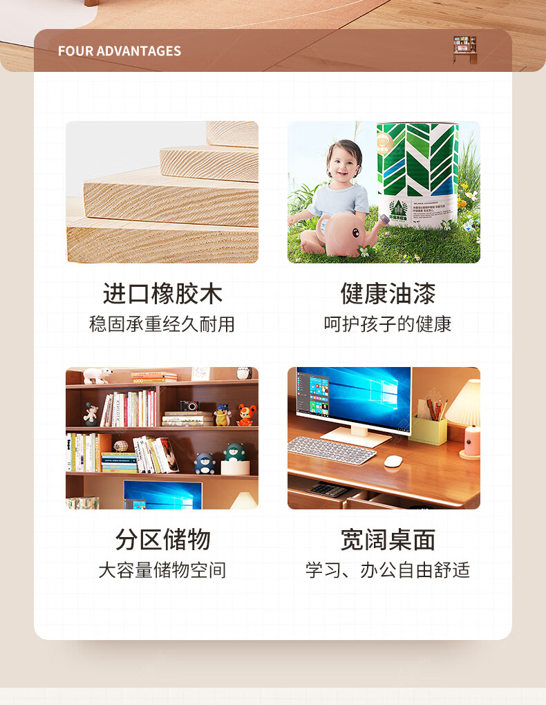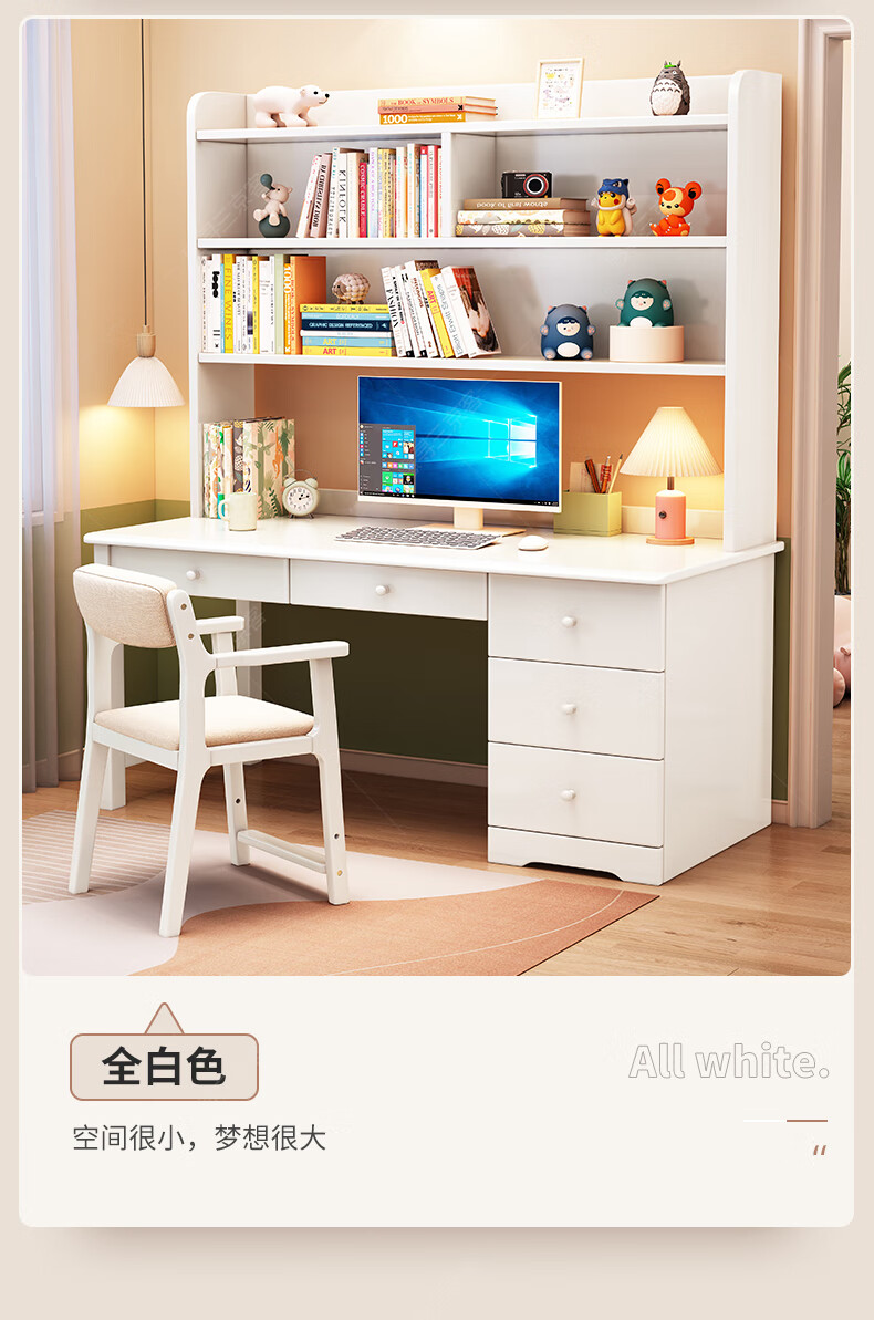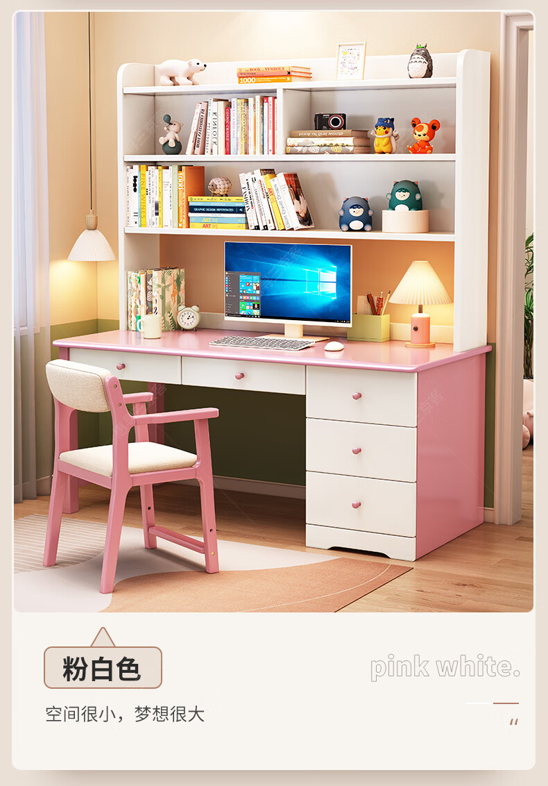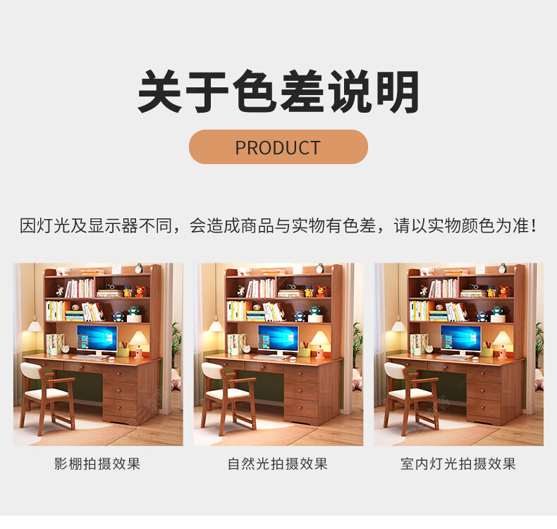 Huixun solid wood desk bookcase bookshelf combination computer desk bedroom home student writing desk multi-functional children's study table walnut color #desk + bookshelf 100cm*60cm*75cm total height 185cm