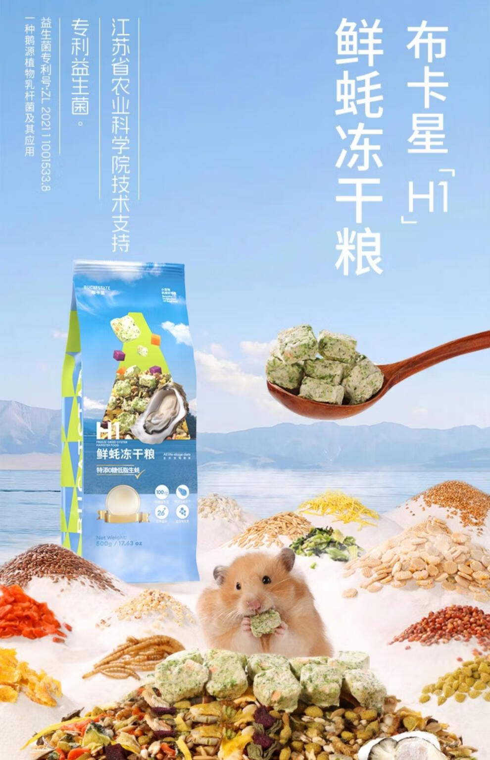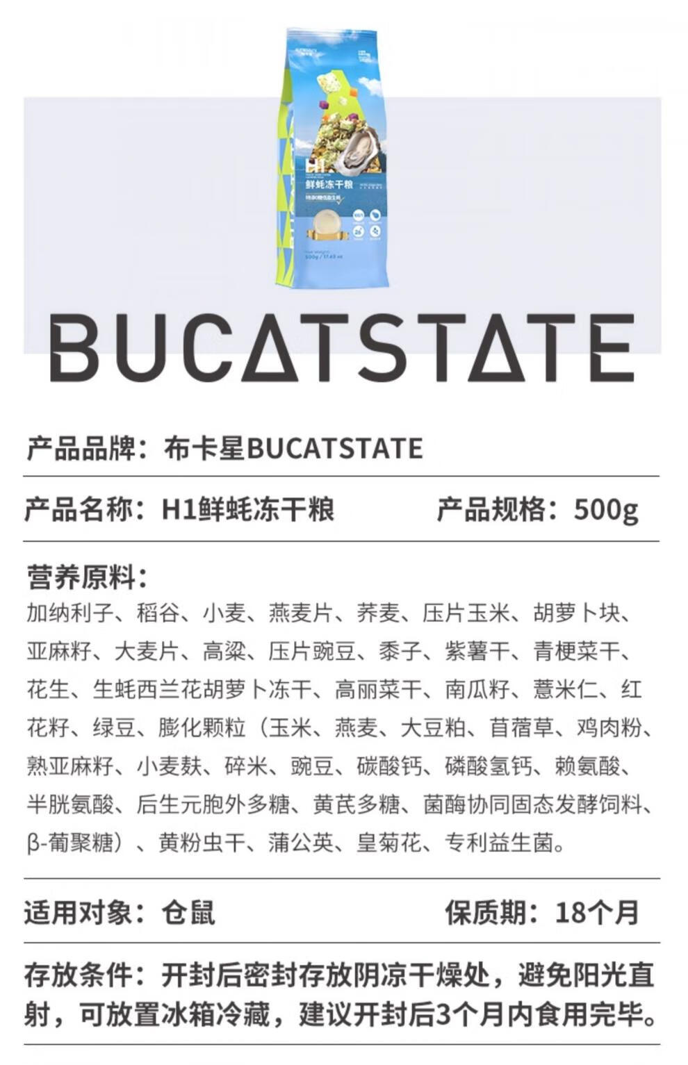 BUCATSTATE fresh oyster freeze-dried food hamster food staple food probiotic nutritional snacks feed golden bear special food probiotic fresh oyster full price freeze-dried food 500g free sealing clip and spoon