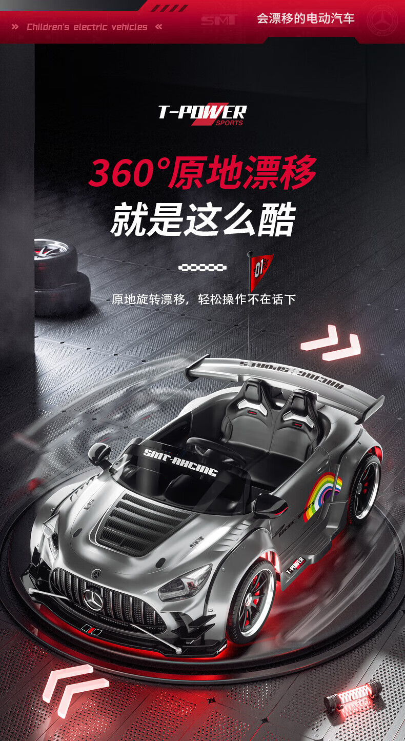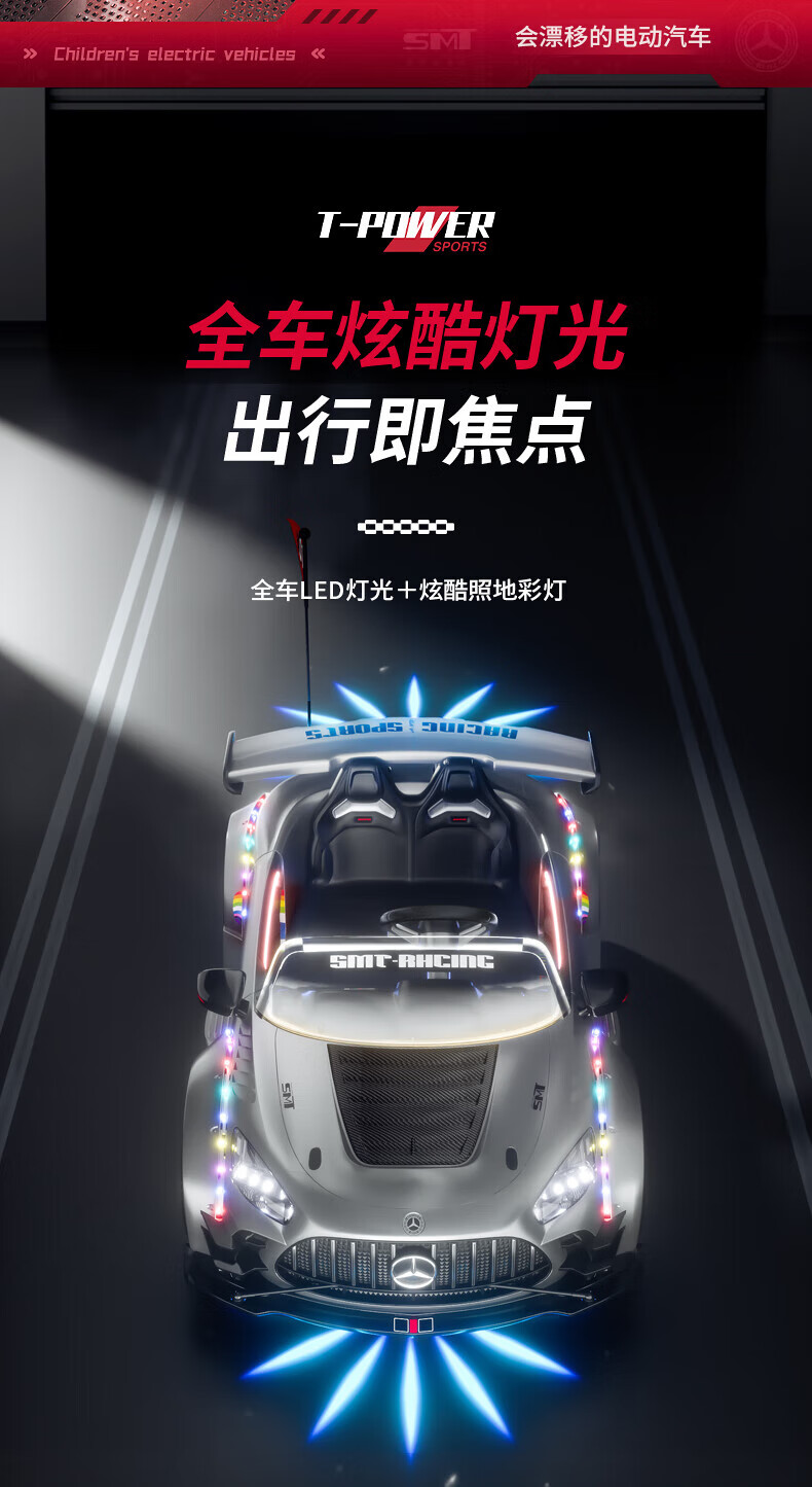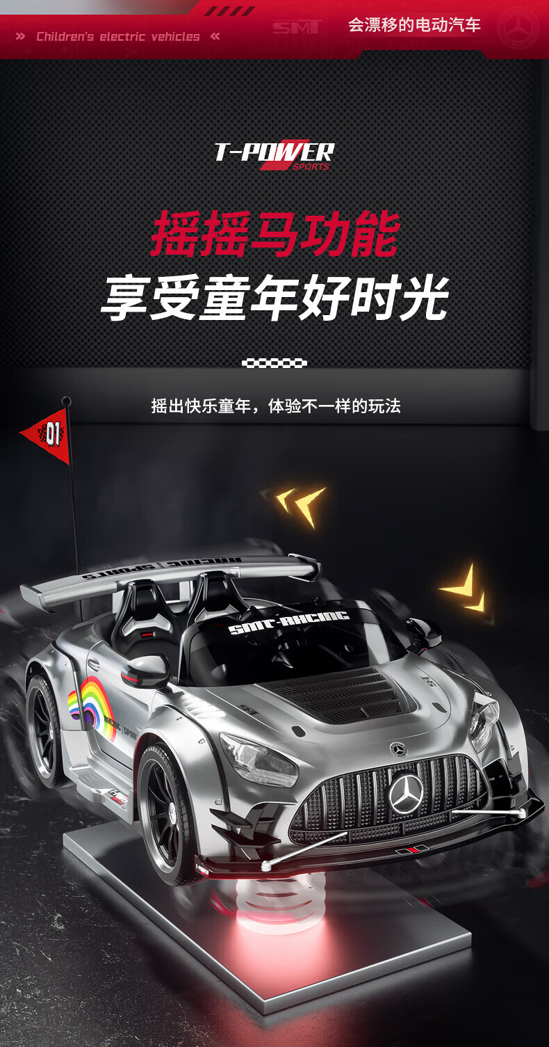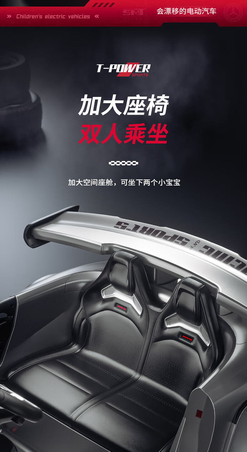 Samat Big G children's electric car can drift and sit, adult parent-child remote control toy car, birthday gift for boys and girls, gray, lifetime warranty, free high-quality helmet protector (battery free trade-in, mid-range swing model, four-wheel drive 550 motor 12v10, colorful light leather seat, foam soft wheels