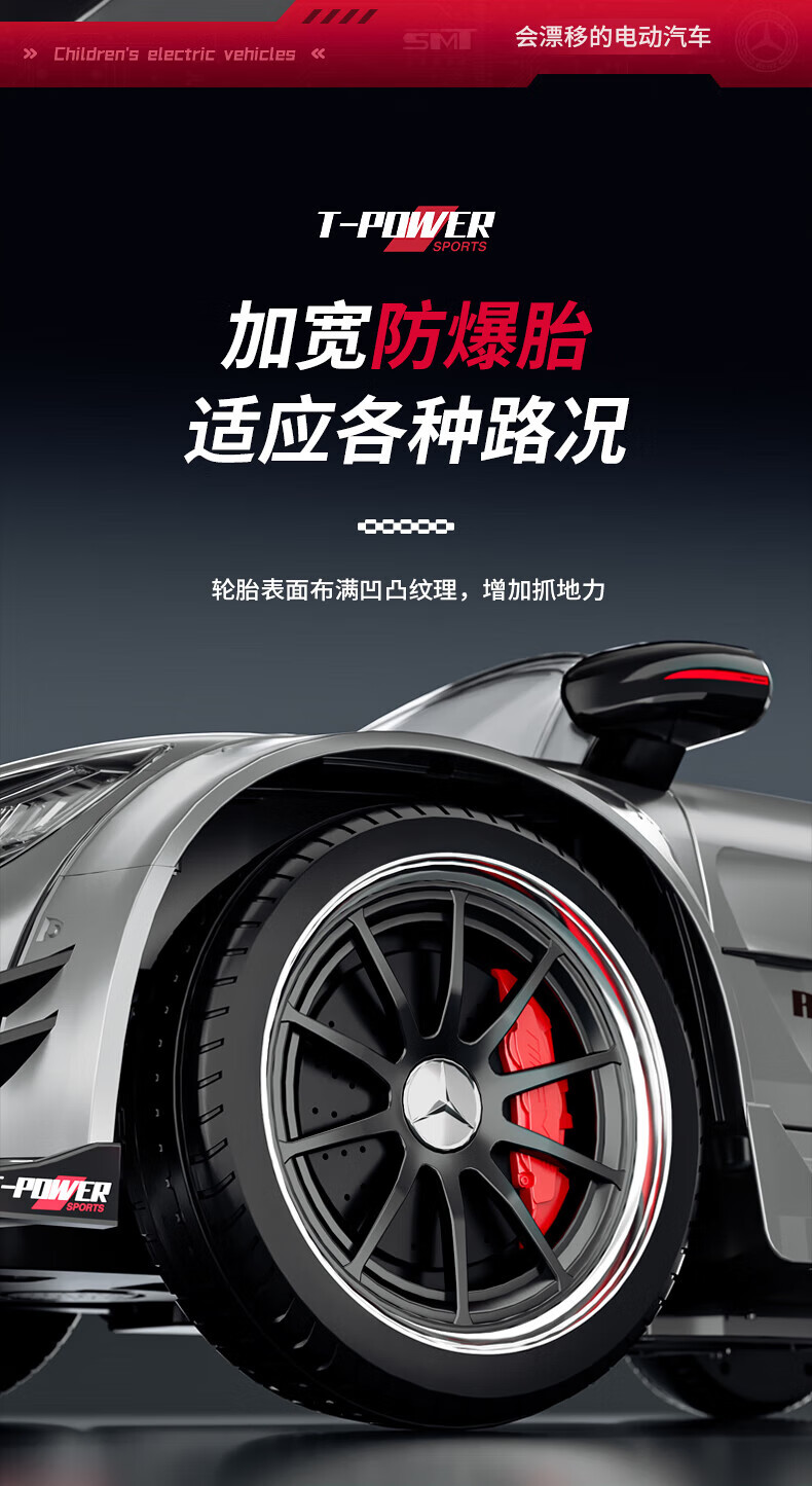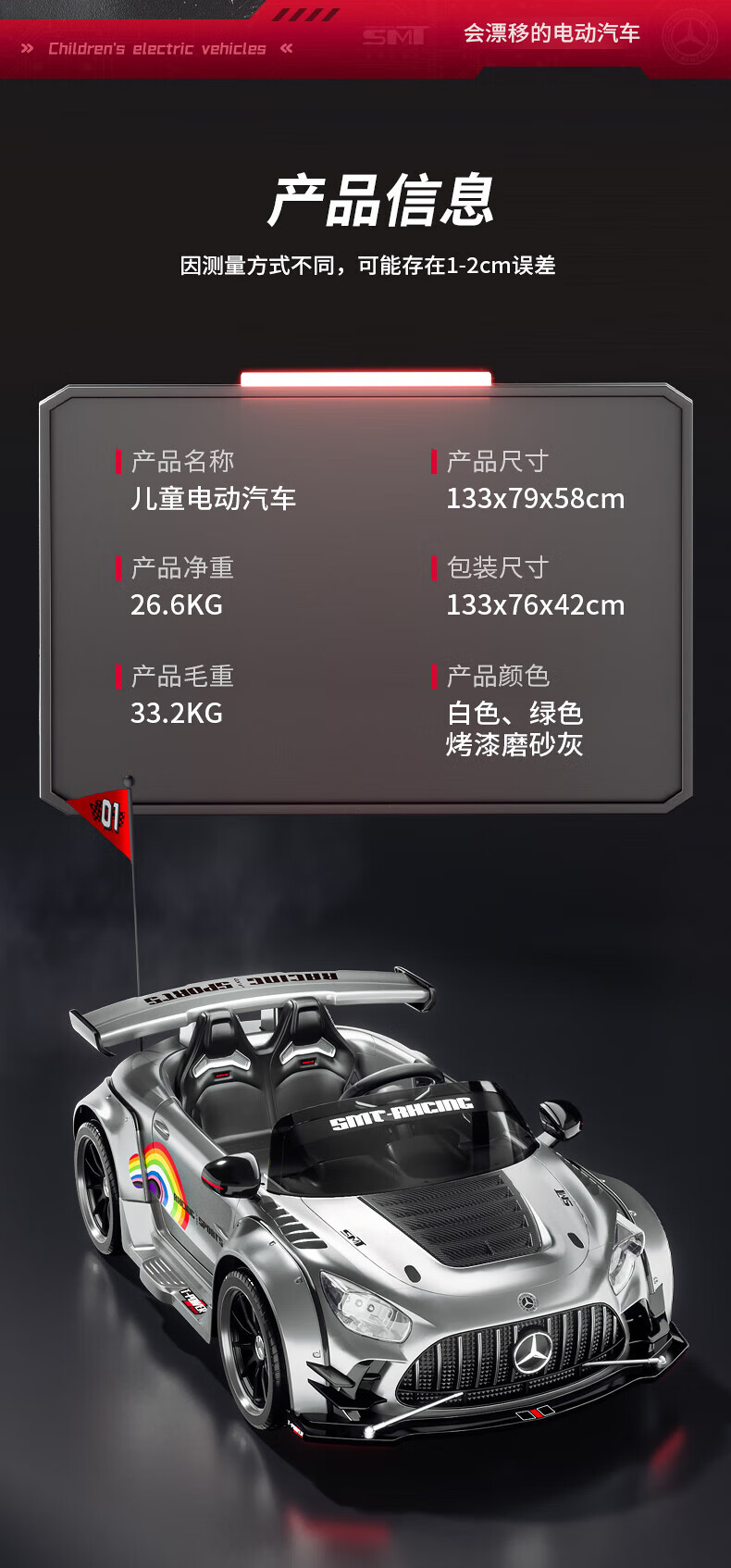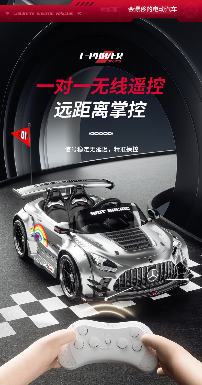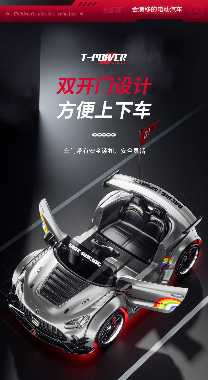 Samat Big G children's electric car can drift and sit, adult parent-child remote control toy car, birthday gift for boys and girls, gray, lifetime warranty, free high-quality helmet protector (battery free trade-in, mid-range swing model, four-wheel drive 550 motor 12v10, colorful light leather seat, foam soft wheels