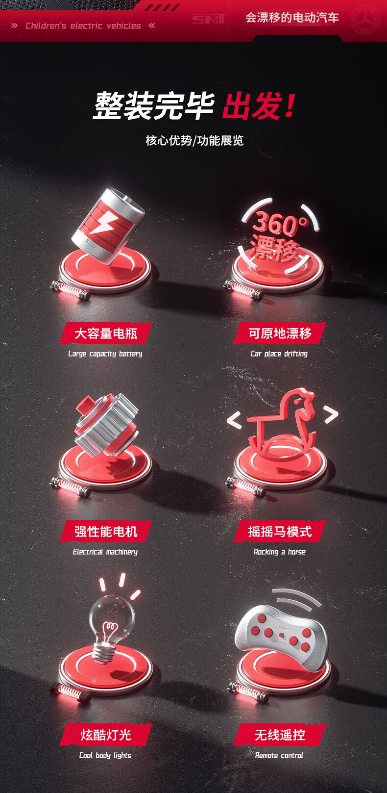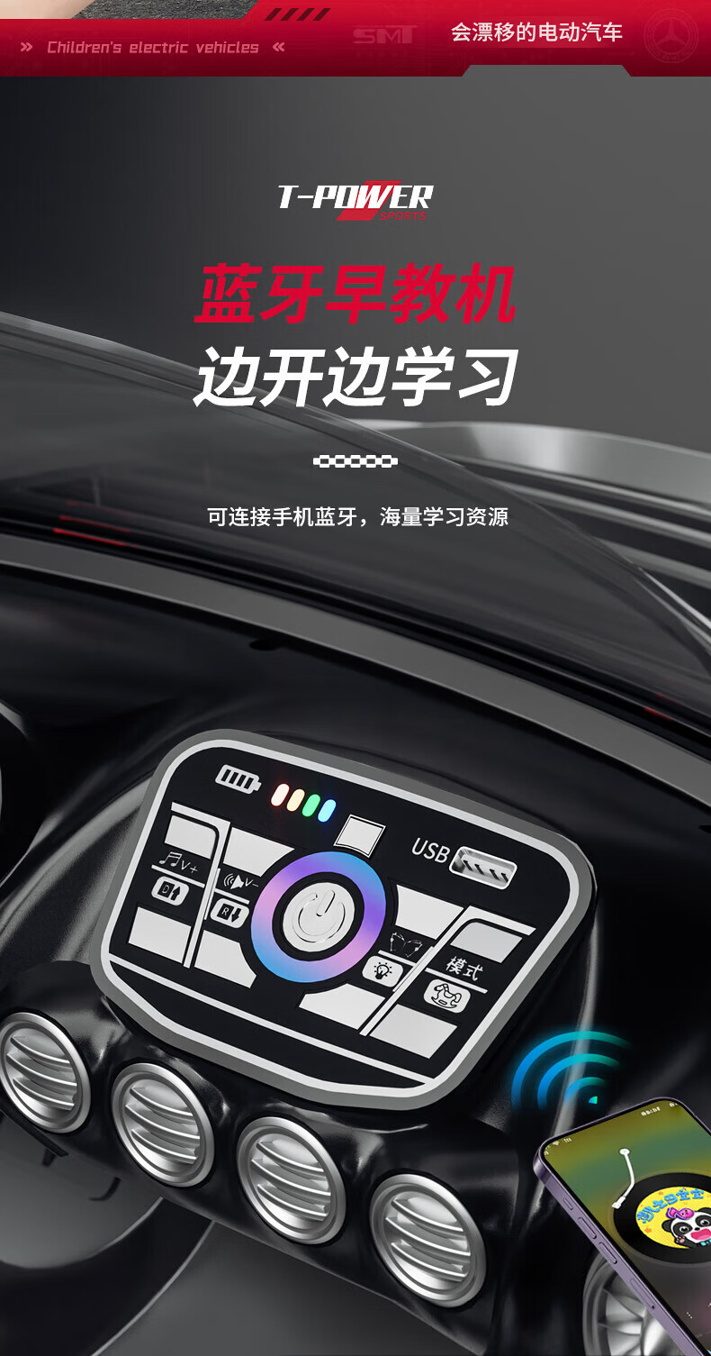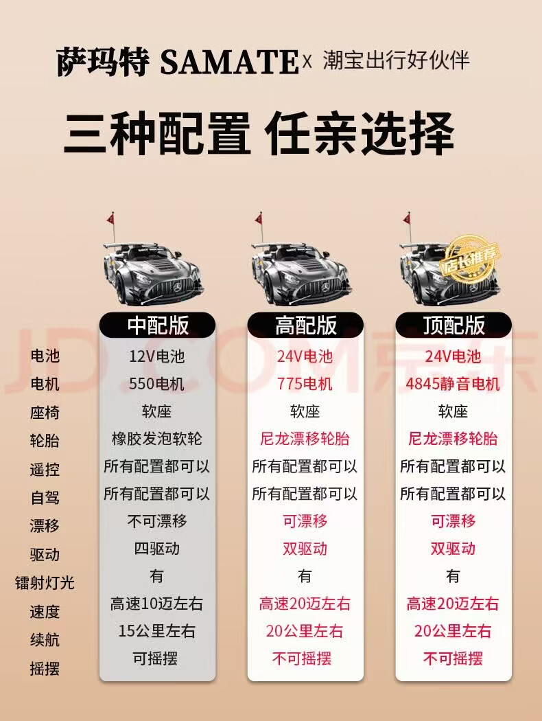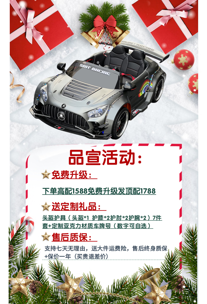 Samat Big G children's electric car can drift and sit, adult parent-child remote control toy car, birthday gift for boys and girls, gray, lifetime warranty, free high-quality helmet protector (battery free trade-in, mid-range swing model, four-wheel drive 550 motor 12v10, colorful light leather seat, foam soft wheels