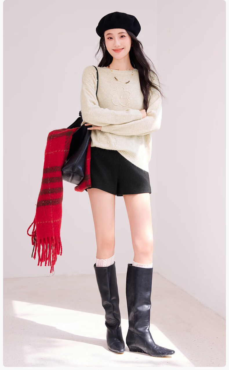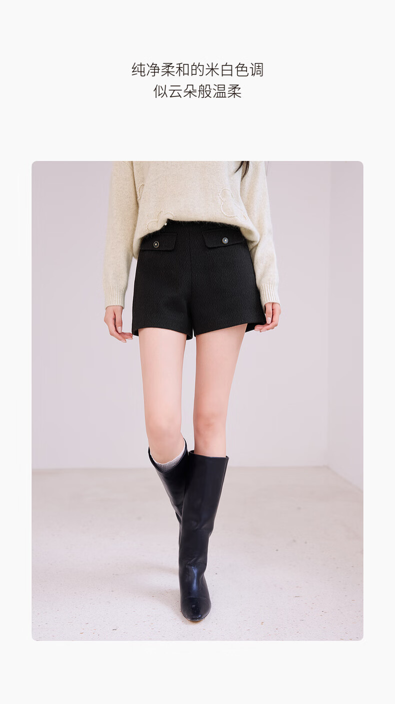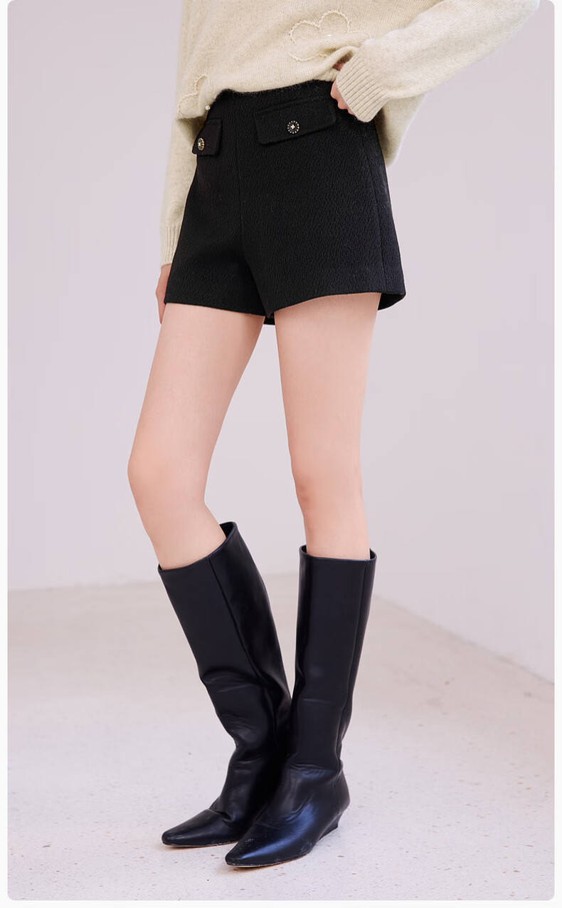 Xiangying black woolen suit shorts for women 2025 winter new textured a-line high-waist slim wide-leg hot pants black L 165/88A/110-125Jin Jin equals 0.5 kg