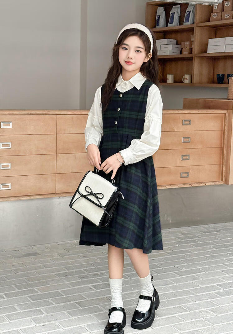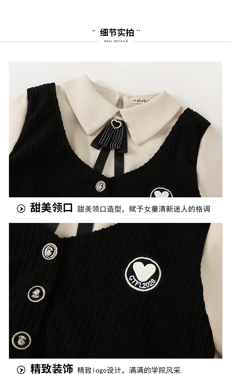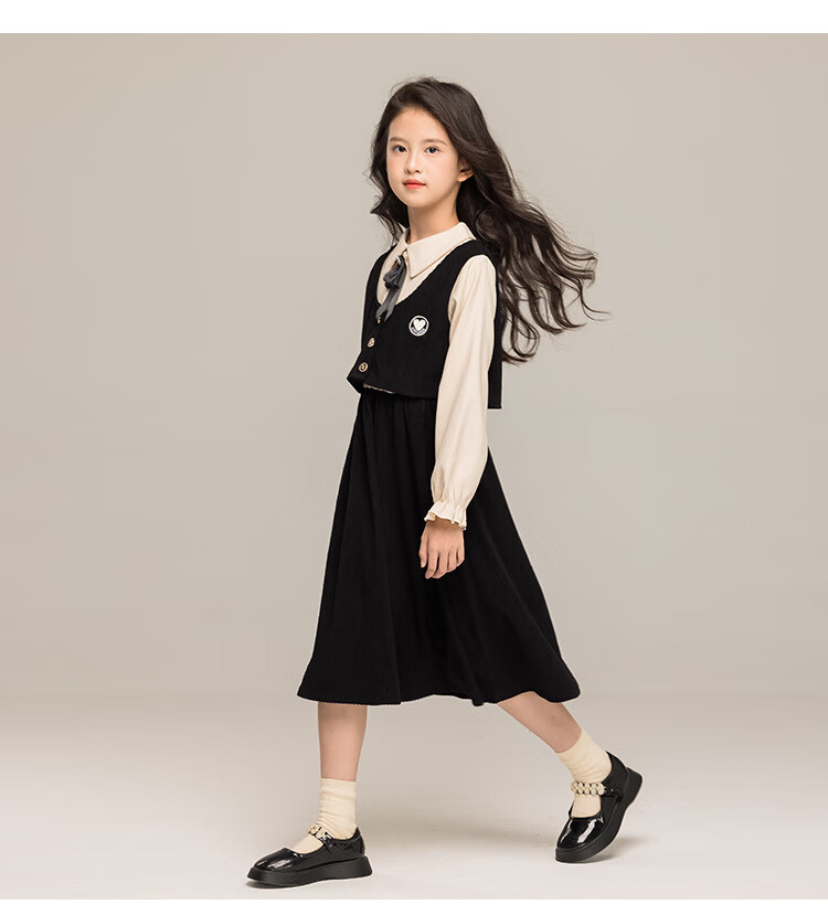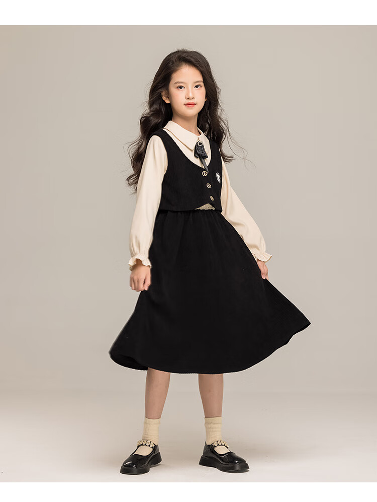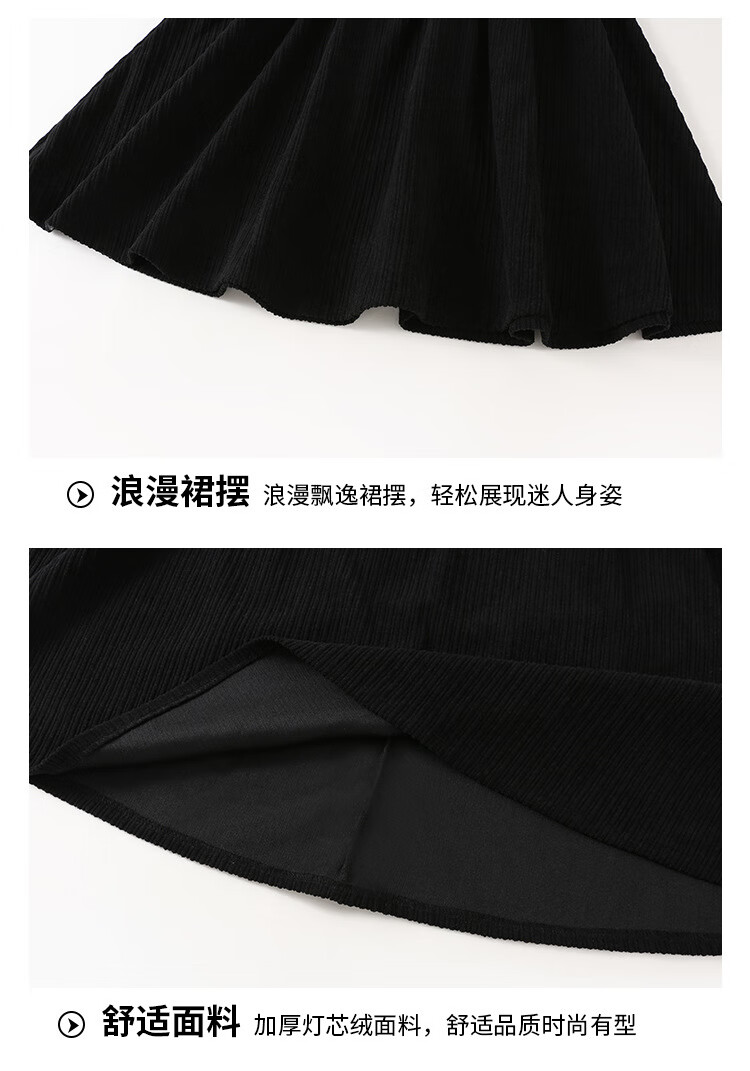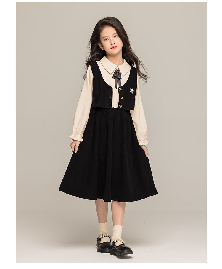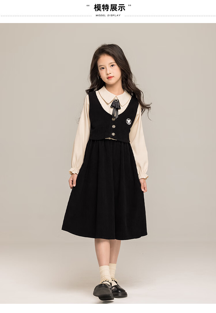 G.duck Girls Dress 2025 New Autumn College Style Korean Style Autumn and Winter Velvet Skirt Set for Big Girls Two-piece Set Black Velvet Dress 120 cm