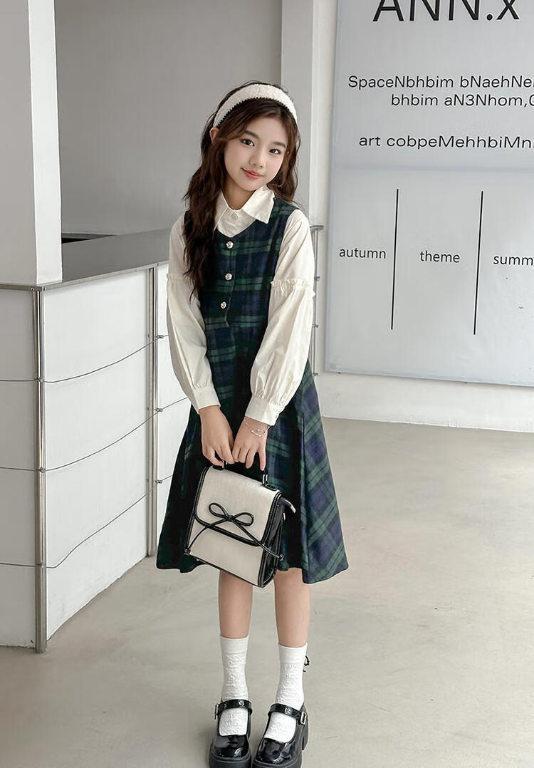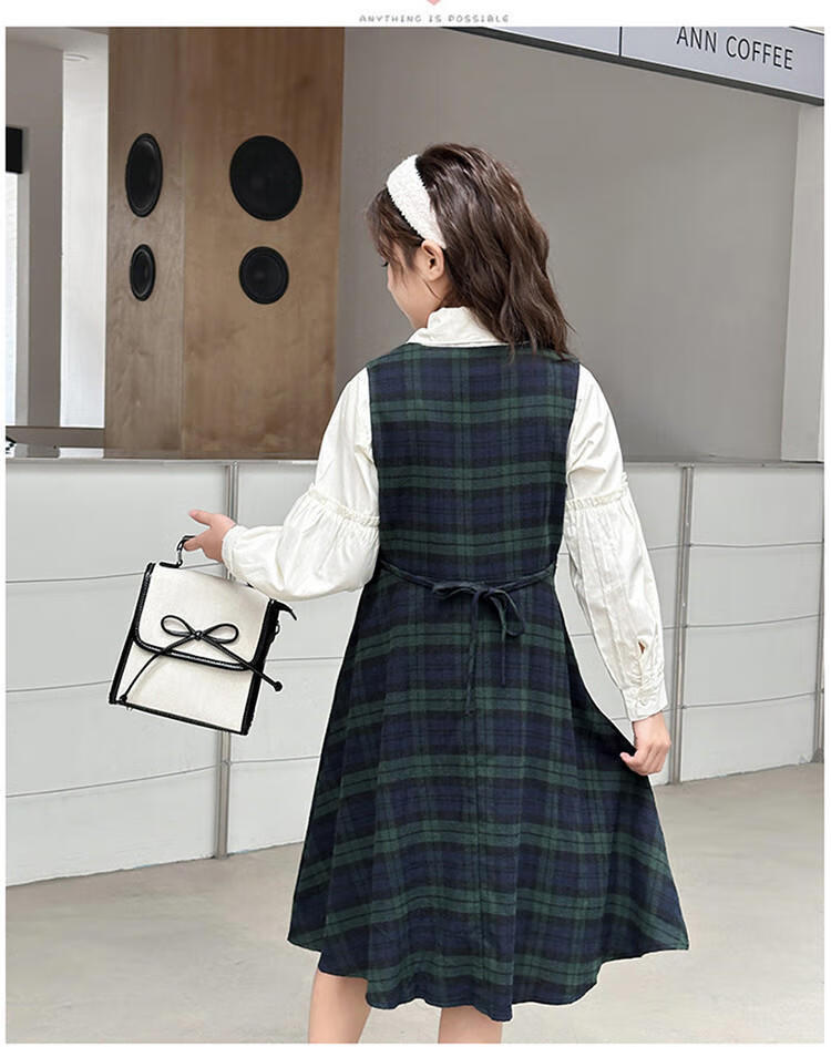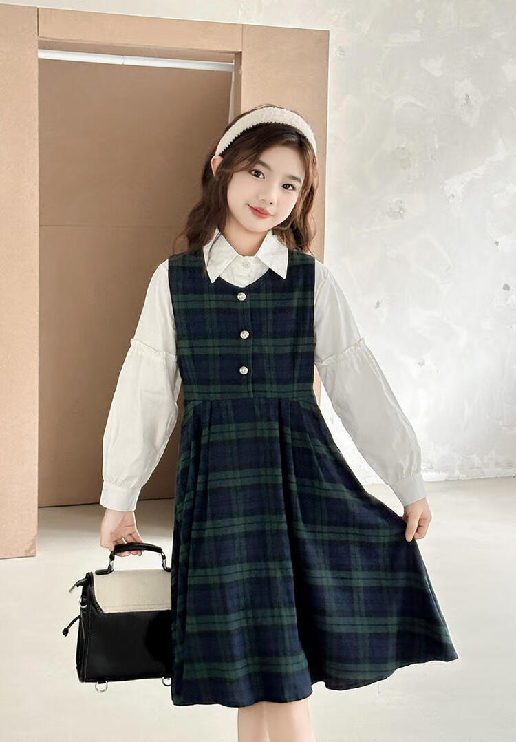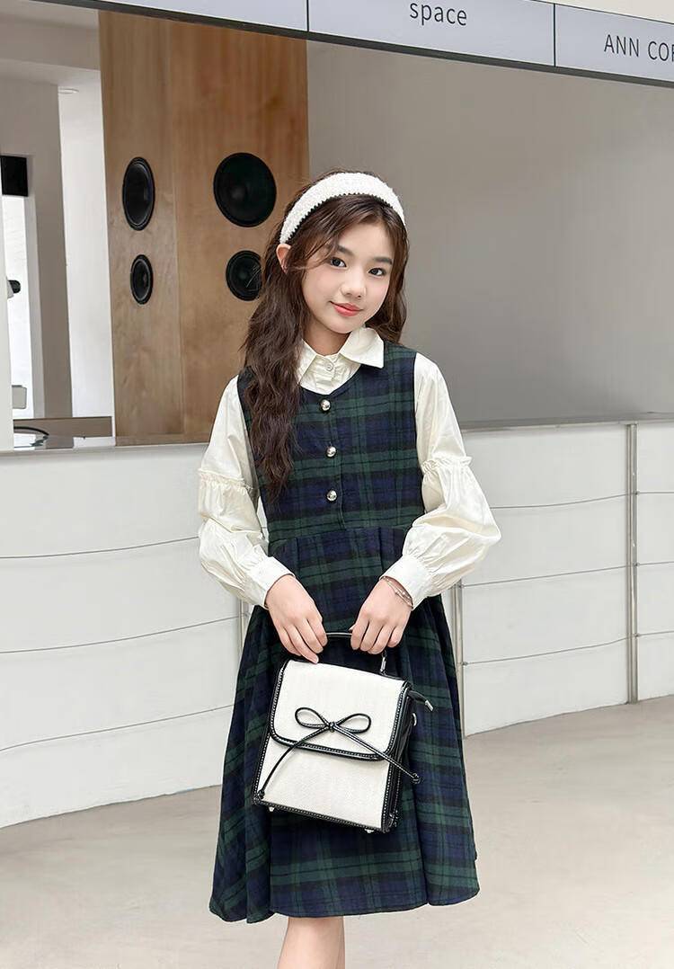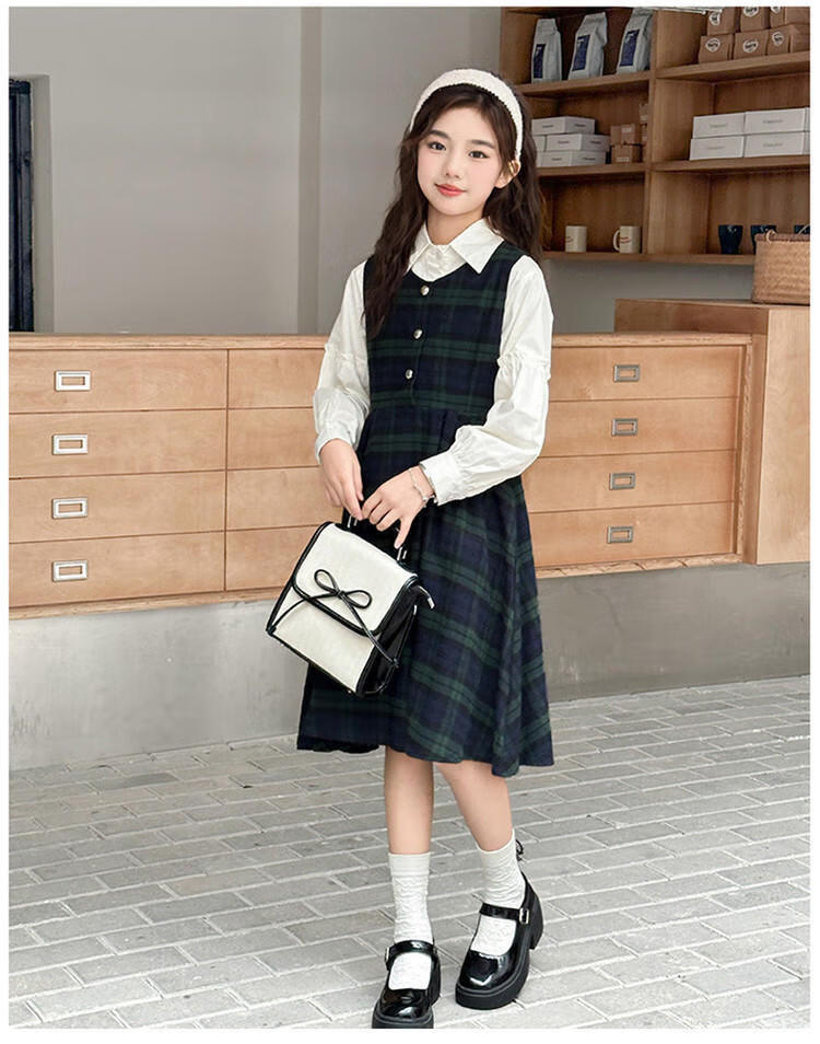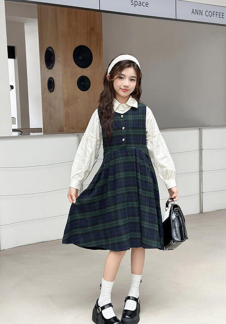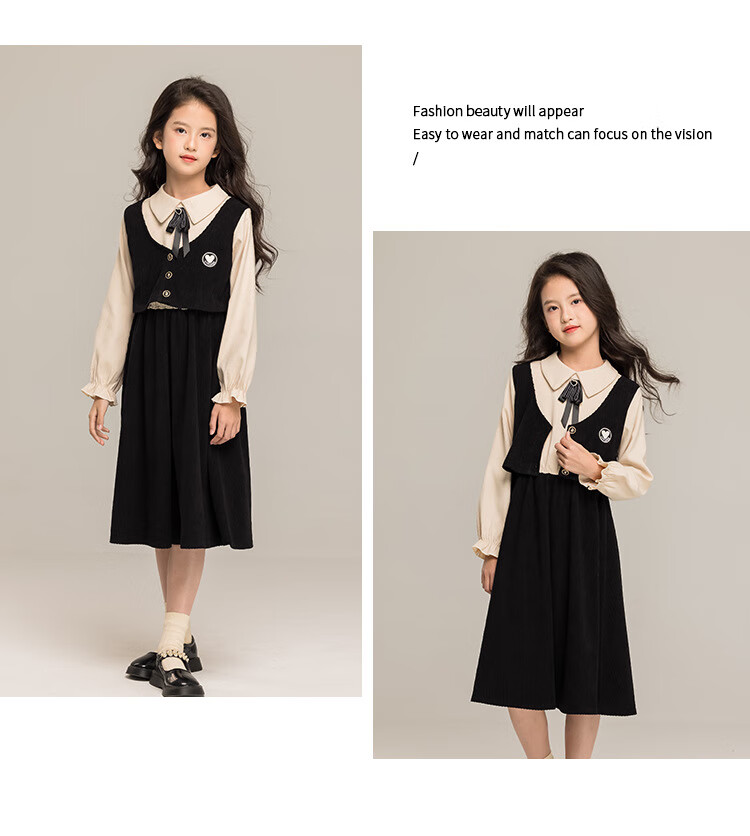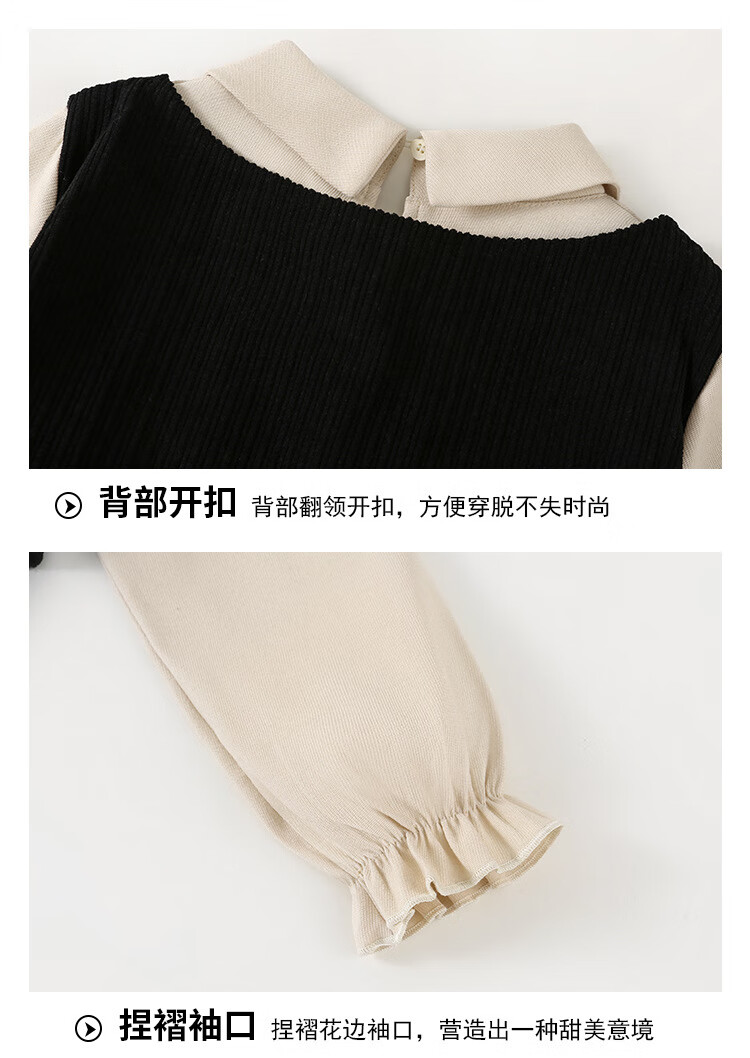 G.duck Girls Dress 2025 New Autumn College Style Korean Style Autumn and Winter Velvet Skirt Set for Big Girls Two-piece Set Black Velvet Dress 120 cm