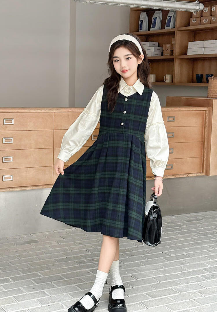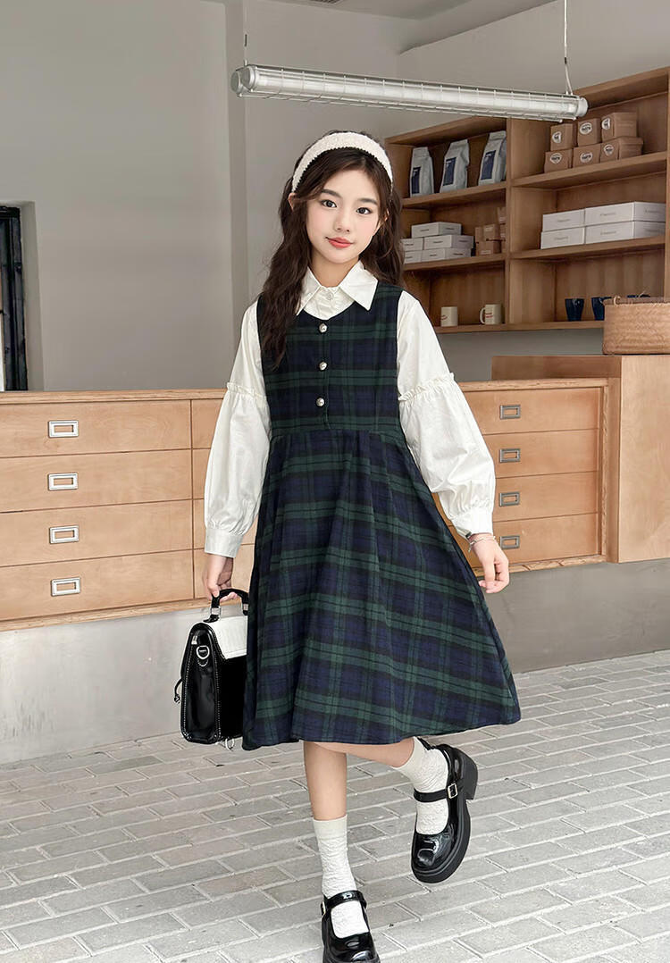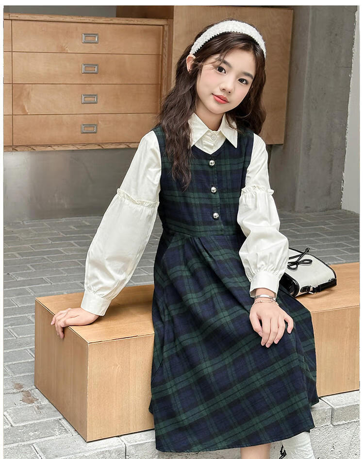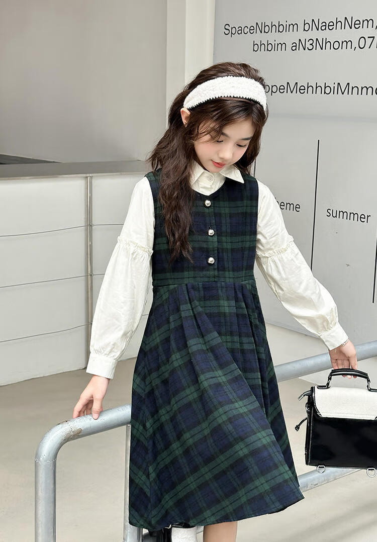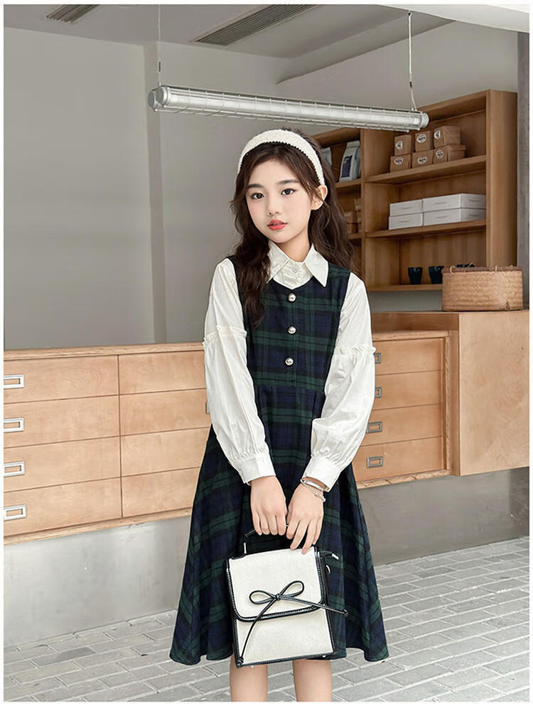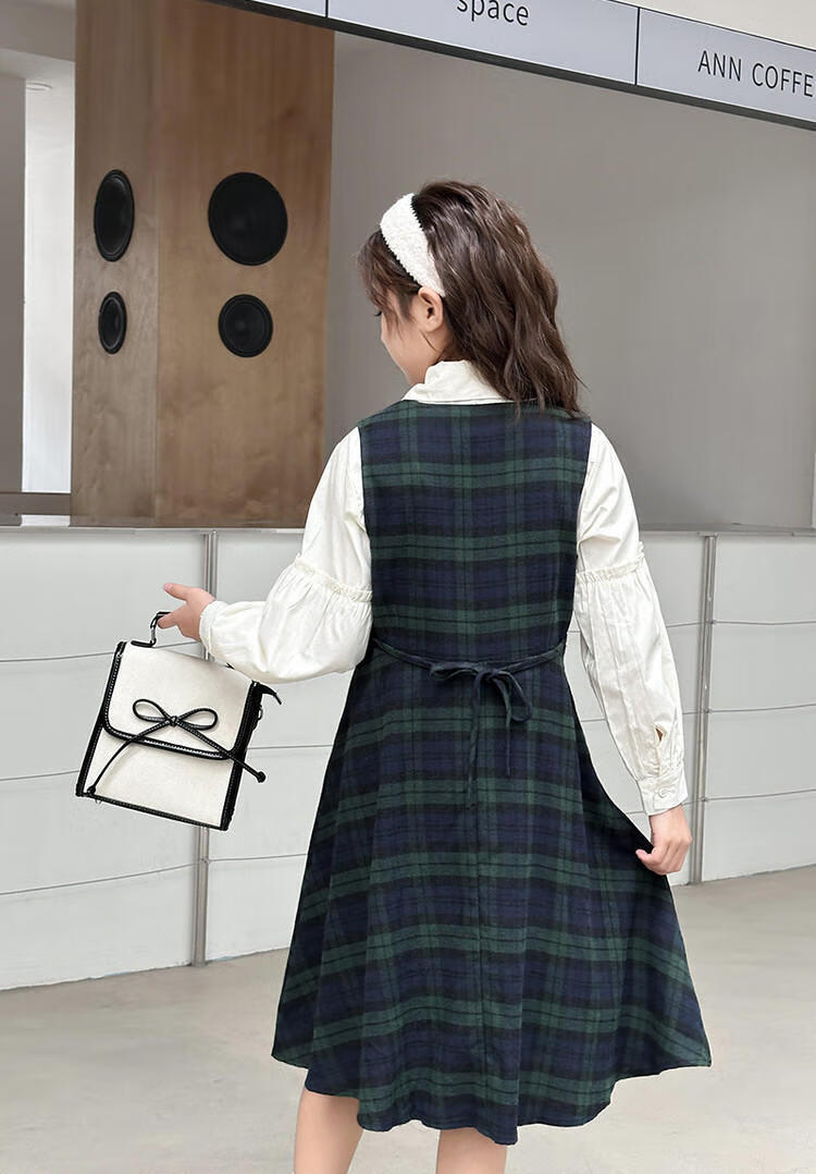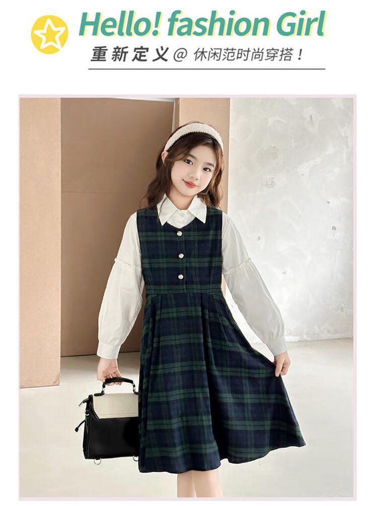G.duck Girls Dress 2025 New Autumn College Style Korean Style Autumn and Winter Velvet Skirt Set for Big Girls Two-piece Set Black Velvet Dress 120 cm