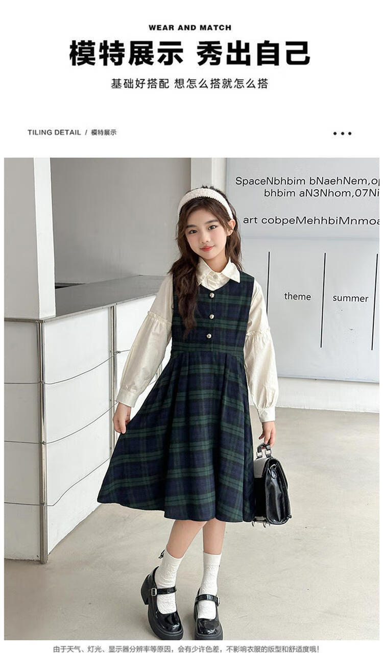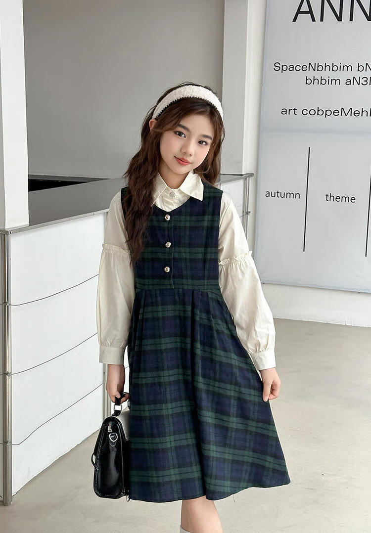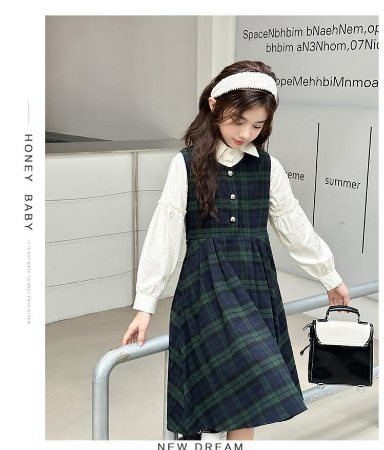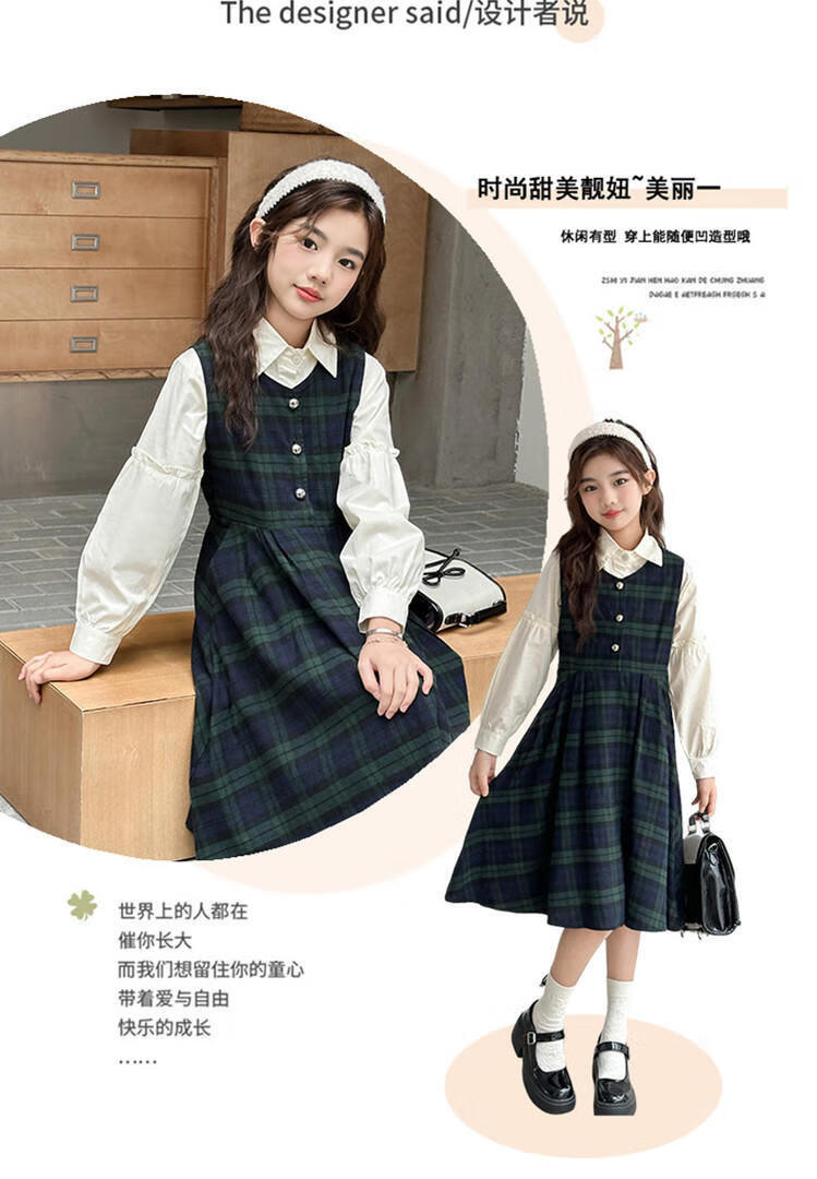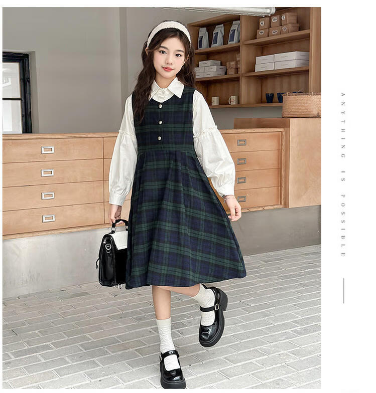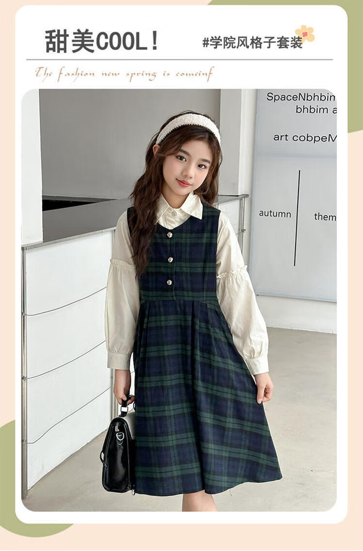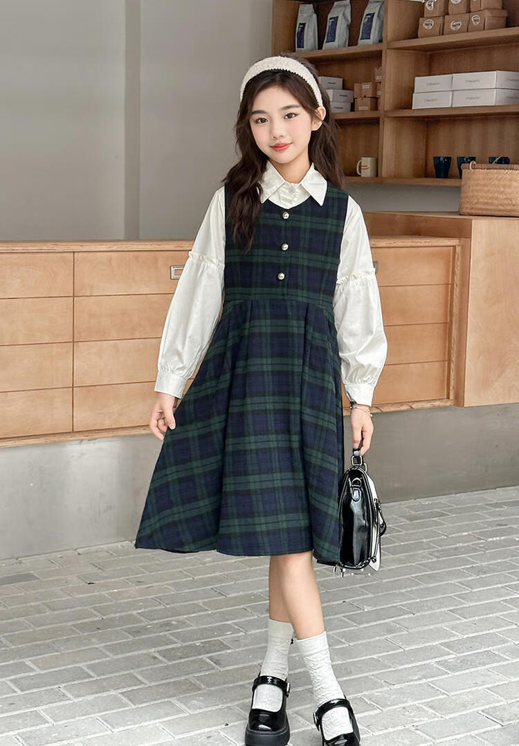 G.duck Girls Dress 2025 New Autumn College Style Korean Style Autumn and Winter Velvet Skirt Set for Big Girls Two-piece Set Black Velvet Dress 120 cm
