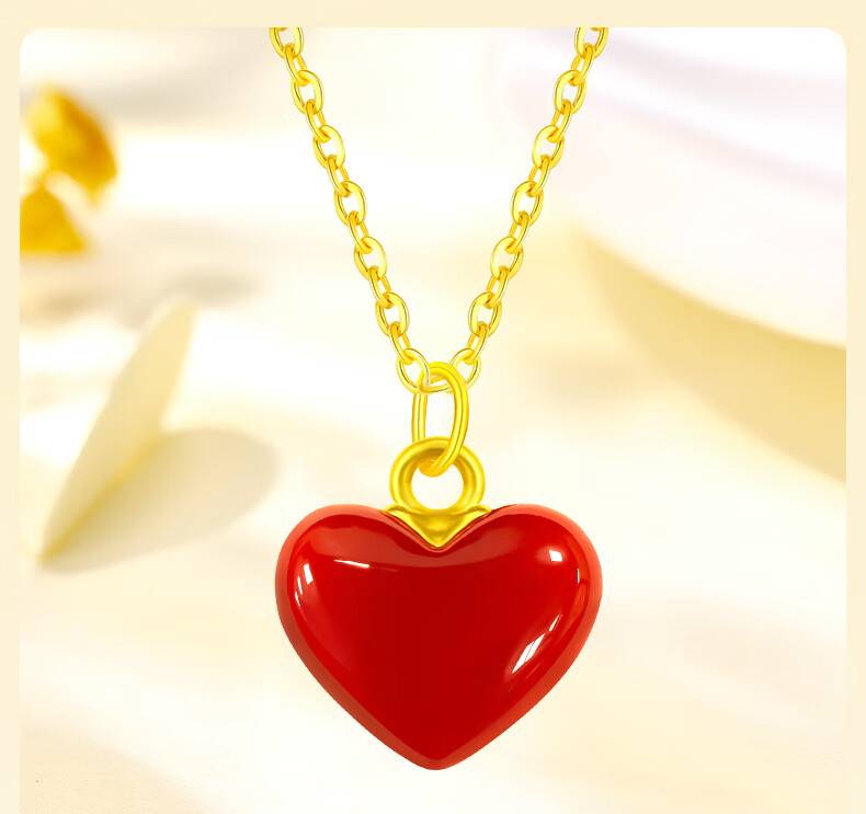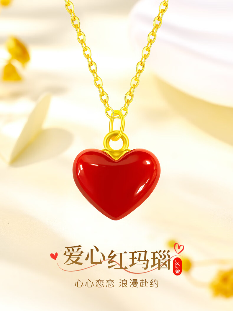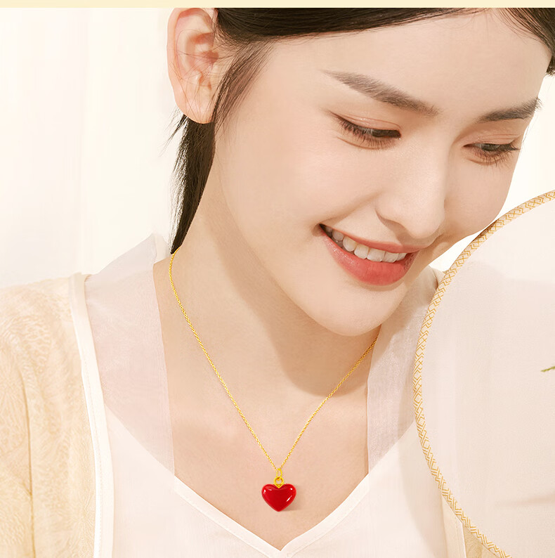 CHINA GOLD Love 18k Gold Necklace Color Gold Pendant Day Gift for Girlfriend and Wife Birthday Wedding Romantic and Practical 18k Small Love Agate Pendant-Free 925 Silver Chain