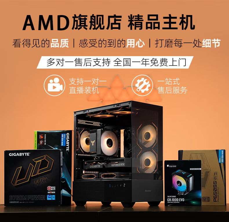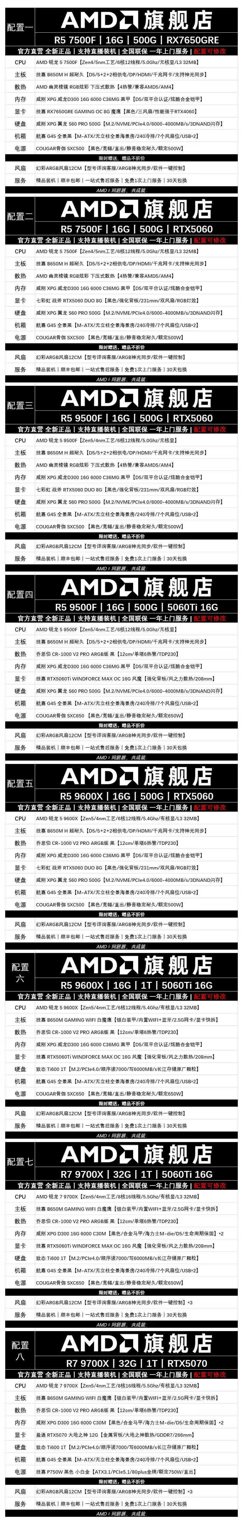 AMD Ryzen R5 9500F/7500F/9600X assembled computer RTX5070/9070GRE/RTX5060Ti/9060XT black diy game console 5 R5 9600X丨RTX5060