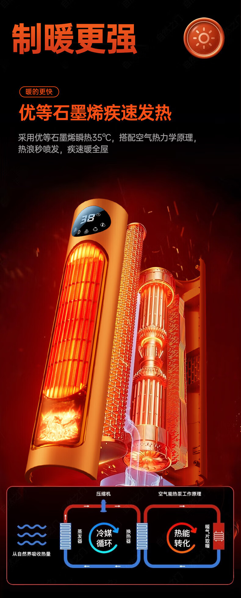 Shipu first-level energy saving graphene heater electric heater household electric heater large area 50 square meters whole house quick heating bathroom electric heater silent bedroom special mechanical flagship model 35 quick heating | 100 coverage | energy saving and low consumption first level energy saving and low consumption | large area whole house quick heating | silent and dull