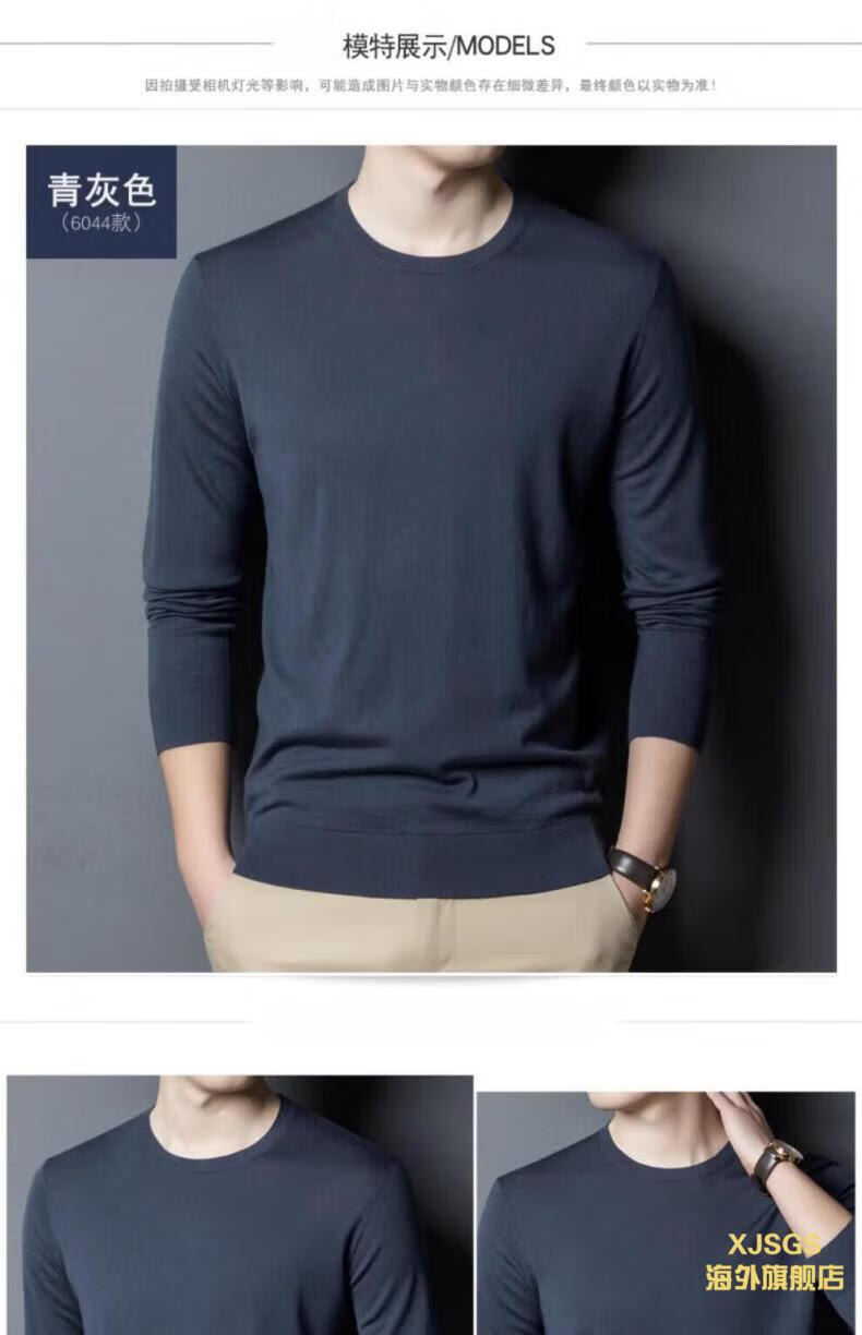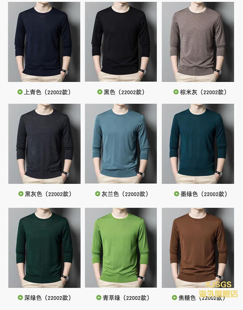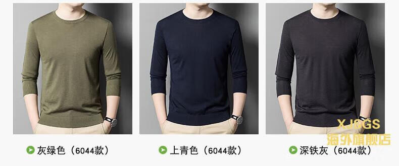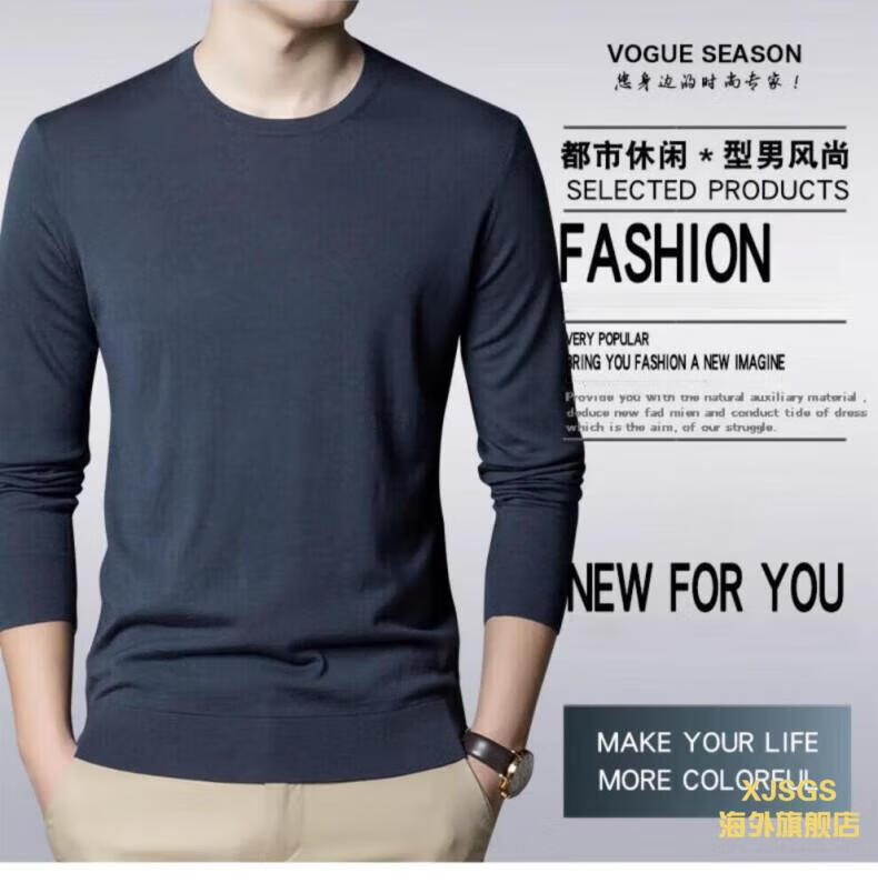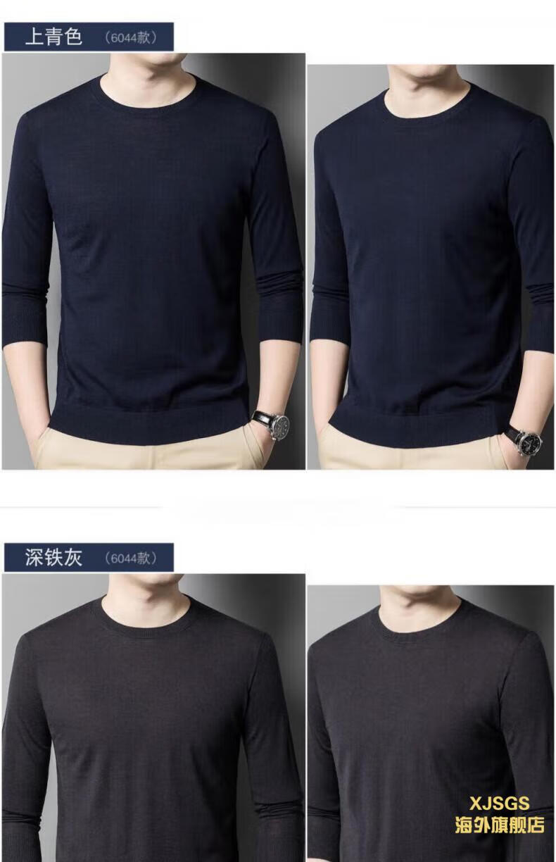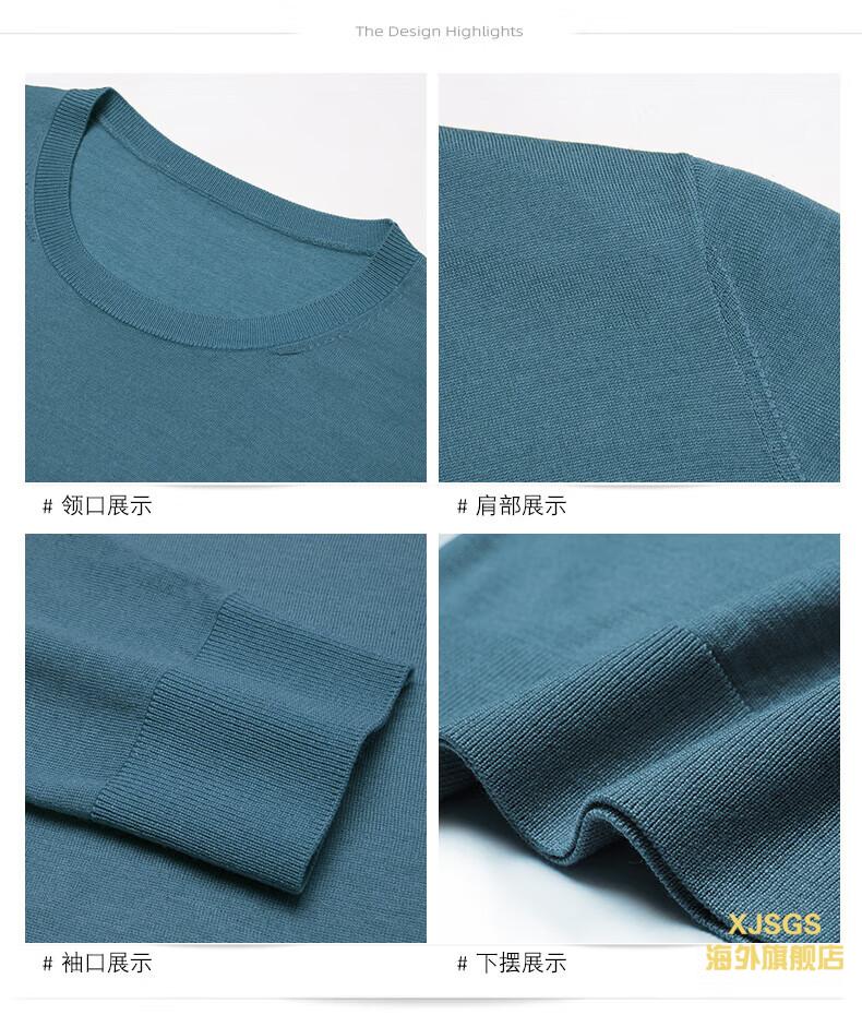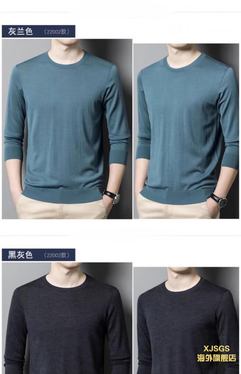 XJSGS international luxury high-end brand imitation pure woolen sweater men's 2025 autumn and winter round neck pullover sweater bottoming shirt high-end blue gray spot Suda 3XL 190