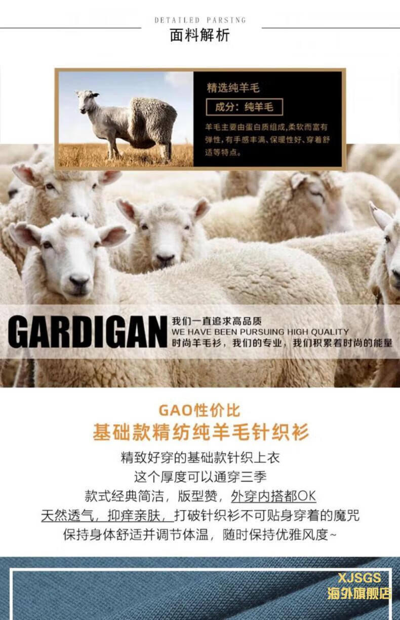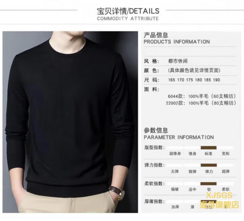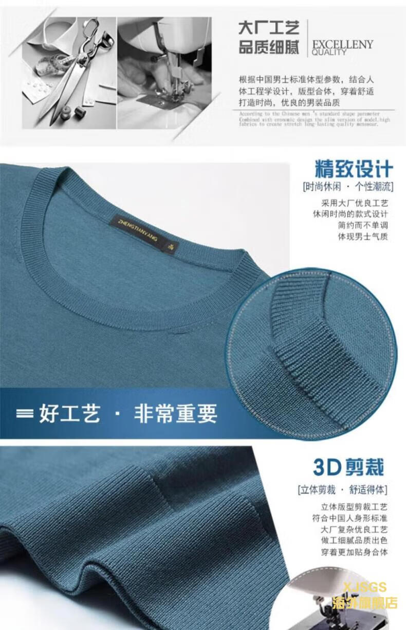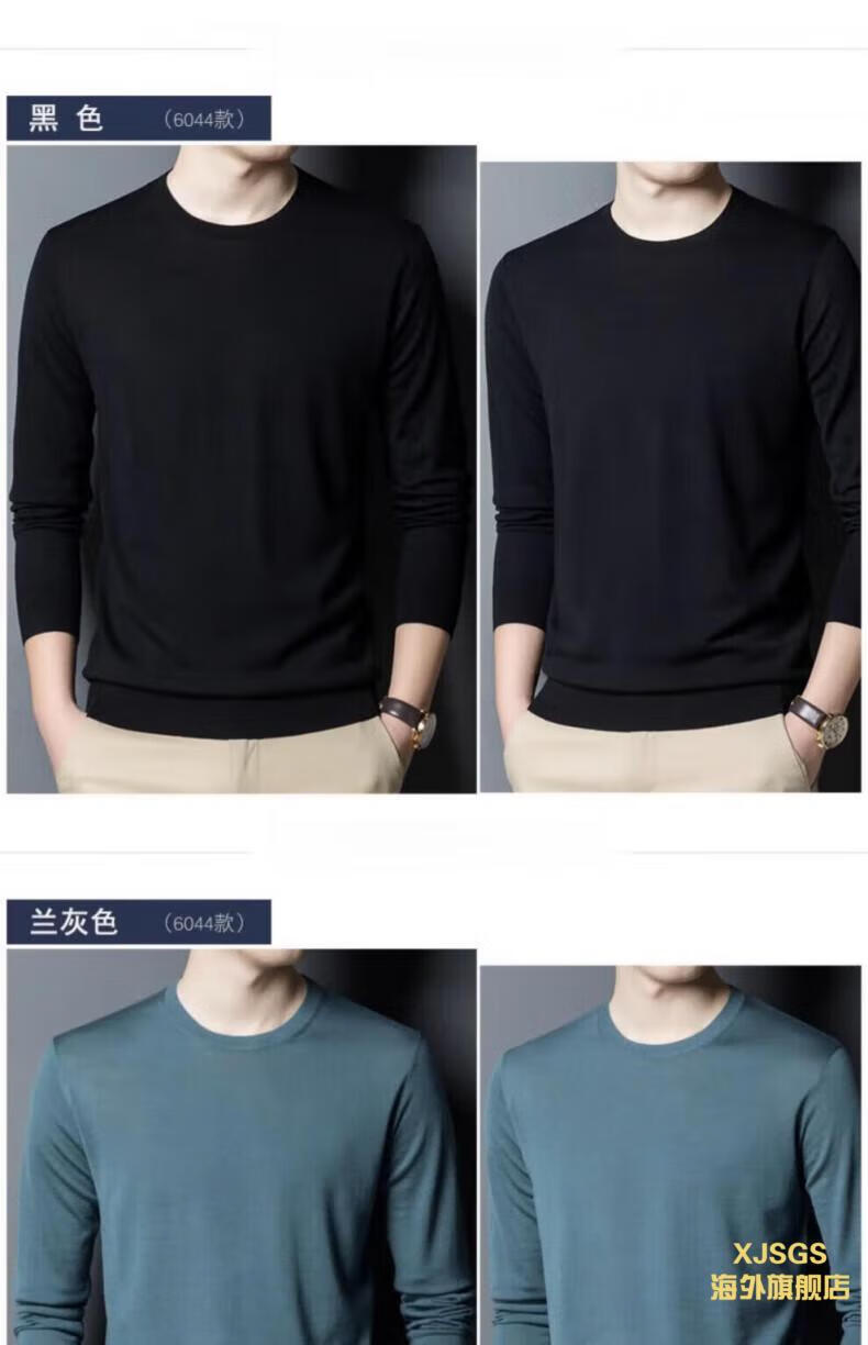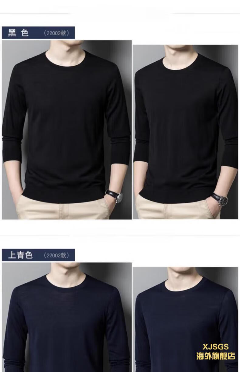 XJSGS international luxury high-end brand imitation pure woolen sweater men's 2025 autumn and winter round neck pullover sweater bottoming shirt high-end blue gray spot Suda 3XL 190