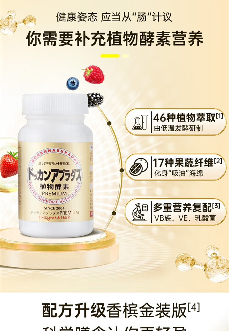 Healthy Shop (HERB) Japans nächtliches Obst- und Gemüse-Pflanzenenzym Champagne Gold verbessert die Kontrolle des Stuhlgangs und die Körperformung. DOKKAN Nighttime Plant Enzyme Champagne Gold Upgraded Edition 180 Kapseln