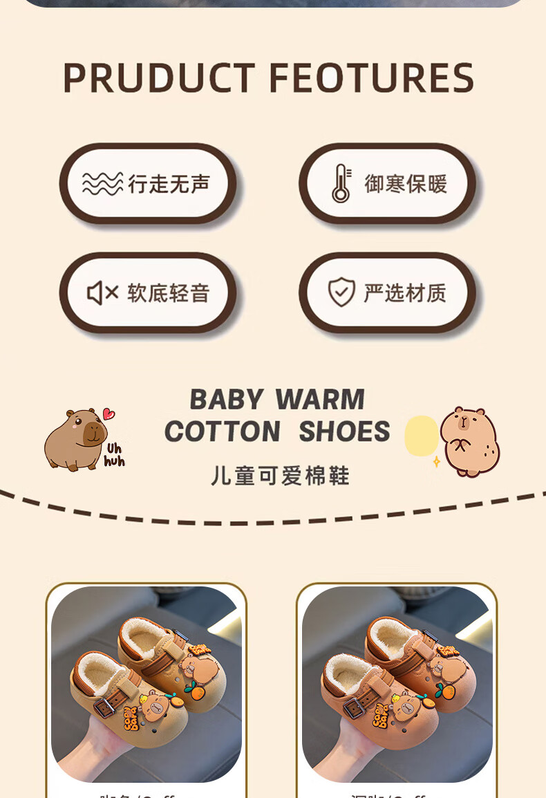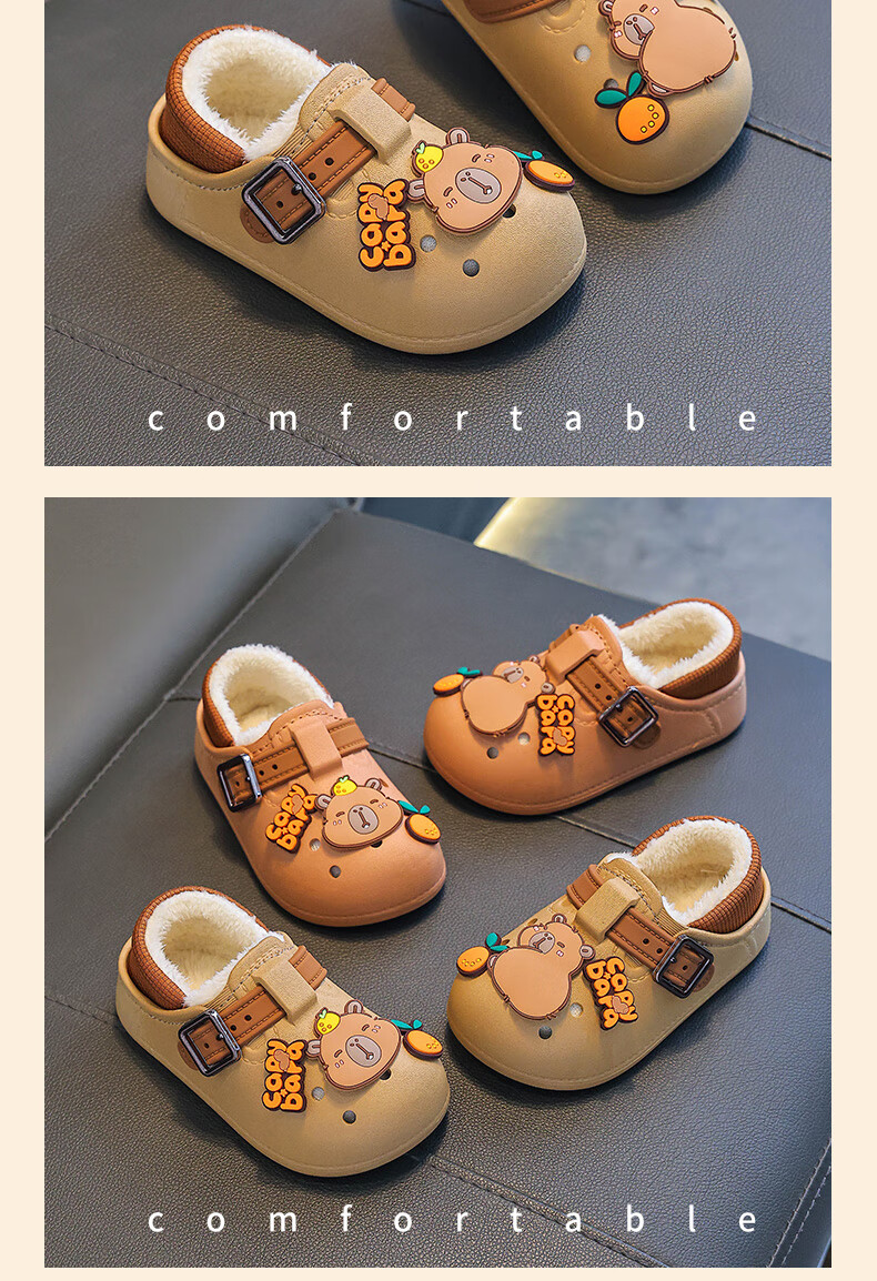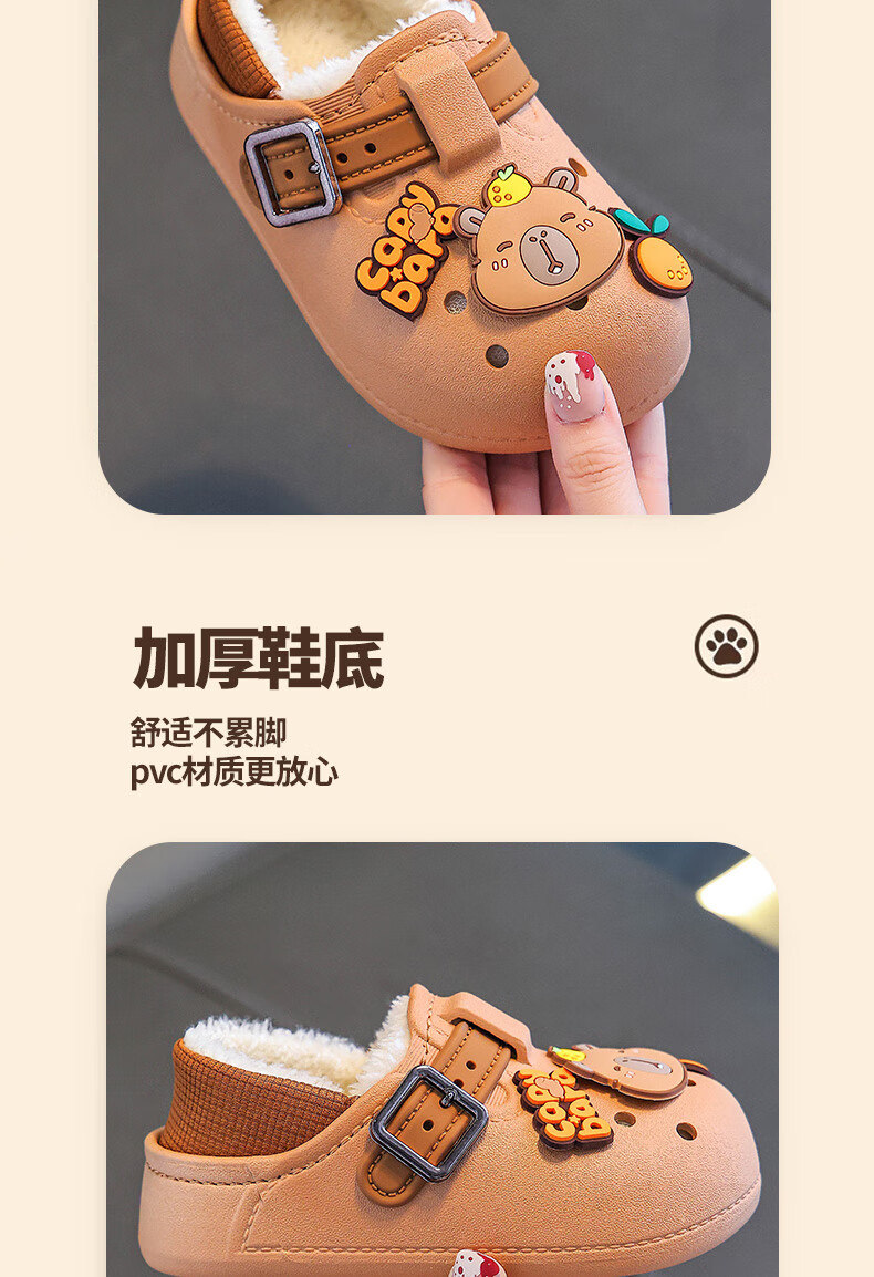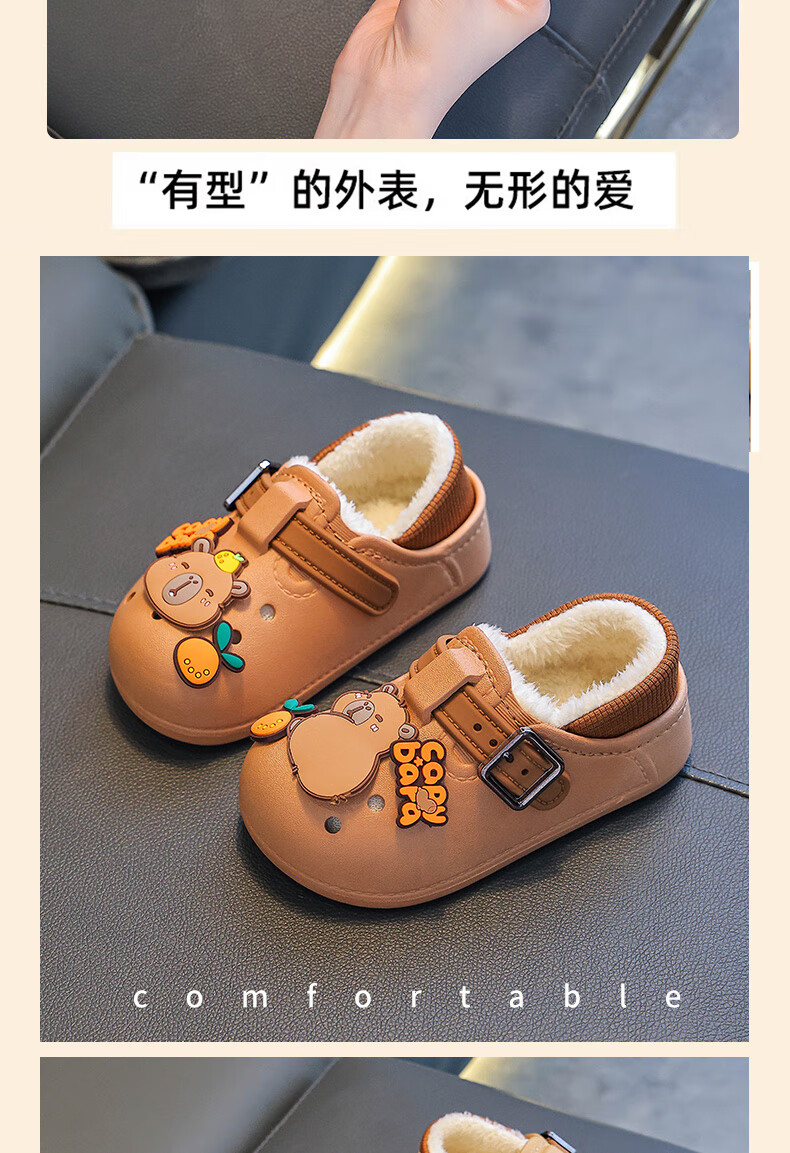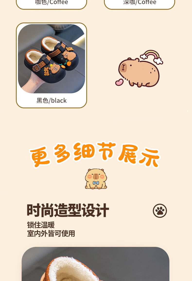 Boys' cotton shoes with heel included in winter, cute Capibara home indoor non-slip children's furry parent-child cotton shoes, upgraded version of environmentally friendly material black (heel included) 12 26/27 size (shoe inner length 16CM, suitable for feet 15