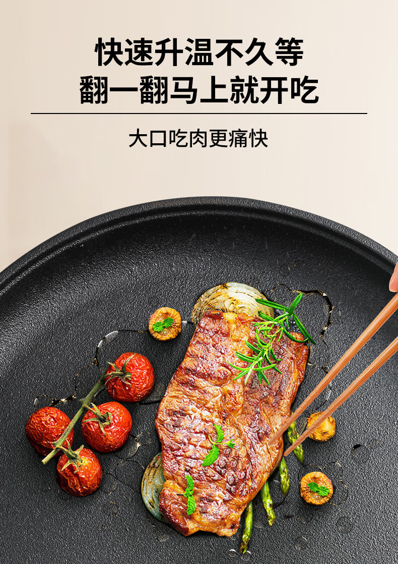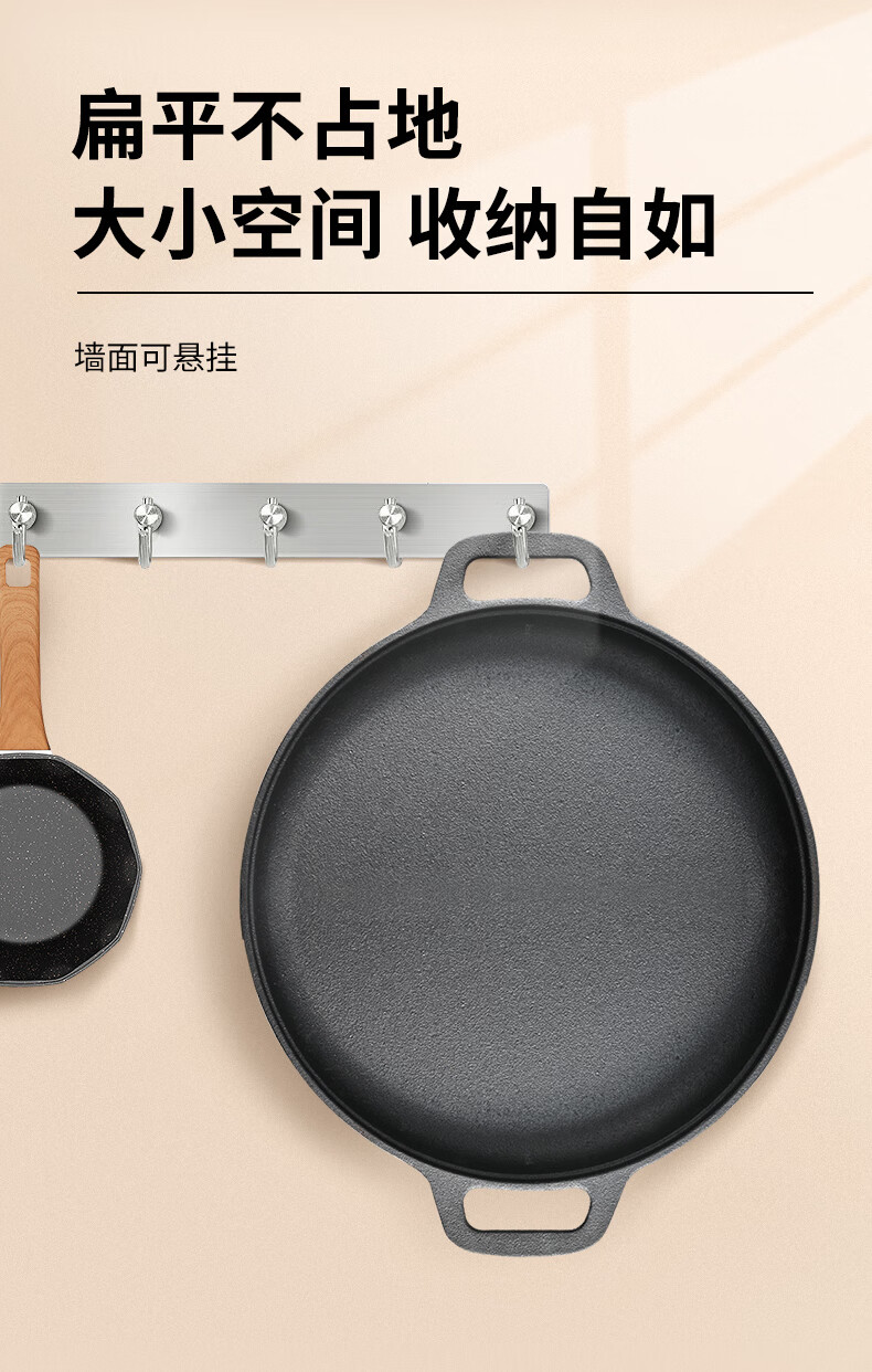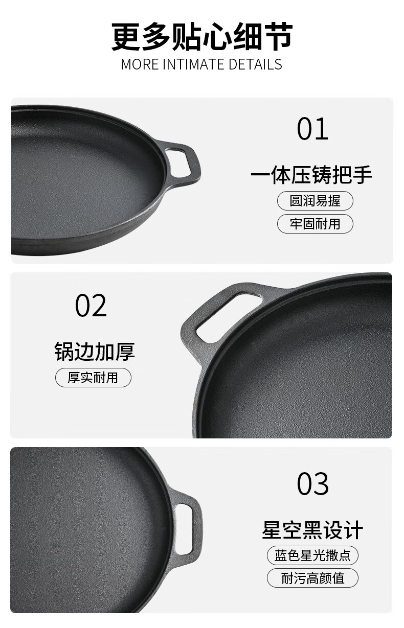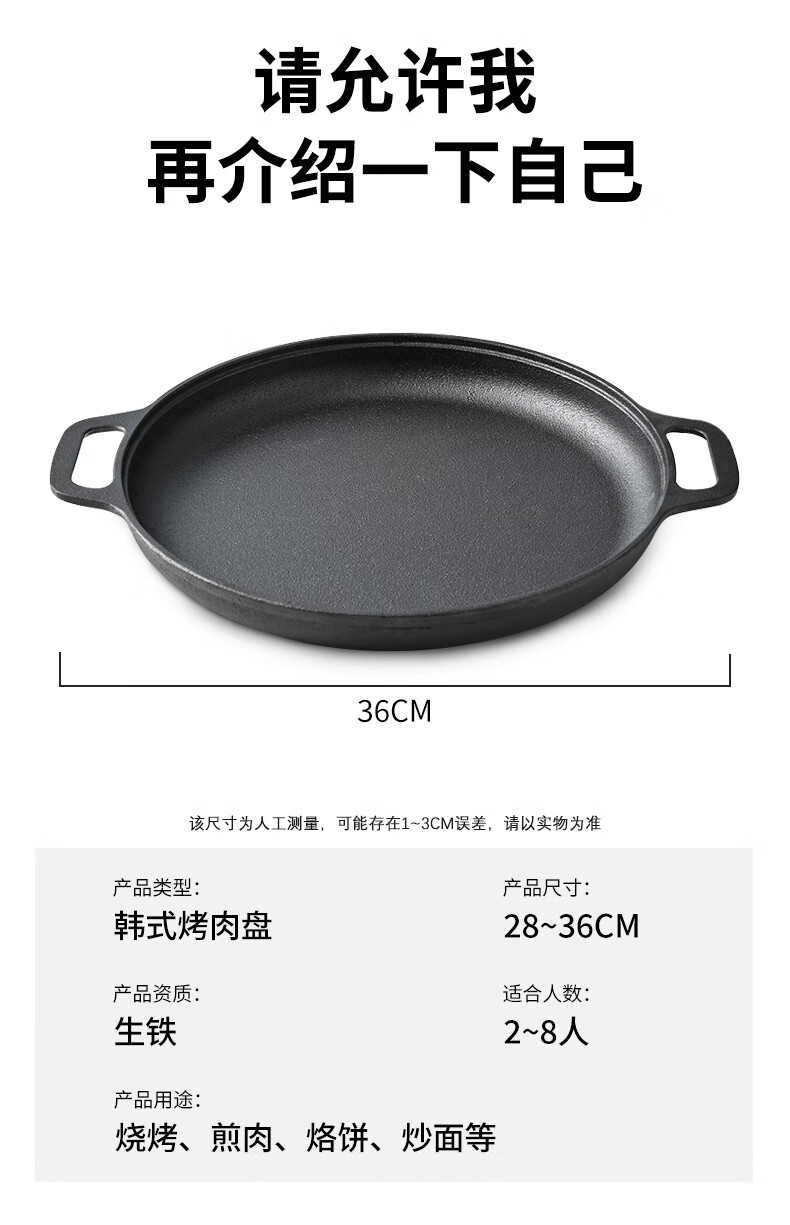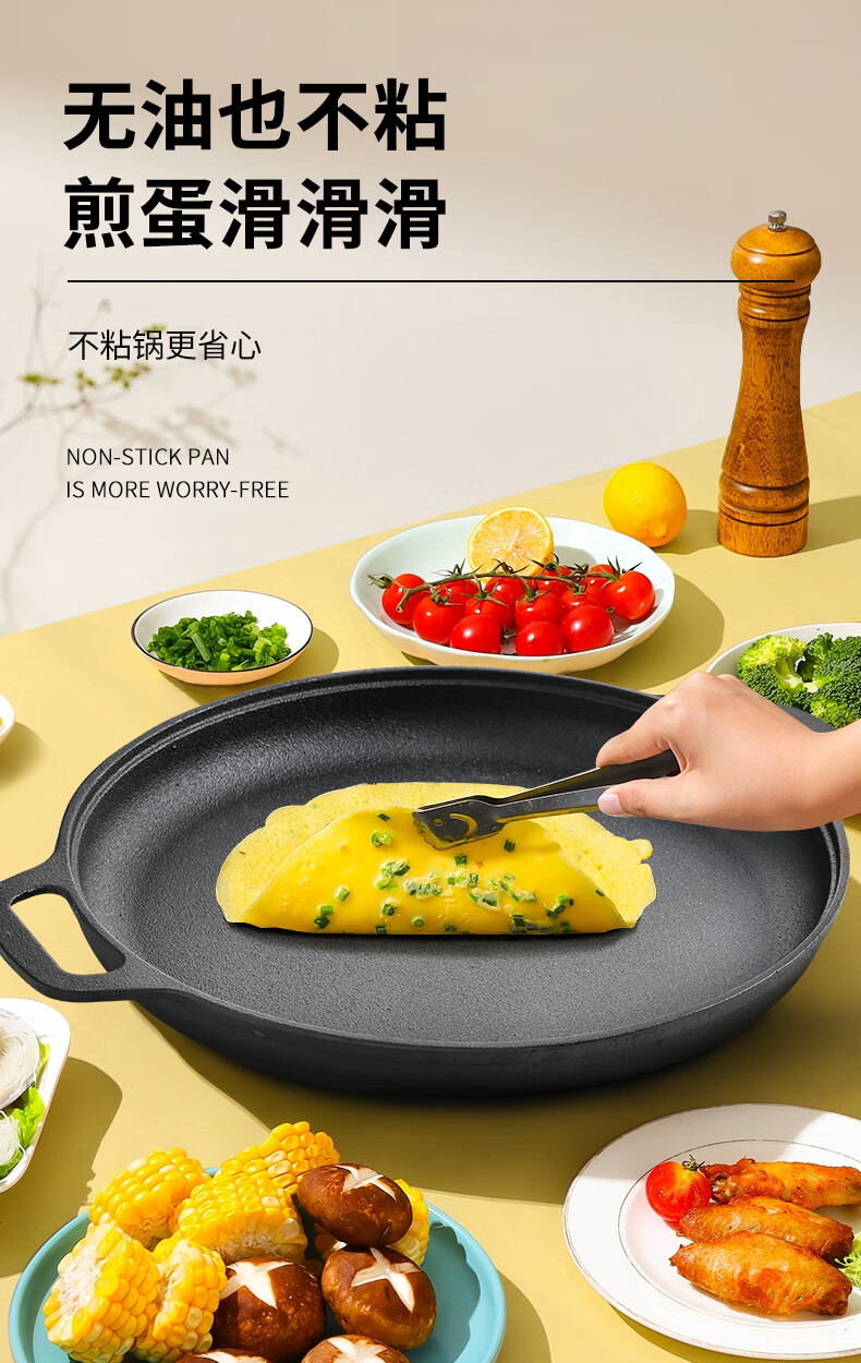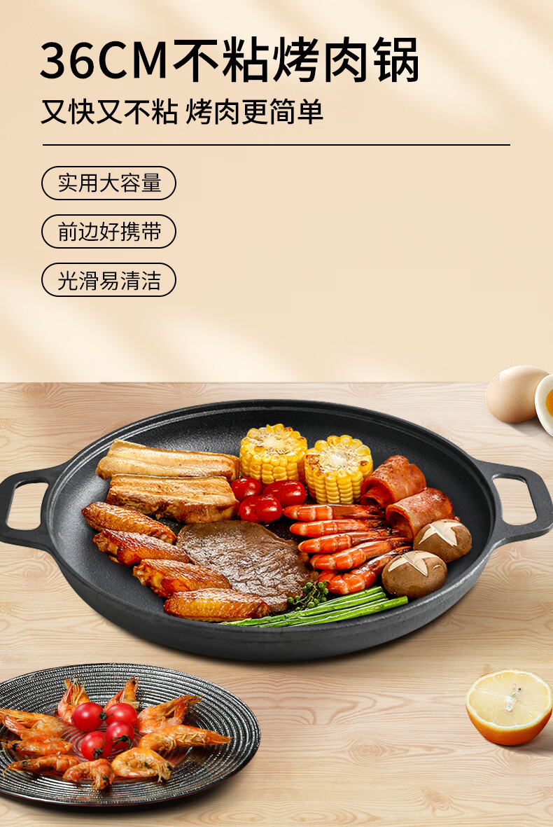 Jingxi baking pan cast iron barbecue household cast iron gas grill pan outdoor cassette stove iron plate barbecue meat pot non-stick 28cm thickened baking pan comes with anti-scalding hemp rope suitable for 2-3 people