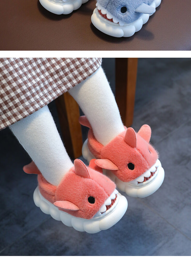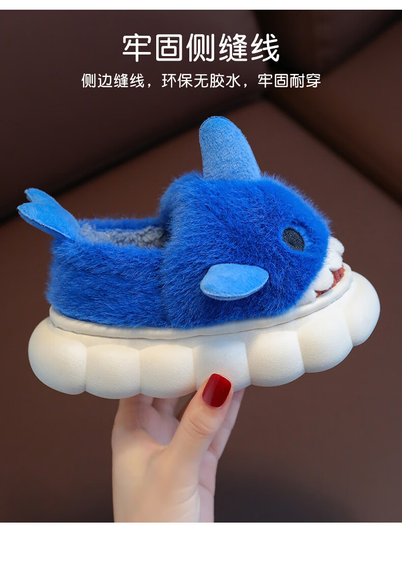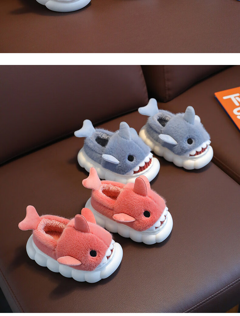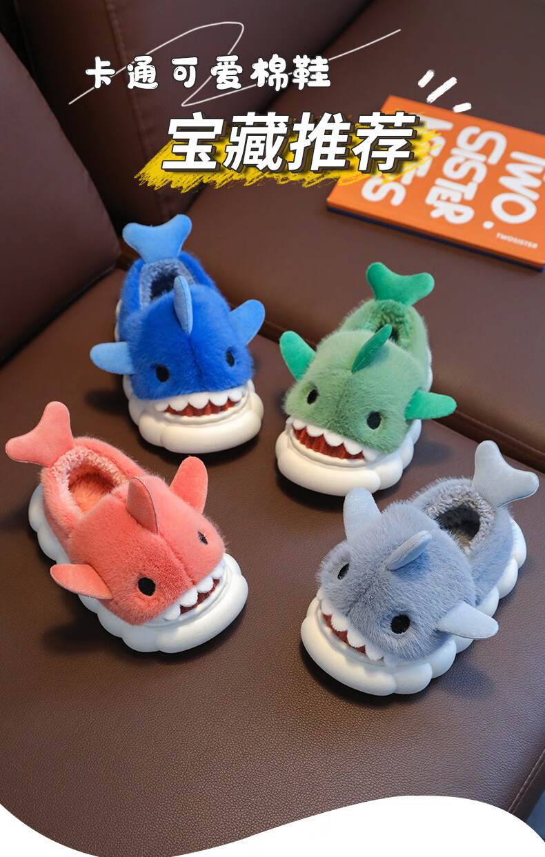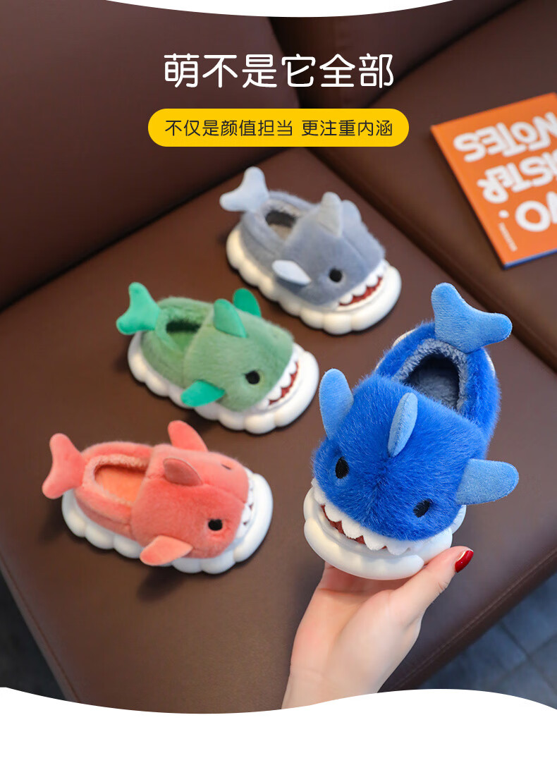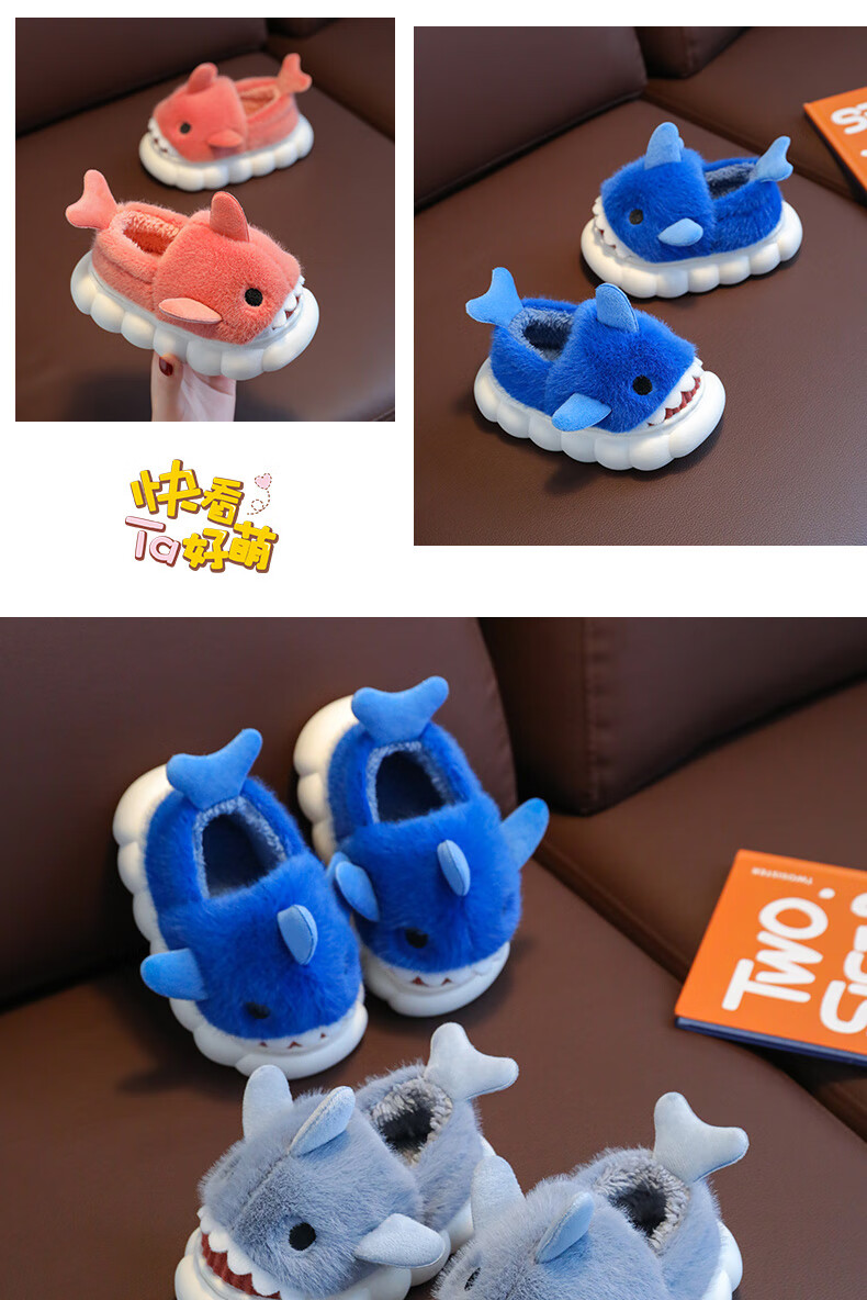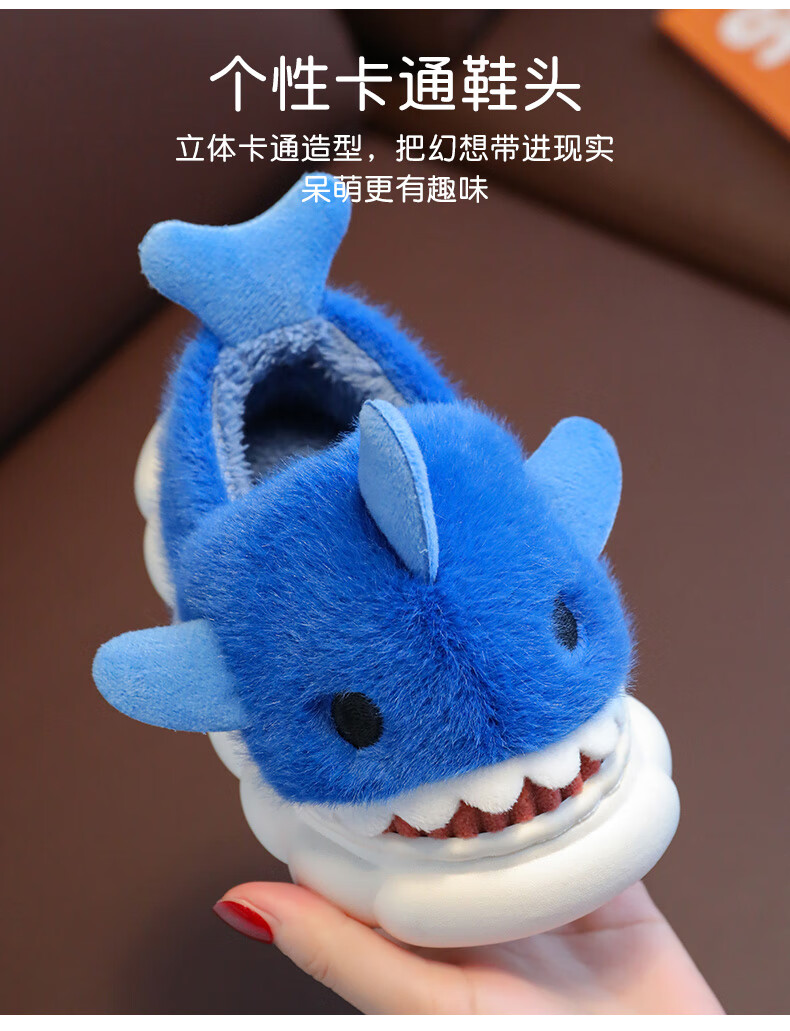 Yi Cong children's cotton shoes winter cartoon shark boys and girls indoor non-slip baby plush parent-child home children's cotton slippers gray cotton shoes shark style 22-23 size inner length 13.5 about 1-2 years old