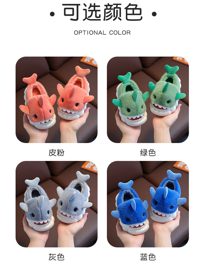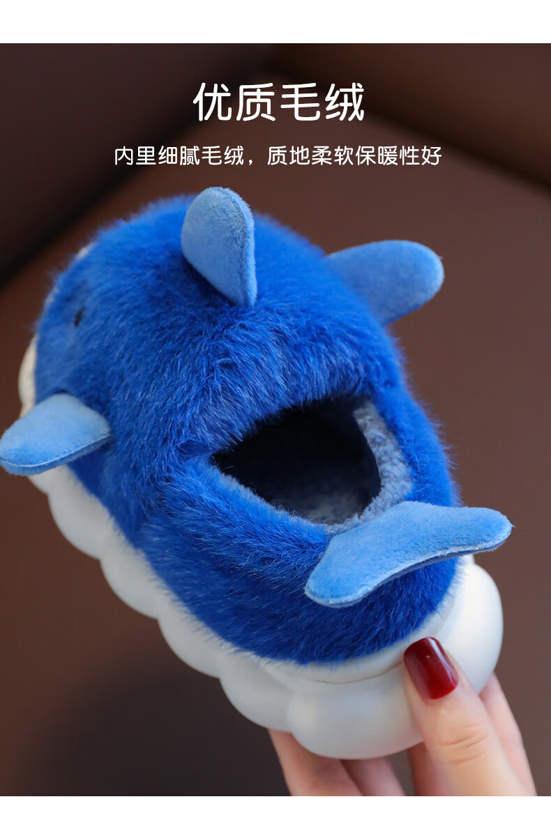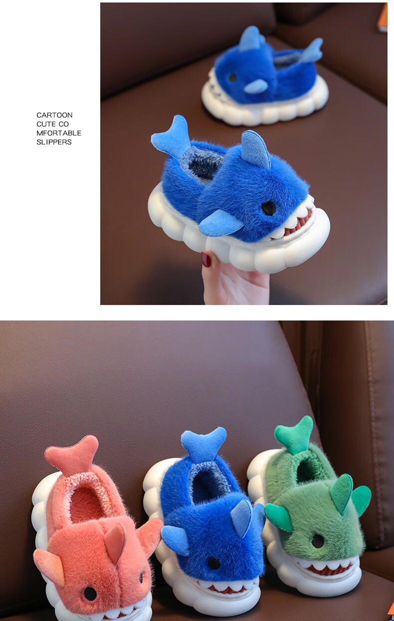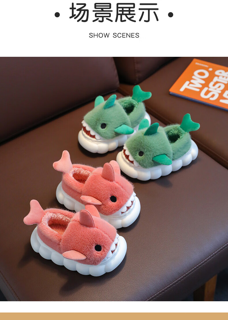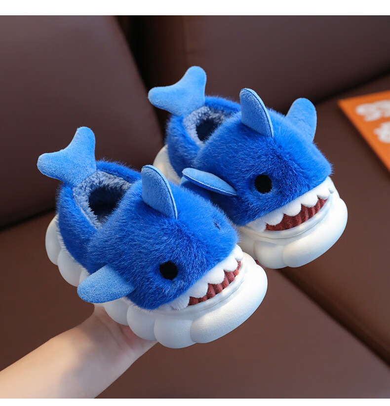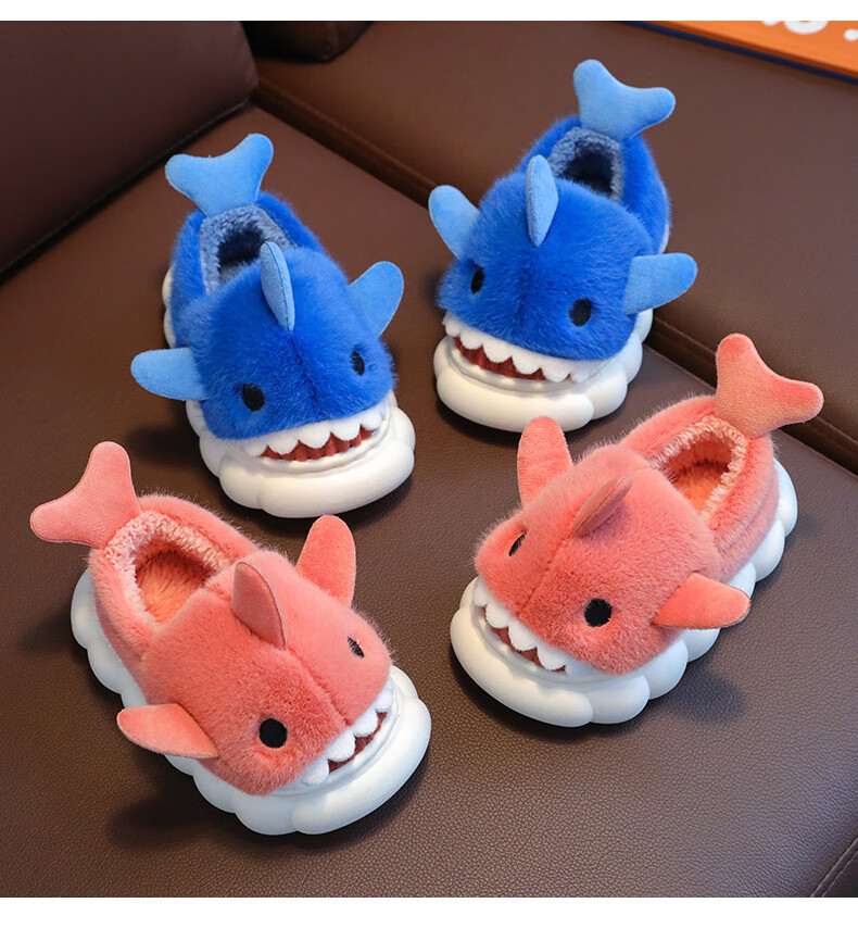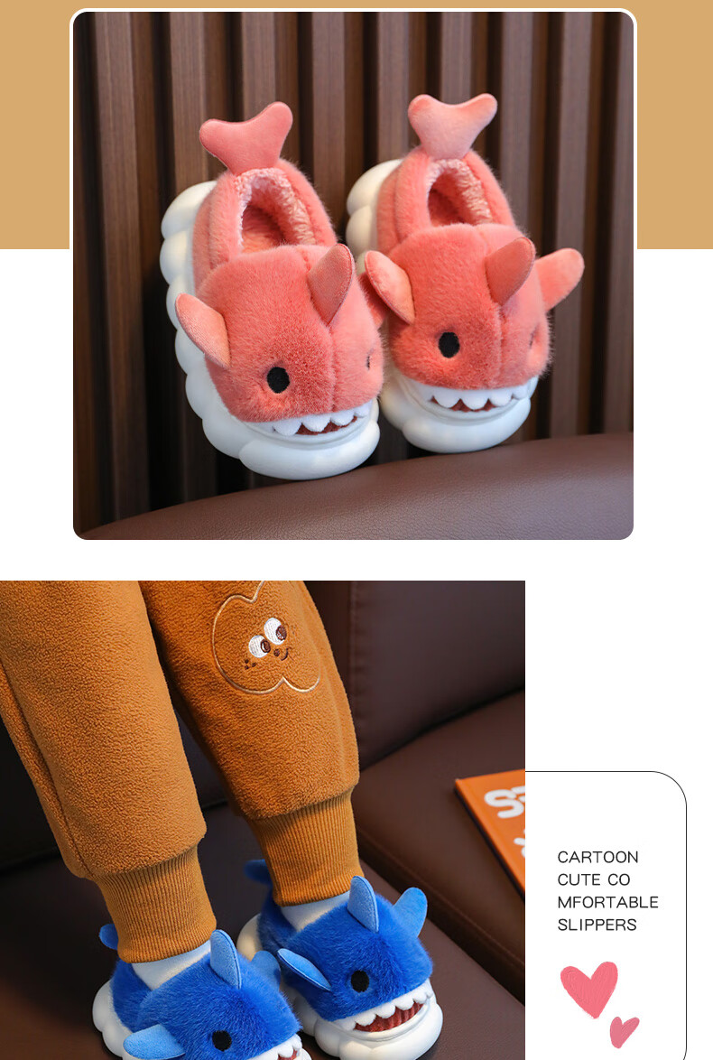 Yi Cong children's cotton shoes winter cartoon shark boys and girls indoor non-slip baby plush parent-child home children's cotton slippers gray cotton shoes shark style 22-23 size inner length 13.5 about 1-2 years old