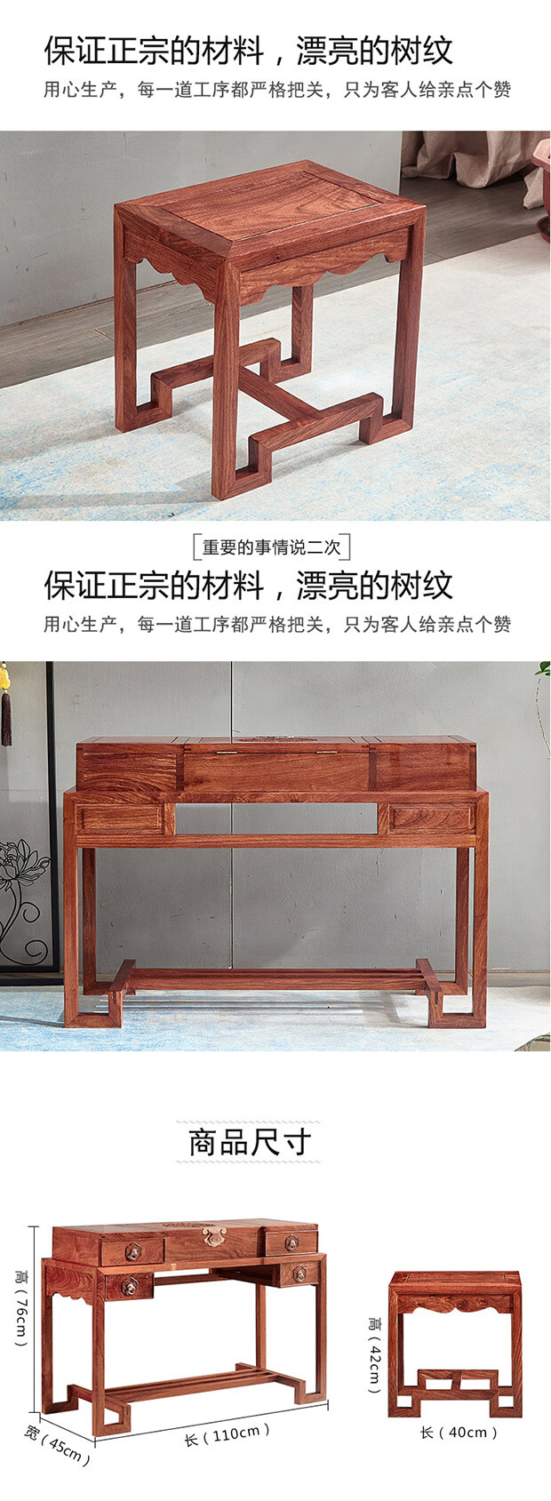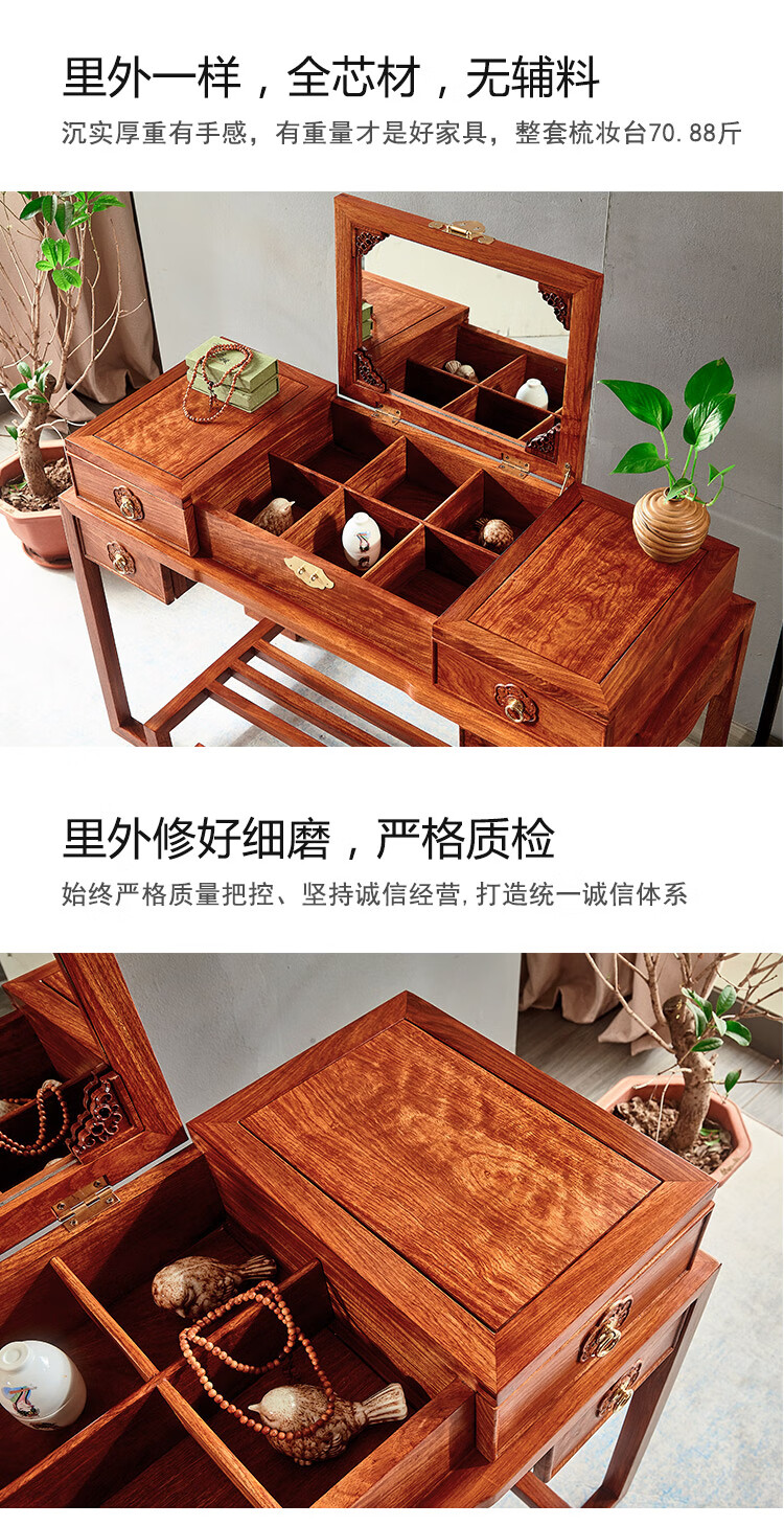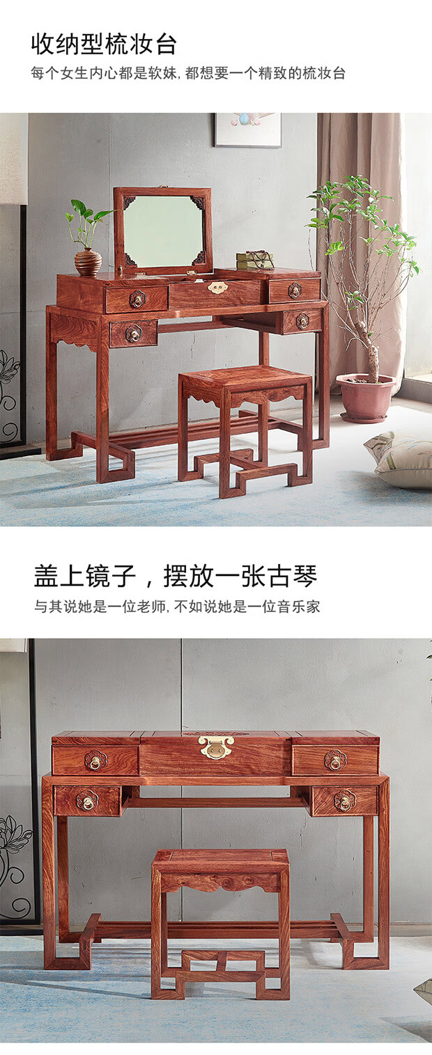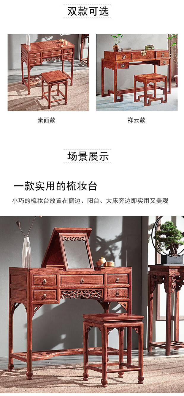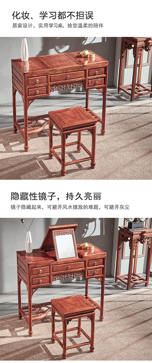 Dresser Bedroom Simple Modern Rosewood Flip Dresser Storage Cabinet Integrated New Chinese Style Dressing Table Xiangyun Dresser + Stool (Rosewood Color) Complete x Wood