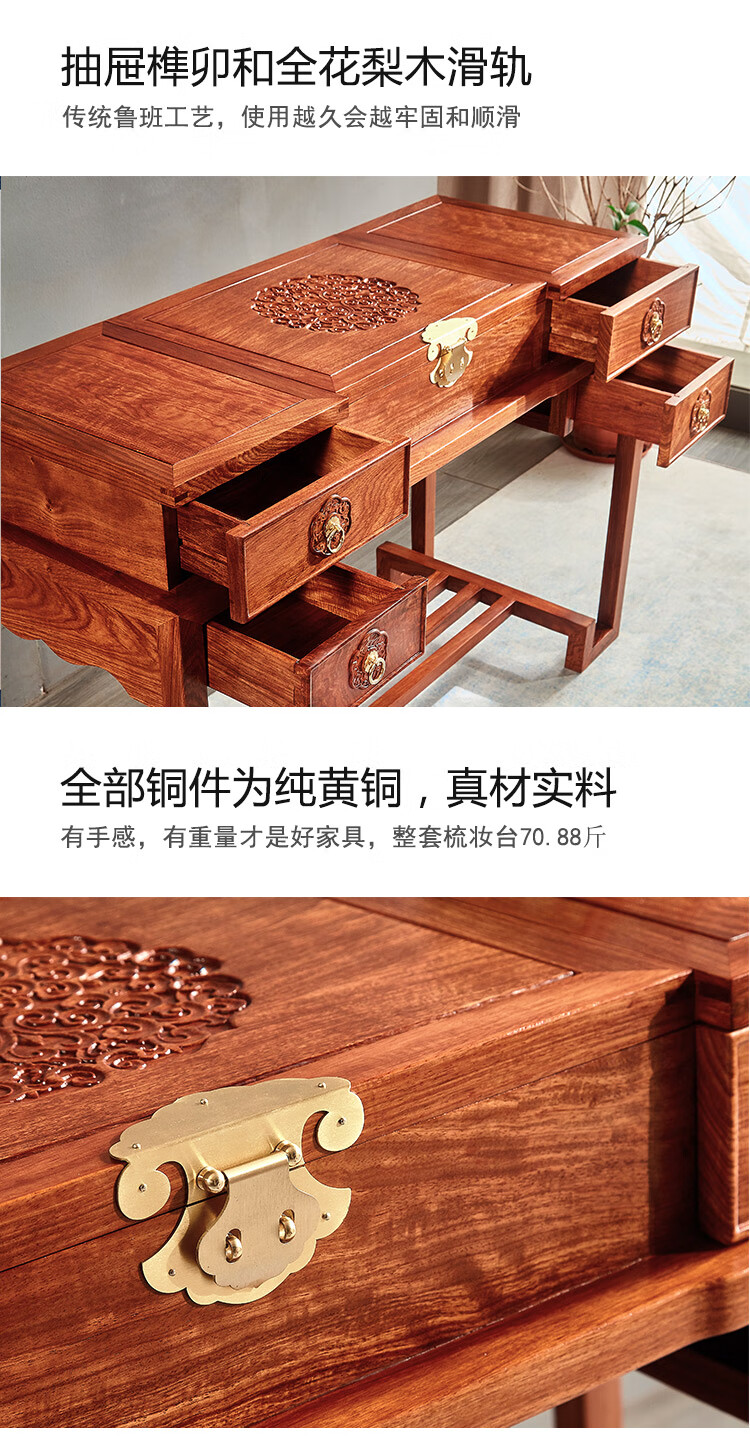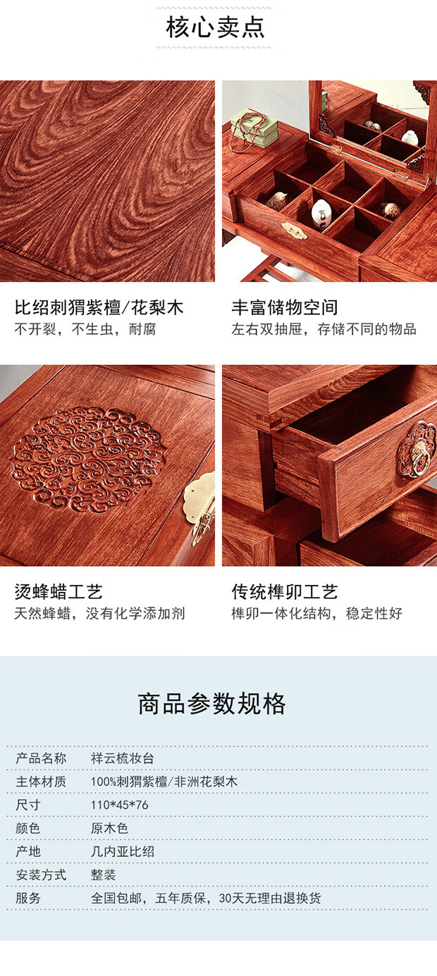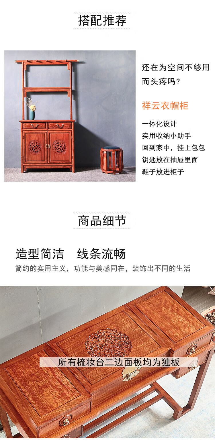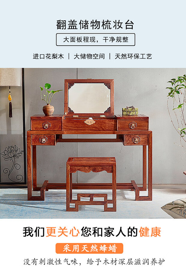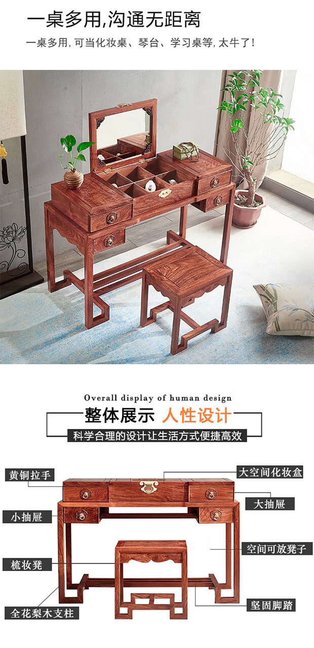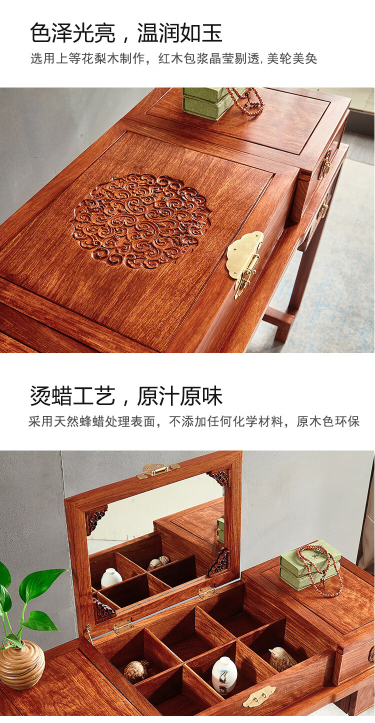 Dresser Bedroom Simple Modern Rosewood Flip Dresser Storage Cabinet Integrated New Chinese Style Dressing Table Xiangyun Dresser + Stool (Rosewood Color) Complete x Wood