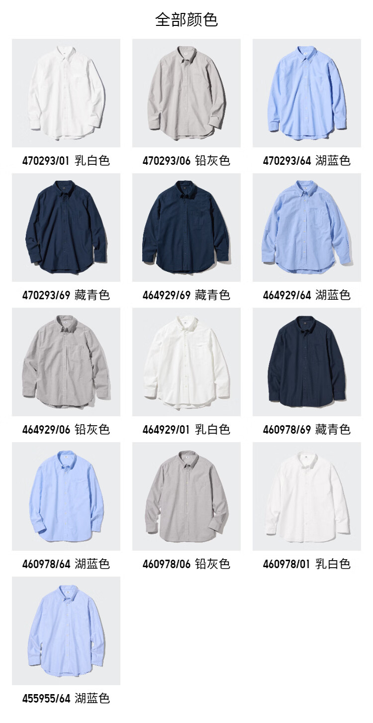 Uniqlo men's and women's Oxford woven shirt long-sleeved shirt casual plain casual commuting 470293 470293/69 navy blue 3XL