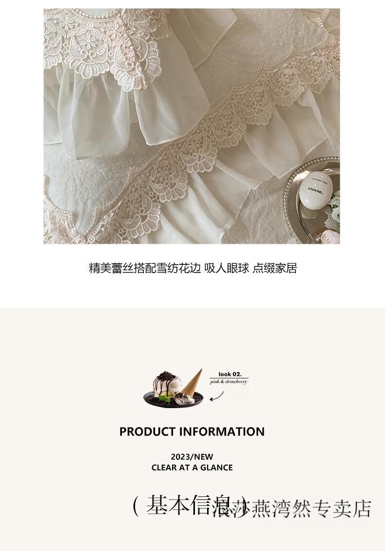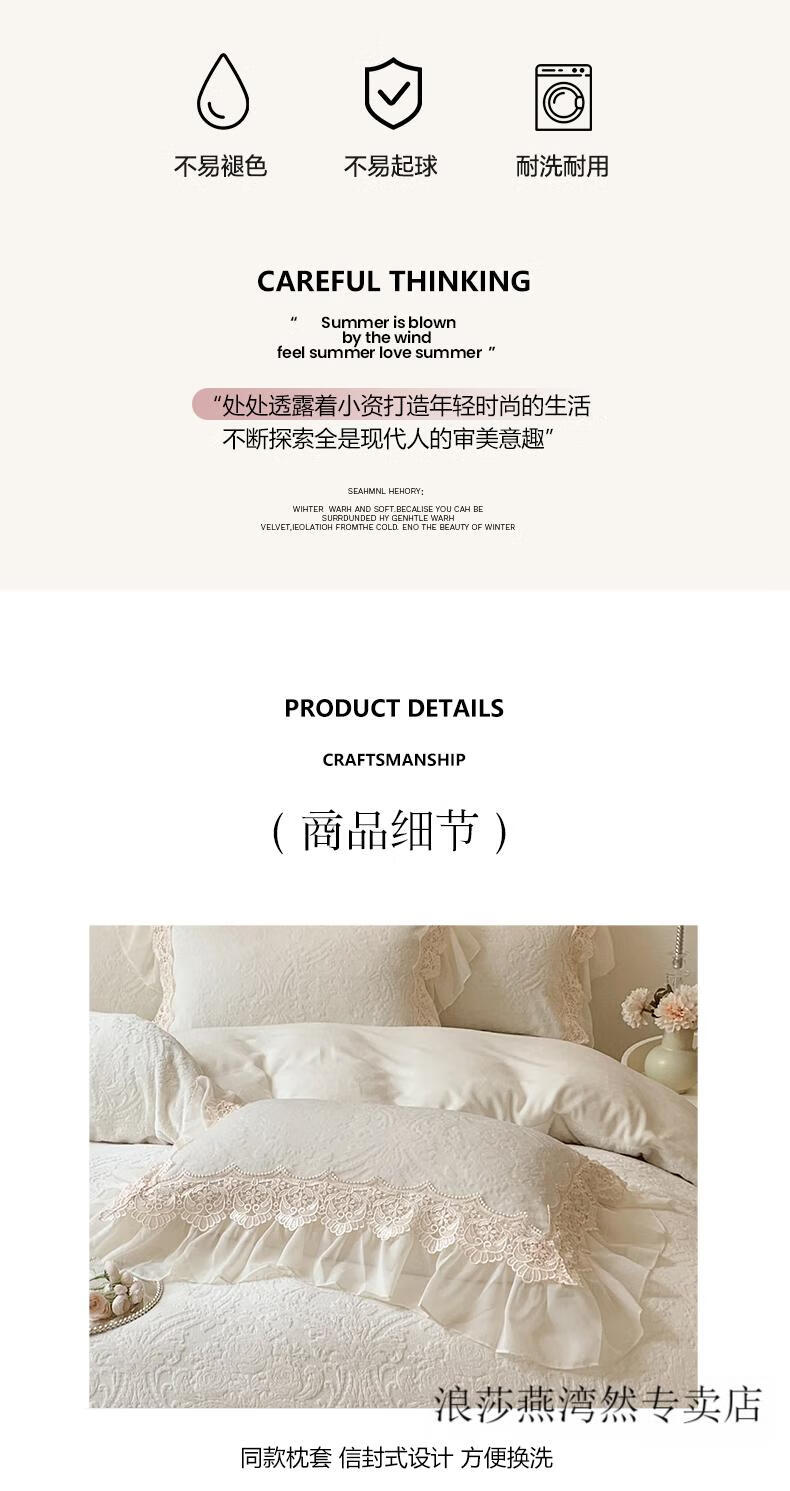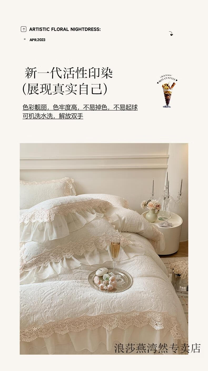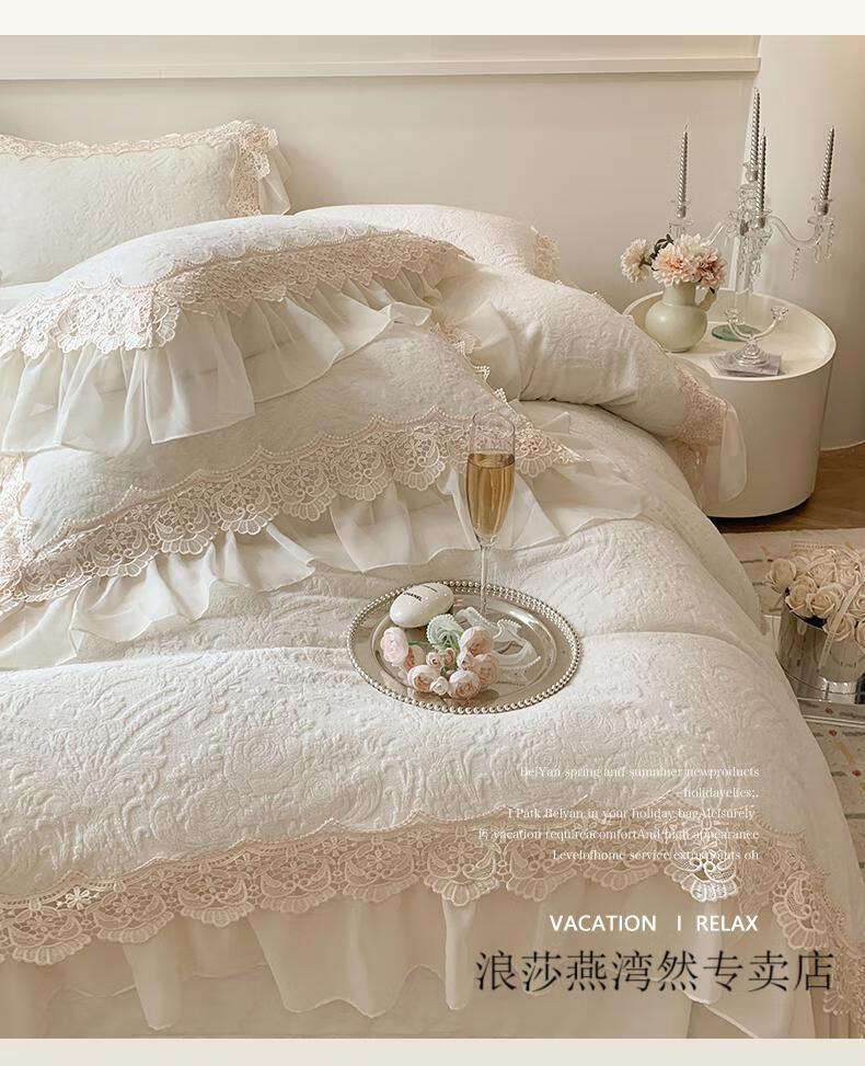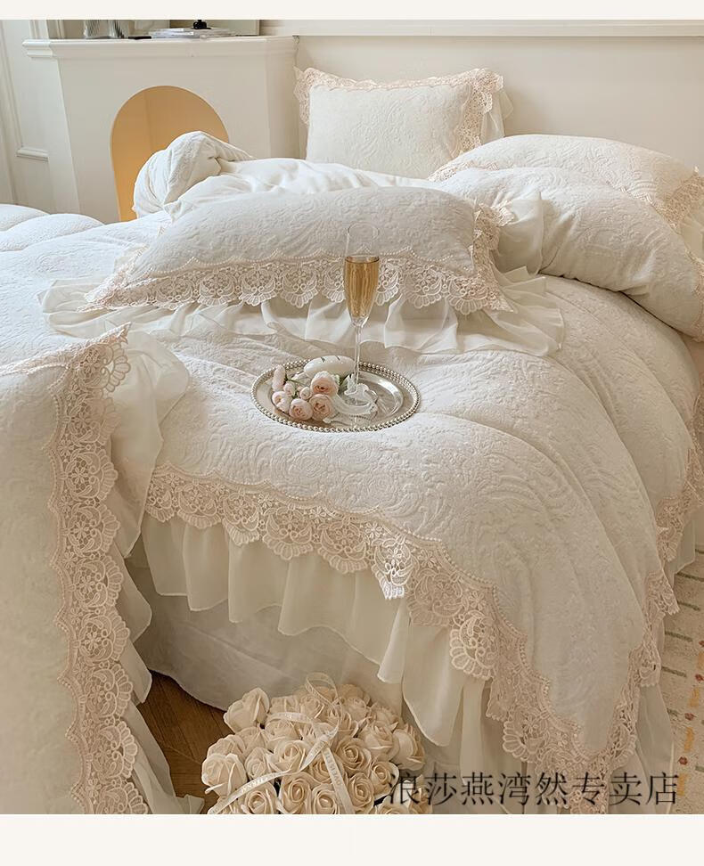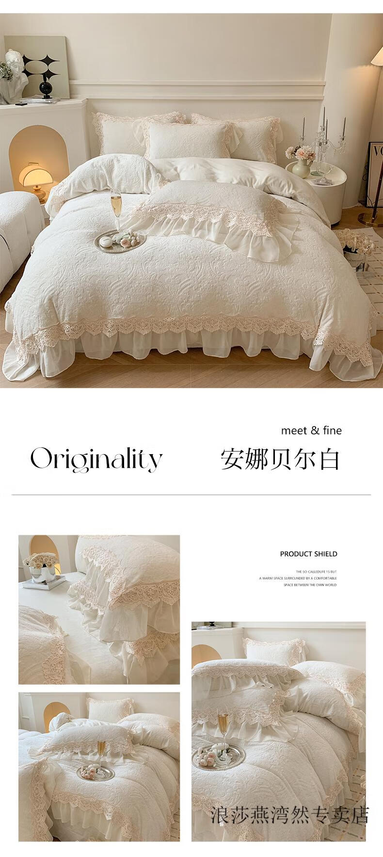 Langsha 2025 autumn and winter new thickened carved velvet baby velvet Annabell series French double-layer lace four-piece set Annabell pink bed sheet style 1.5m four-piece set