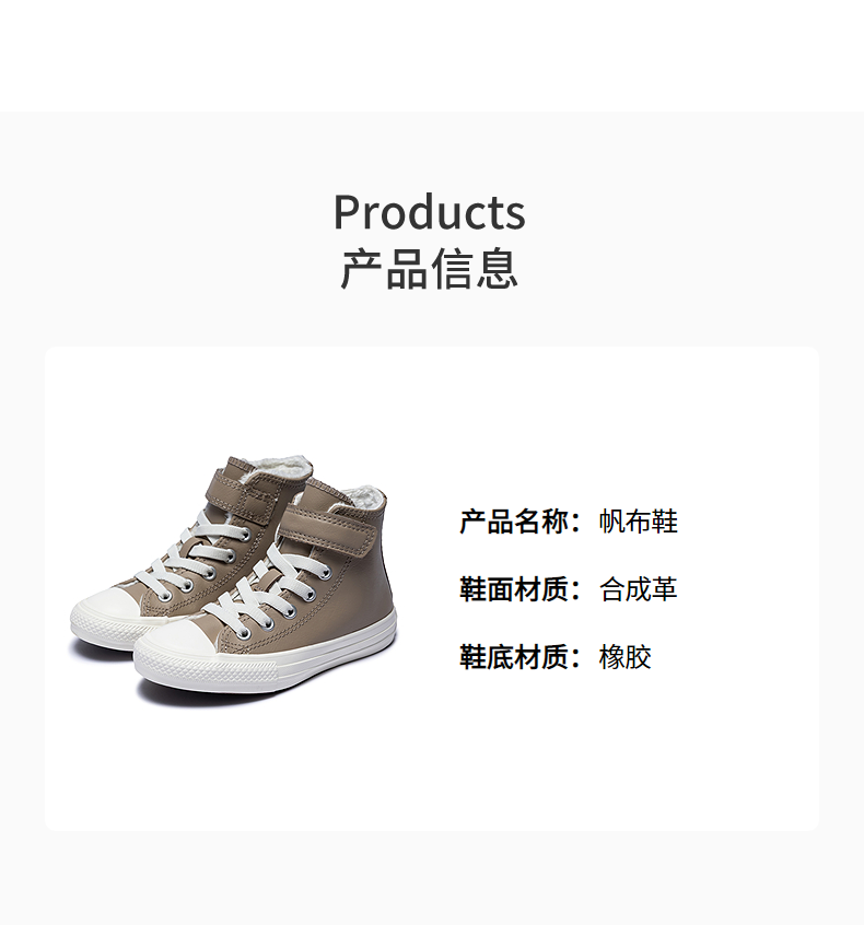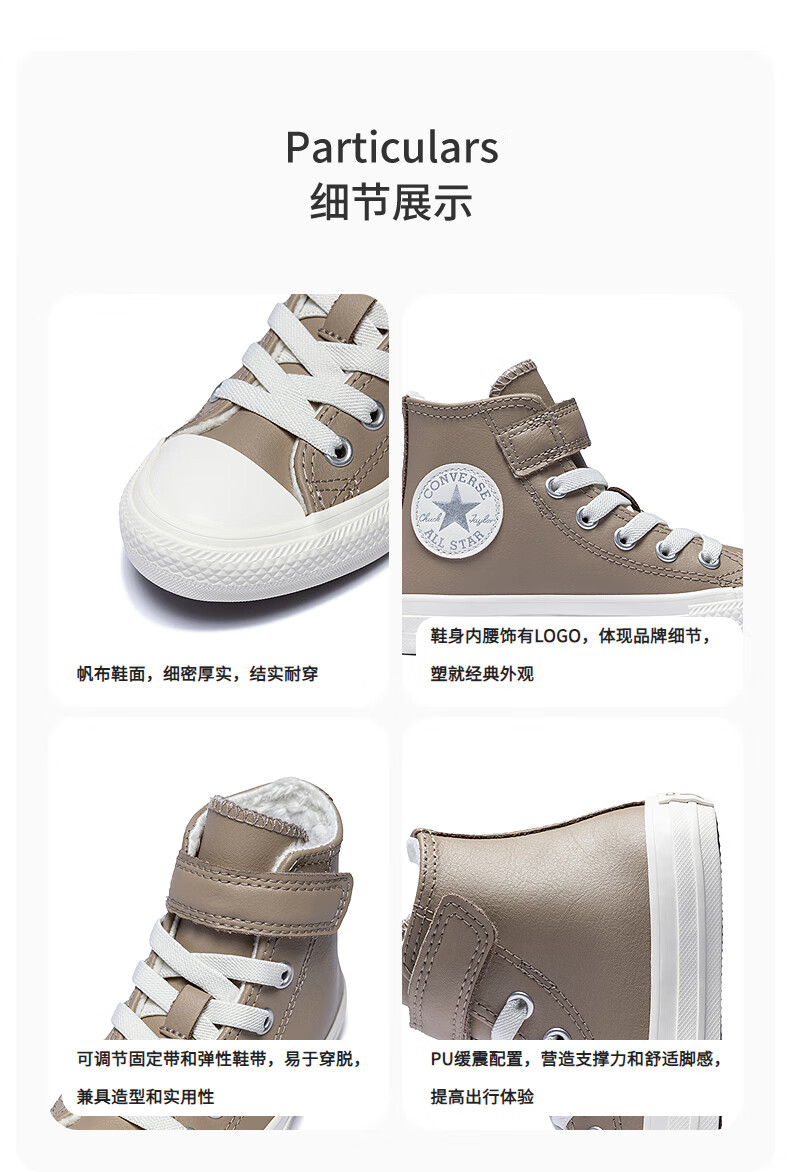 Converse children's canvas shoes A14339C coffee color 34 recommended foot length 21cm